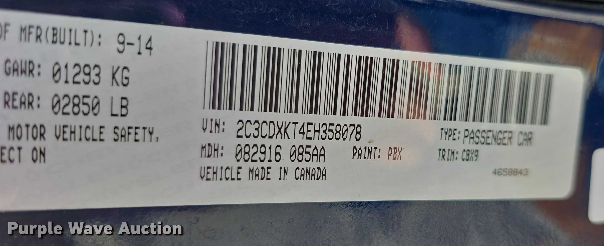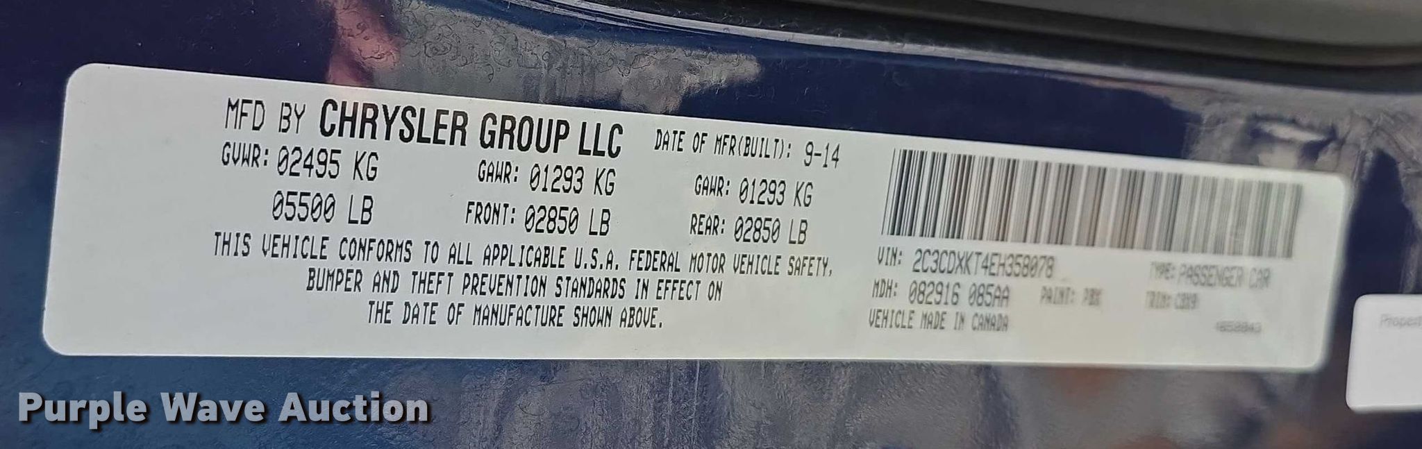 - VIN: 2C3CDXKT4EH358078
