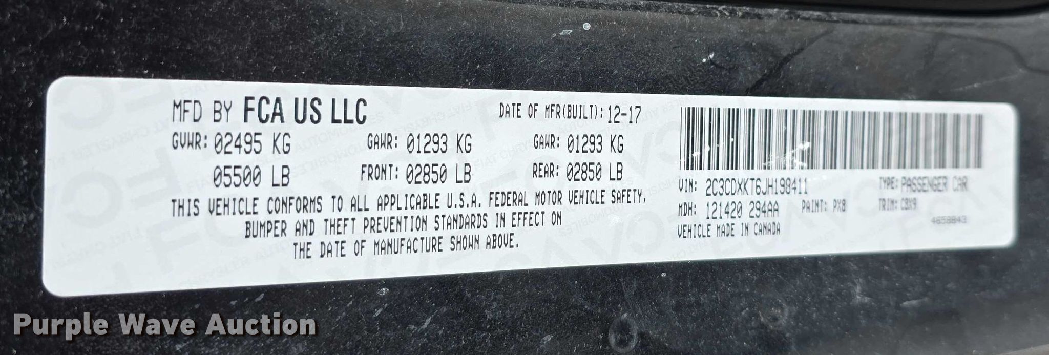 - VIN: 2C3CDXKT6JH198411