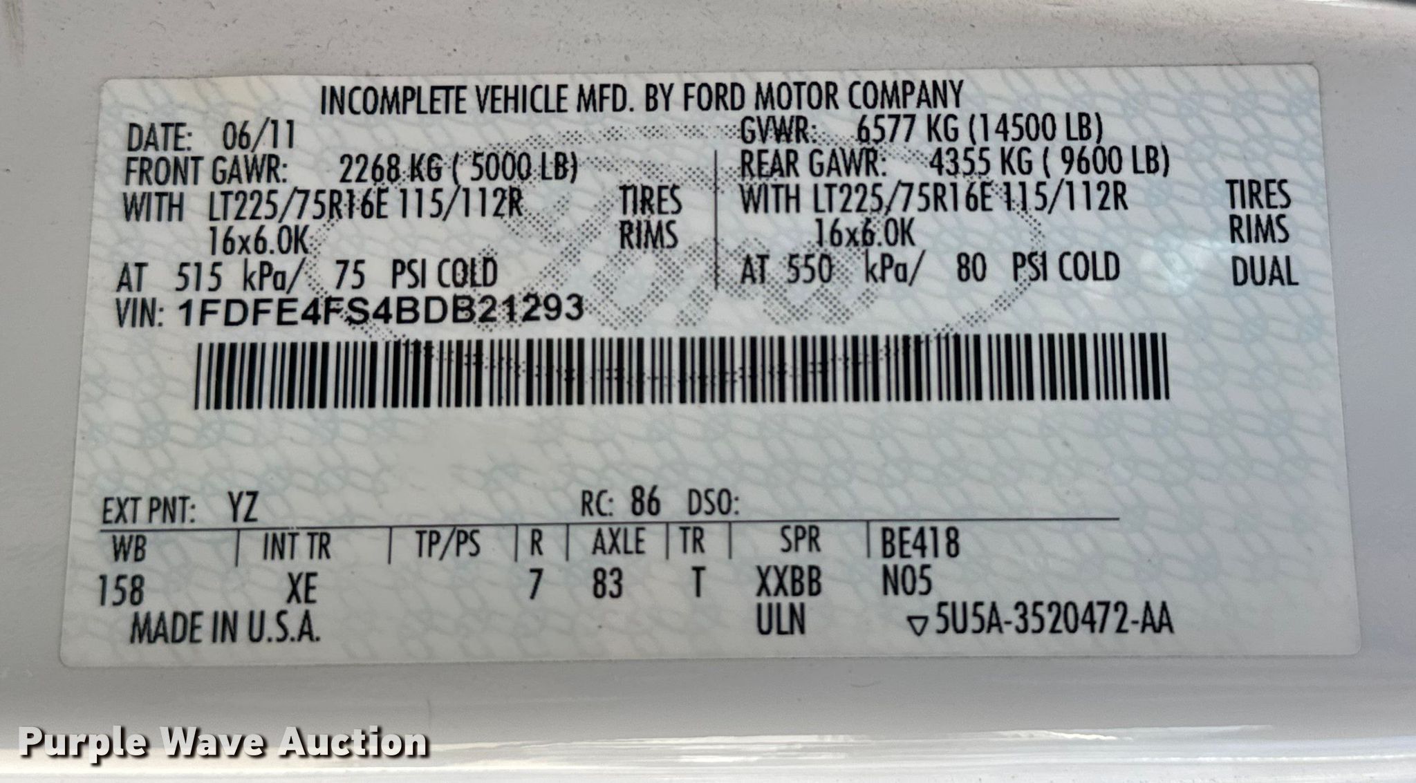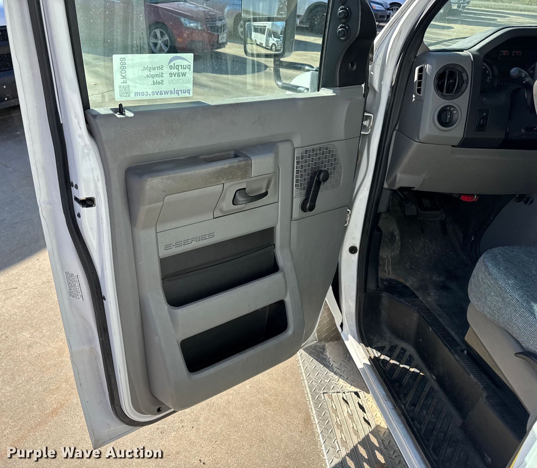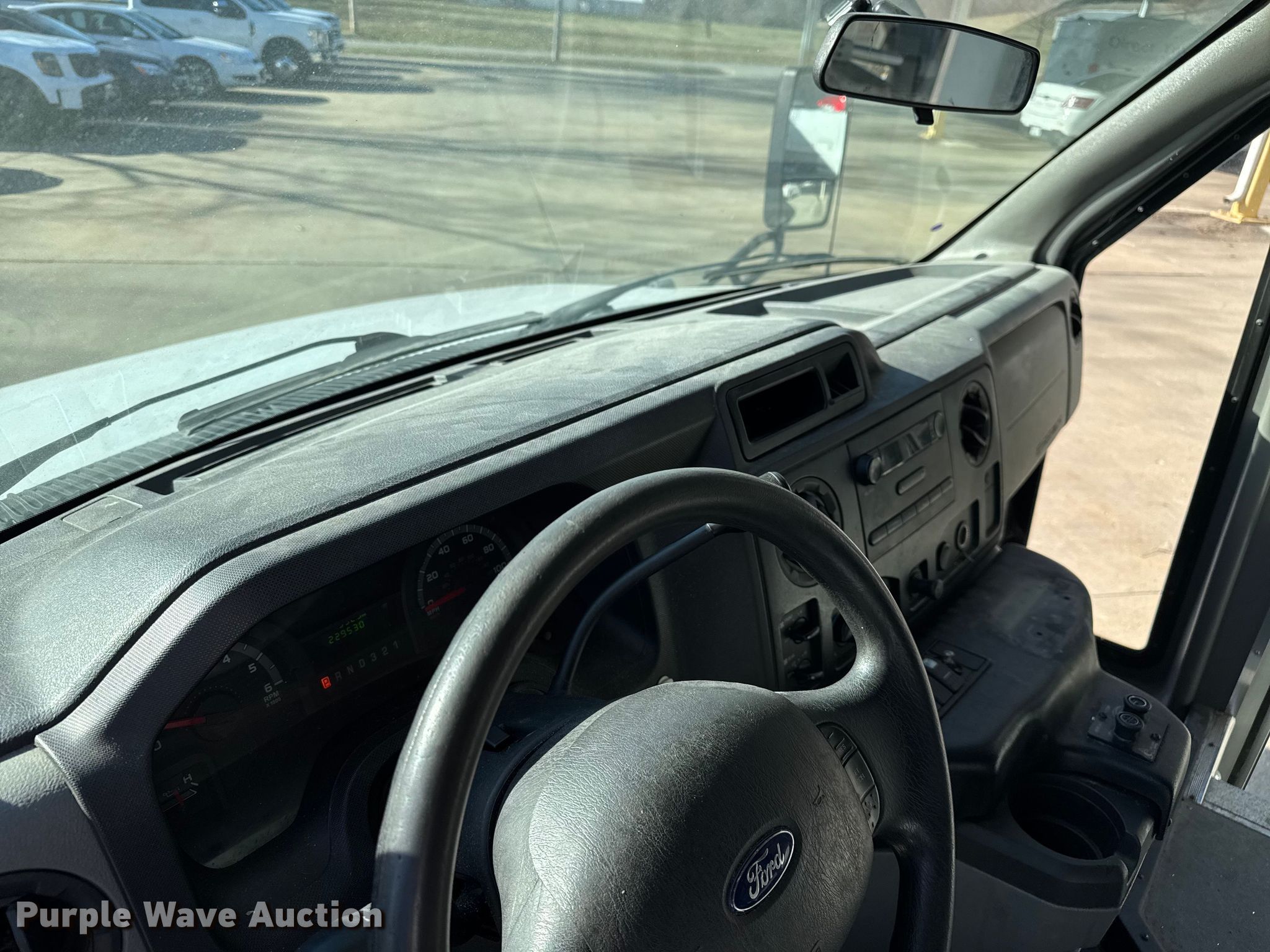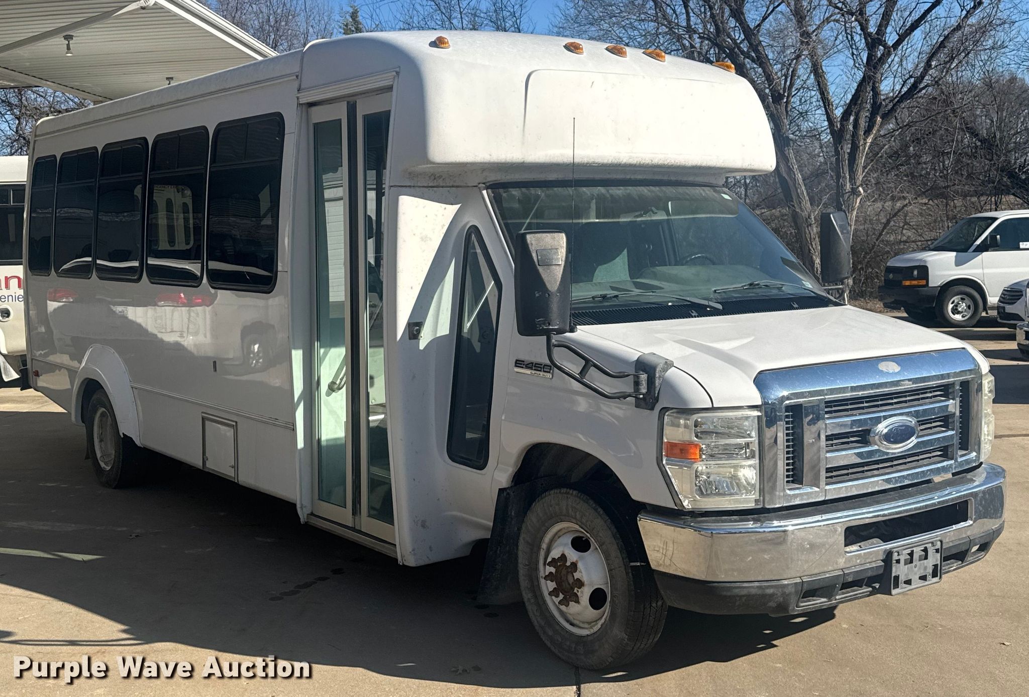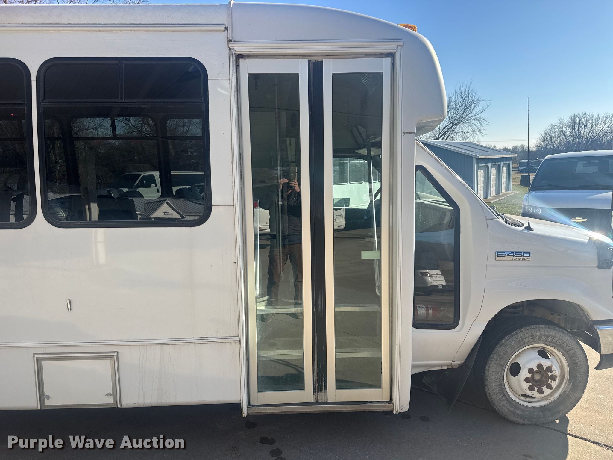 2011 Ford E450 Super Duty shuttle bus. Miles: 229,530 on odometer, VIN: 1FDFE4FS4BDB21293. Engine Model: Ford, Displacement: 6.8L, Cylinders: 10, Fuel type: Gas. Transmission Automatic. Chassis Axles: Single, Suspension: Spring, Brakes: Hydraulic, GVWR: 14,500 lbs, Wheelbase: 158". Interior AC, Heat, Cruise control, Passengers: 24. Tires Size: 225/75R16. Notes Windshield chipped or cracked. Missouri title. Title distribution may be delayed up to 14 days from verification of funds. Ray County Transportation, Inc.. Richmond, MO 64085
