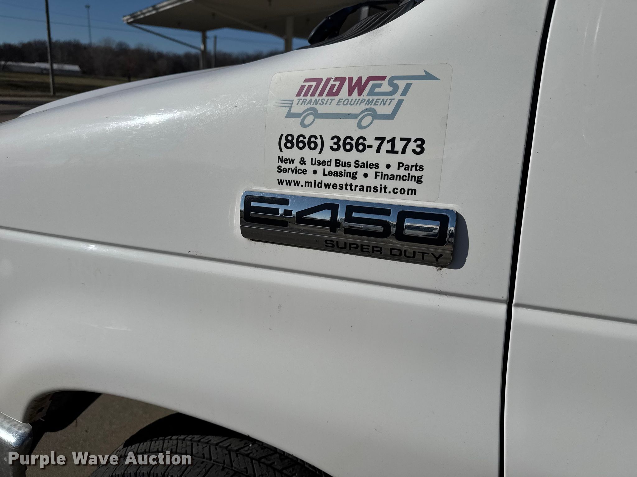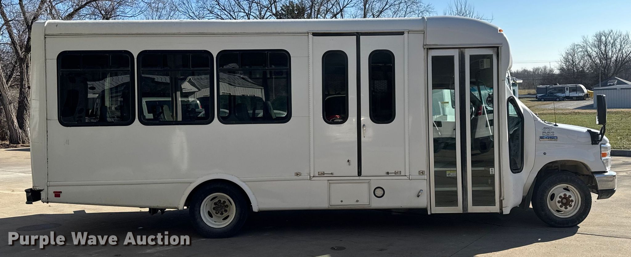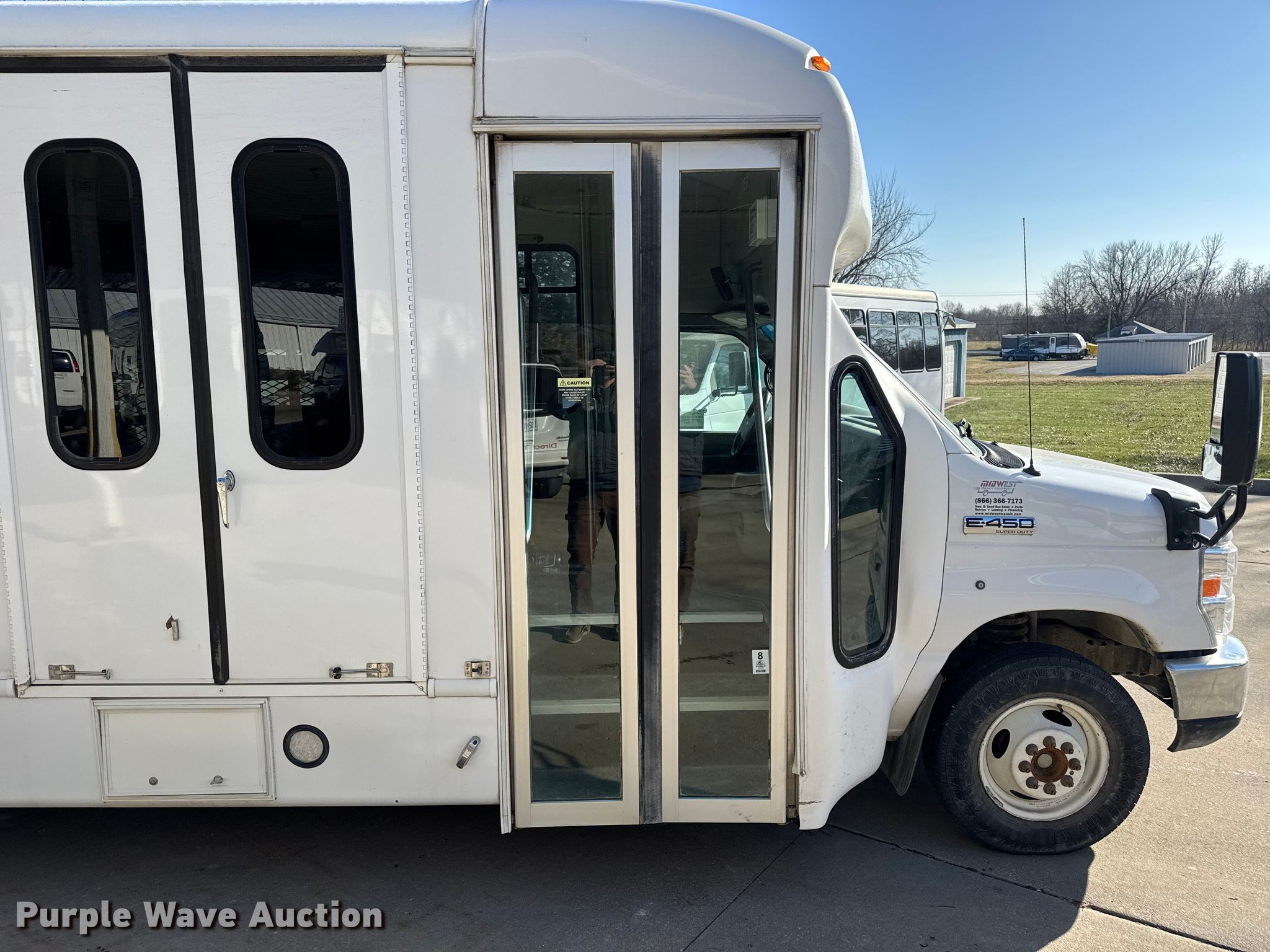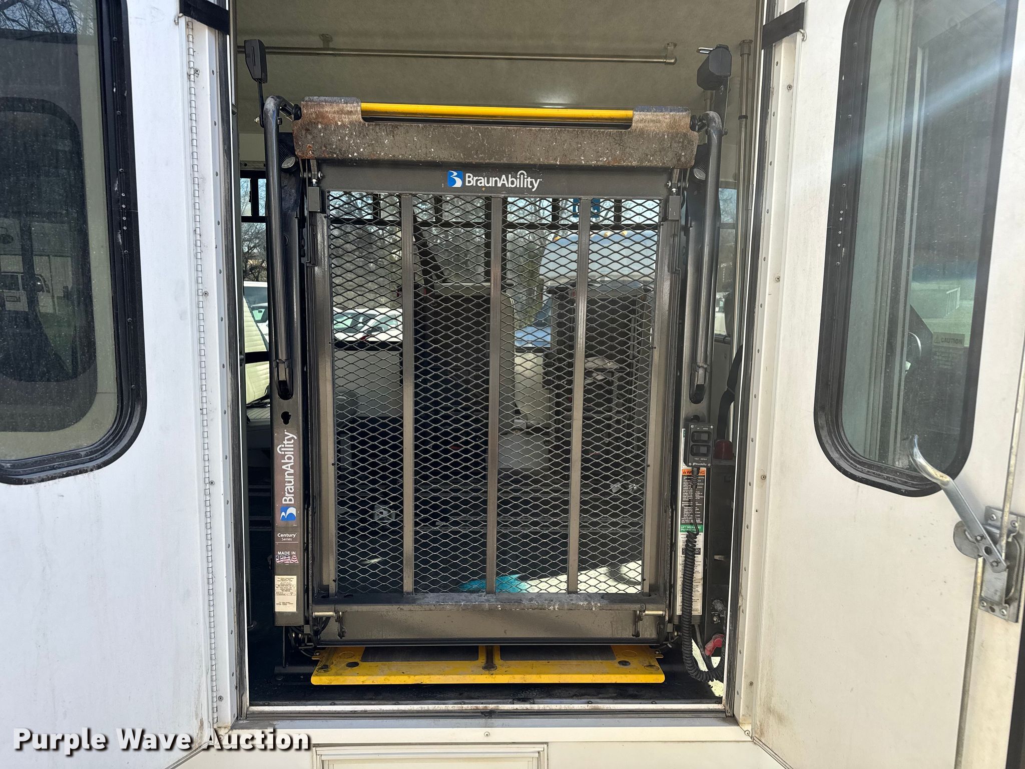 2018 Ford E450 Super Duty shuttle bus. Miles: 146,969 on odometer, VIN: 1FDFE4FS3JDC16572. Engine Displacement: 6.8L, Cylinders: 10, Fuel type: Gas. Transmission Automatic. Chassis Axles: Single, Suspension: Spring, Brakes: Hydraulic, GVWR: 14,500 lbs, Wheelbase: 159". Interior AC, Heat, Cruise control, Wheelchair lift. Tires Size: 225/75R16. Notes Windshield chipped or cracked. Missouri title. Title distribution may be delayed up to 14 days from verification of funds. Ray County Transportation, Inc.. Richmond, MO 64085
