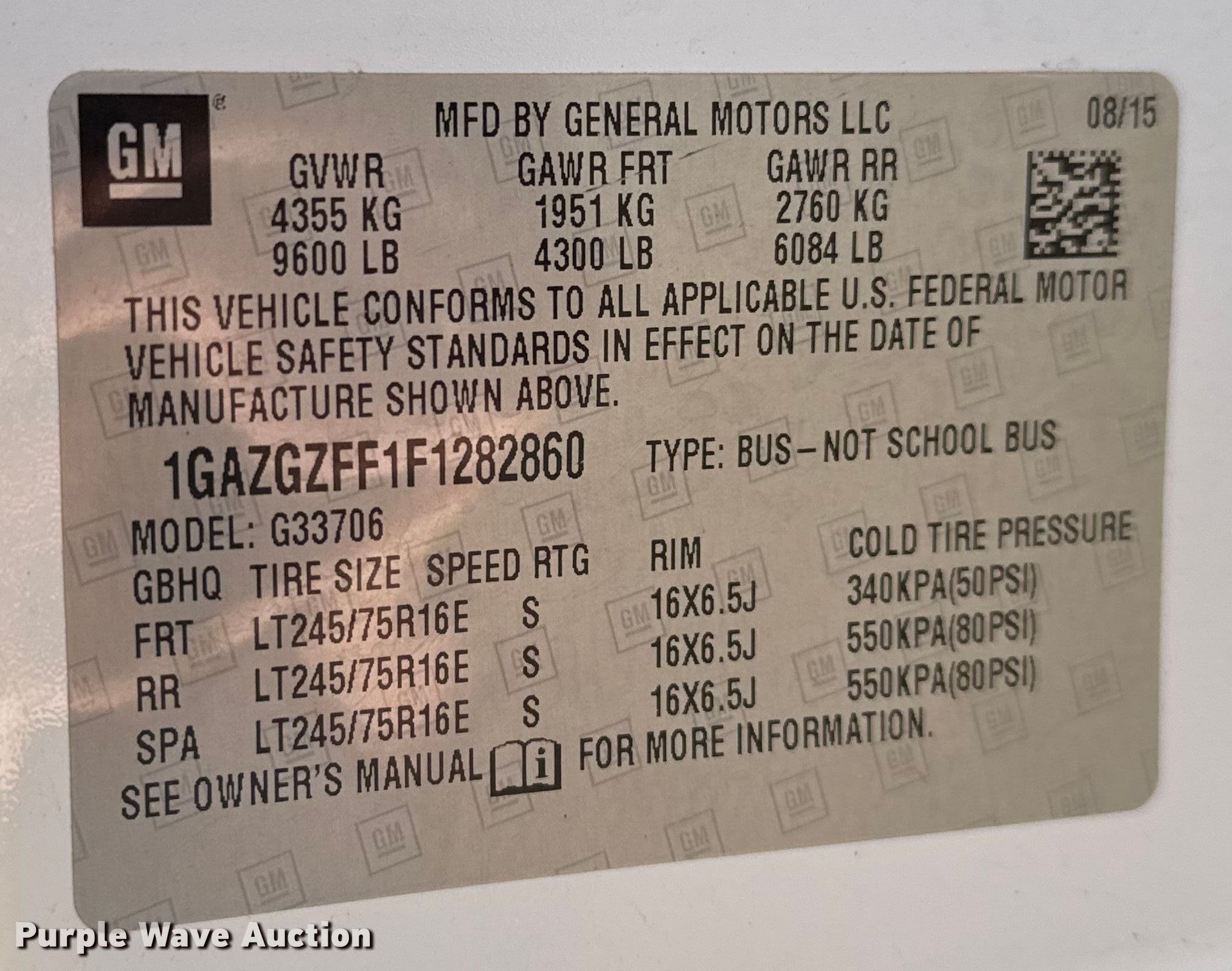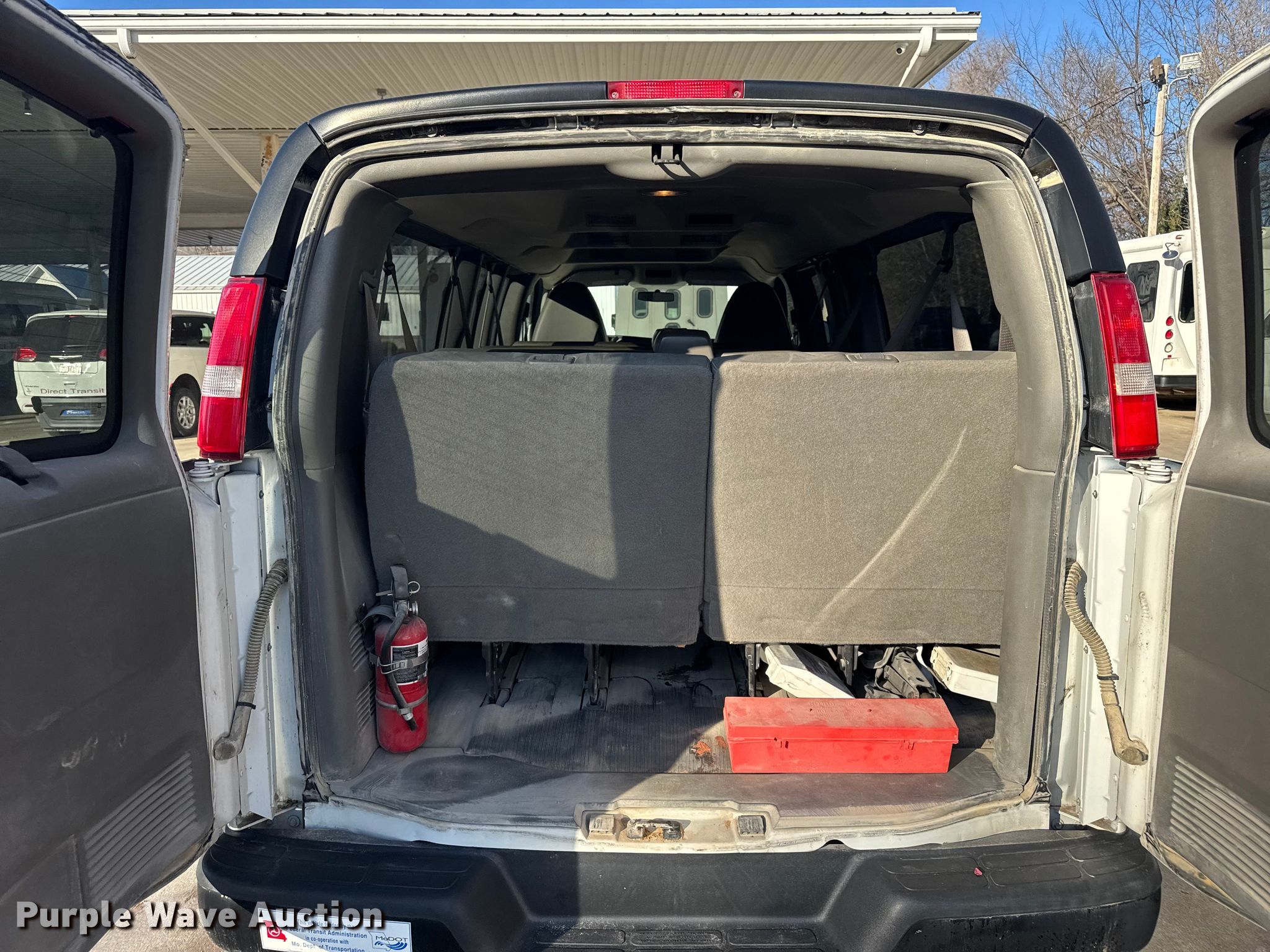 2015 Chevrolet Express 3500 van. Miles: 119,574 on odometer, VIN: 1GAZGZFF1F1282860. Engine Displacement: 4.8L, Cylinders: 8, Fuel type: Gas. Transmission Automatic. Interior AC, Heat, Power windows, Power locks, Cruise control. Tires Size: 245/75R16. Notes Dash warning indicator: TPMS. Missouri title. Title distribution may be delayed up to 14 days from verification of funds. Ray County Transportation, Inc.. Richmond, MO 64085