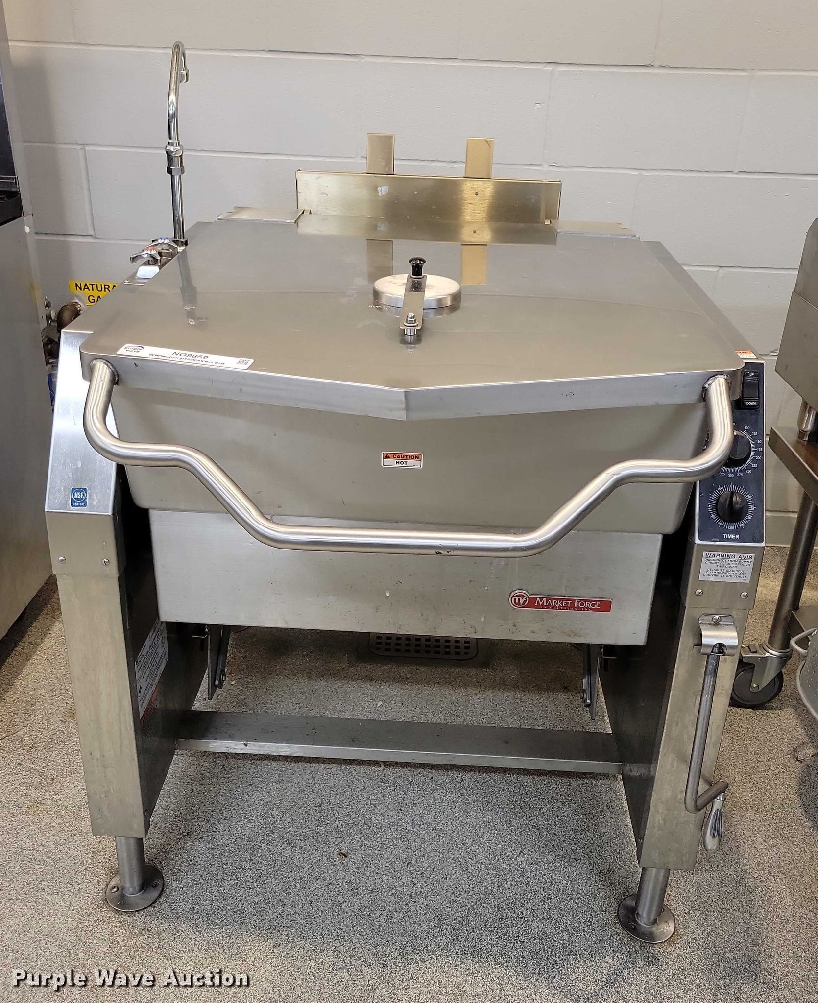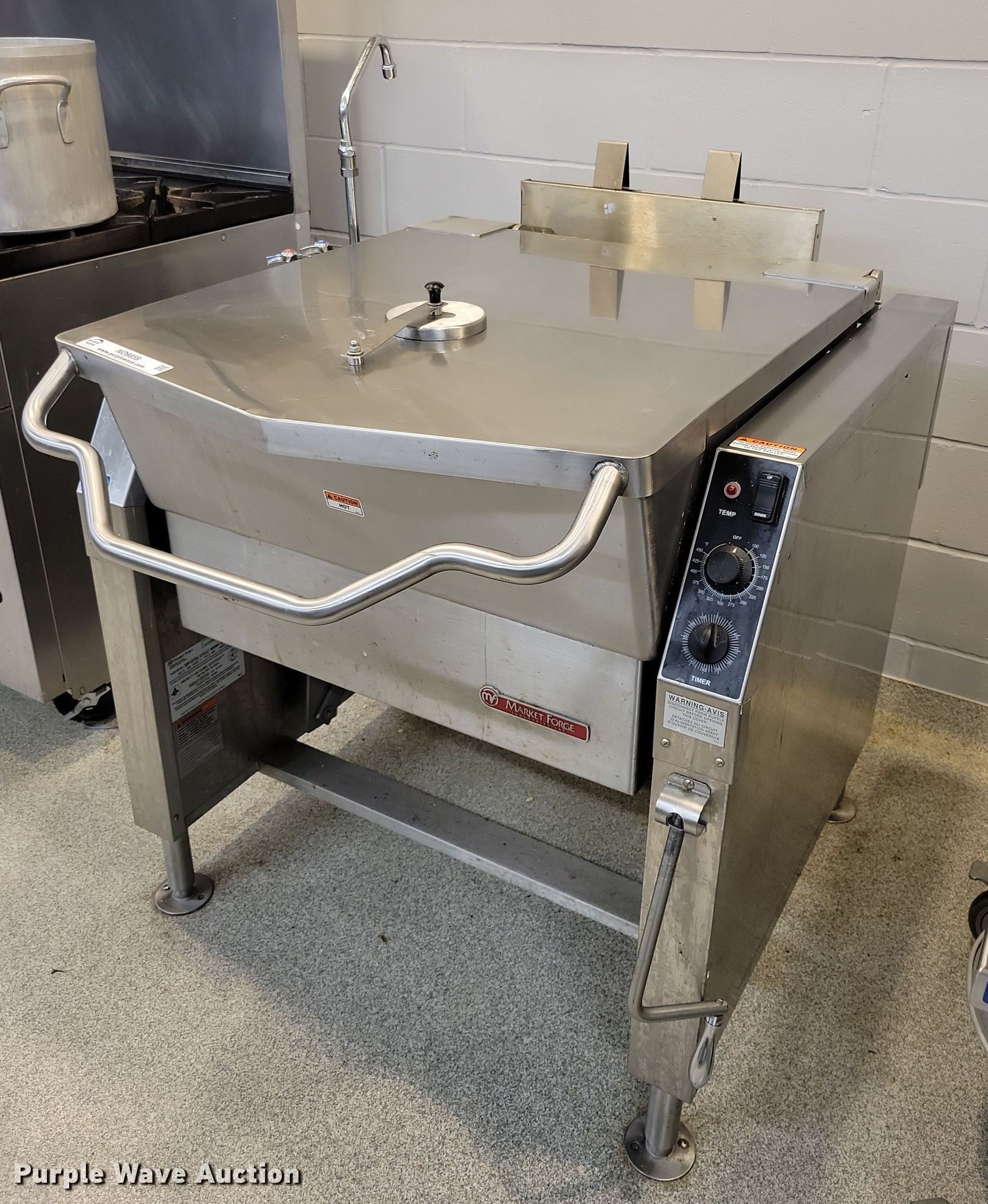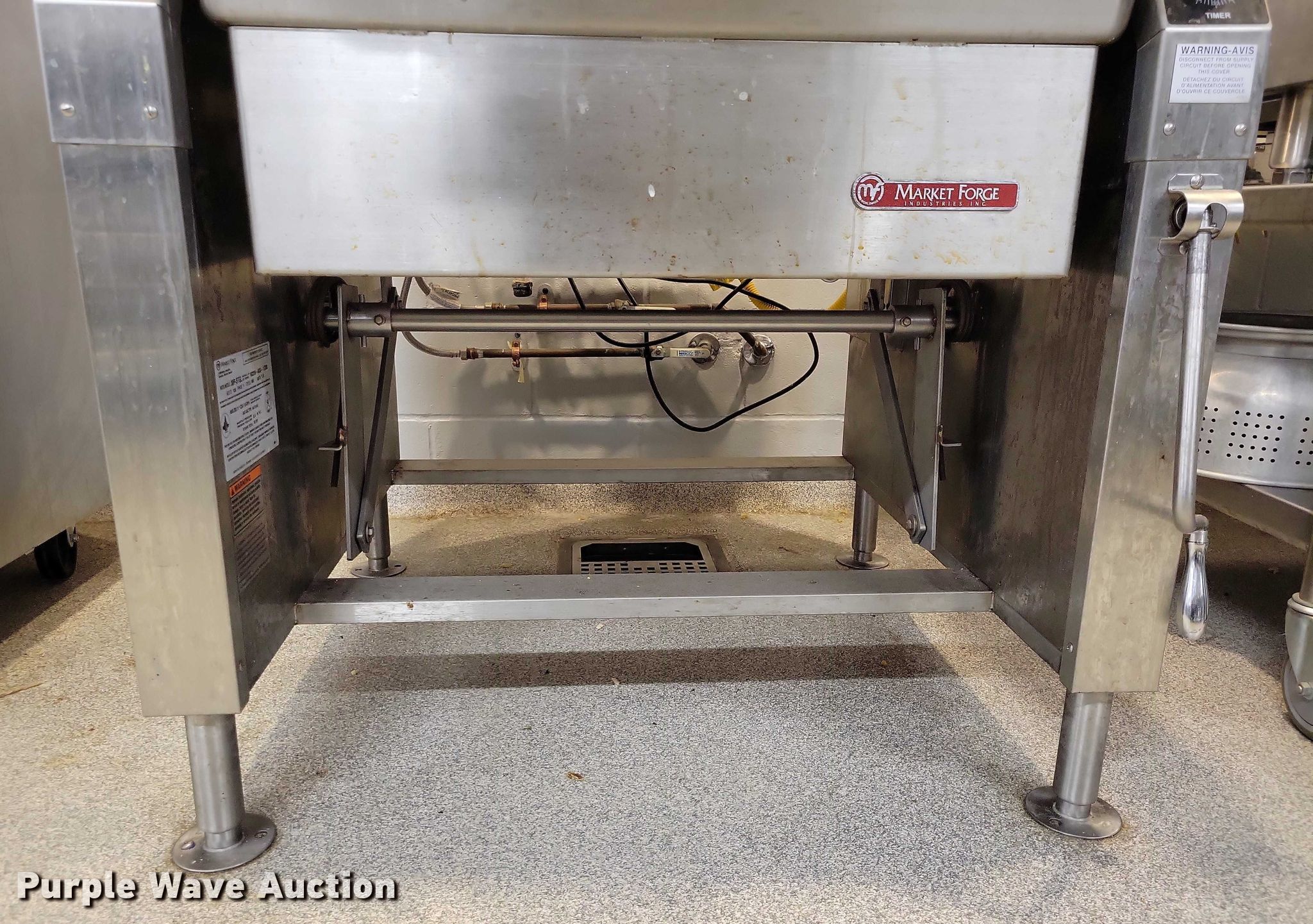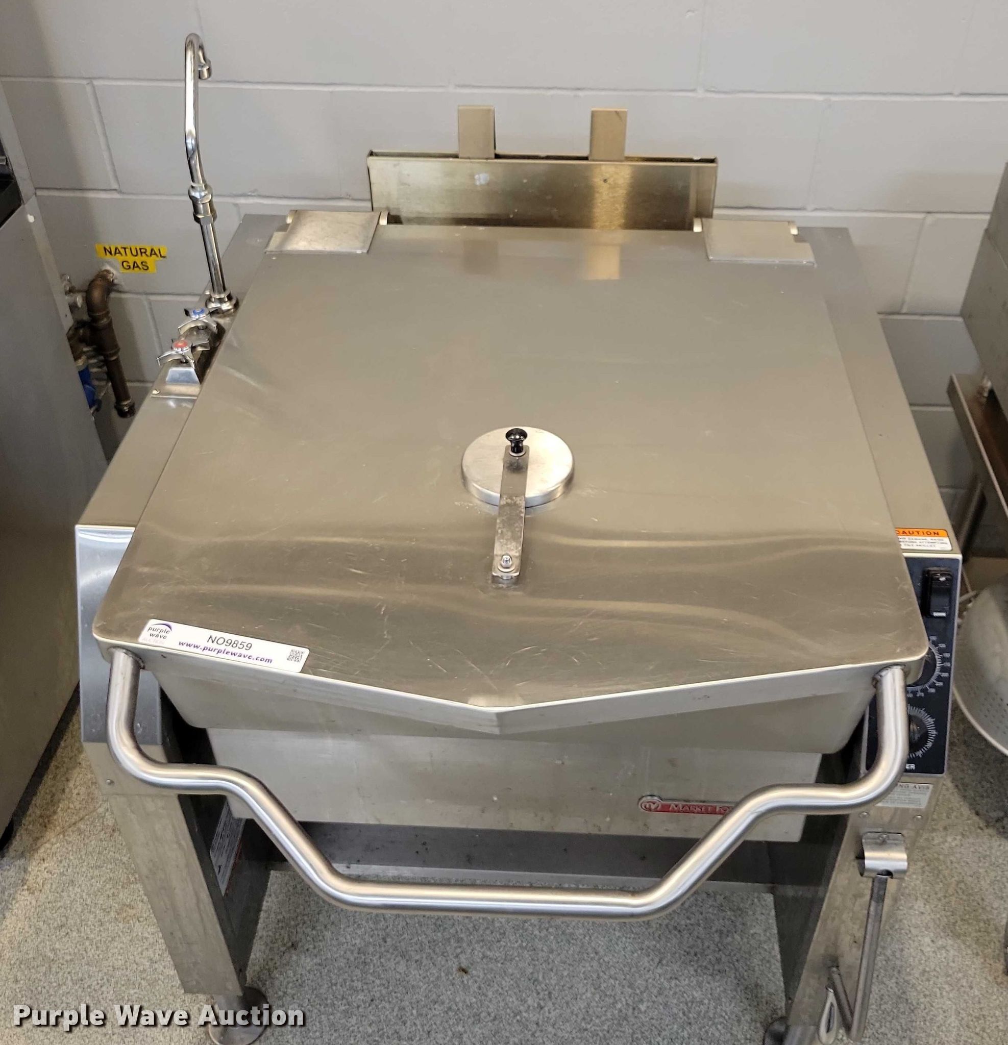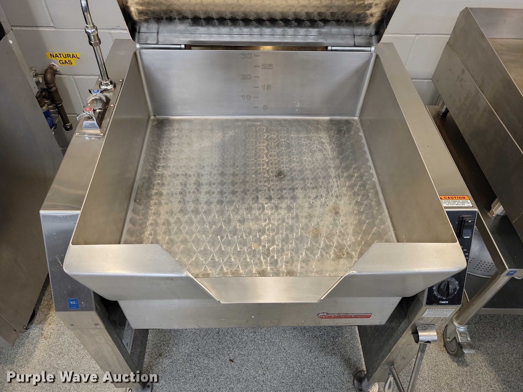 Purple Wave is selling a used Restaurant Equip. in Iowa. This item is a Market Forge 30P- STGL tilting Skillet with the following: Fuel type: Natural gas, Water, Electric/manual tilt, 30 gal basin, Volts: 120, Phase: One, BTU's: 93,000