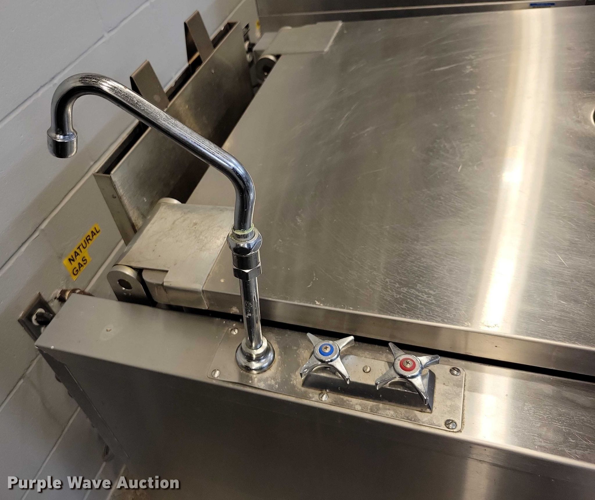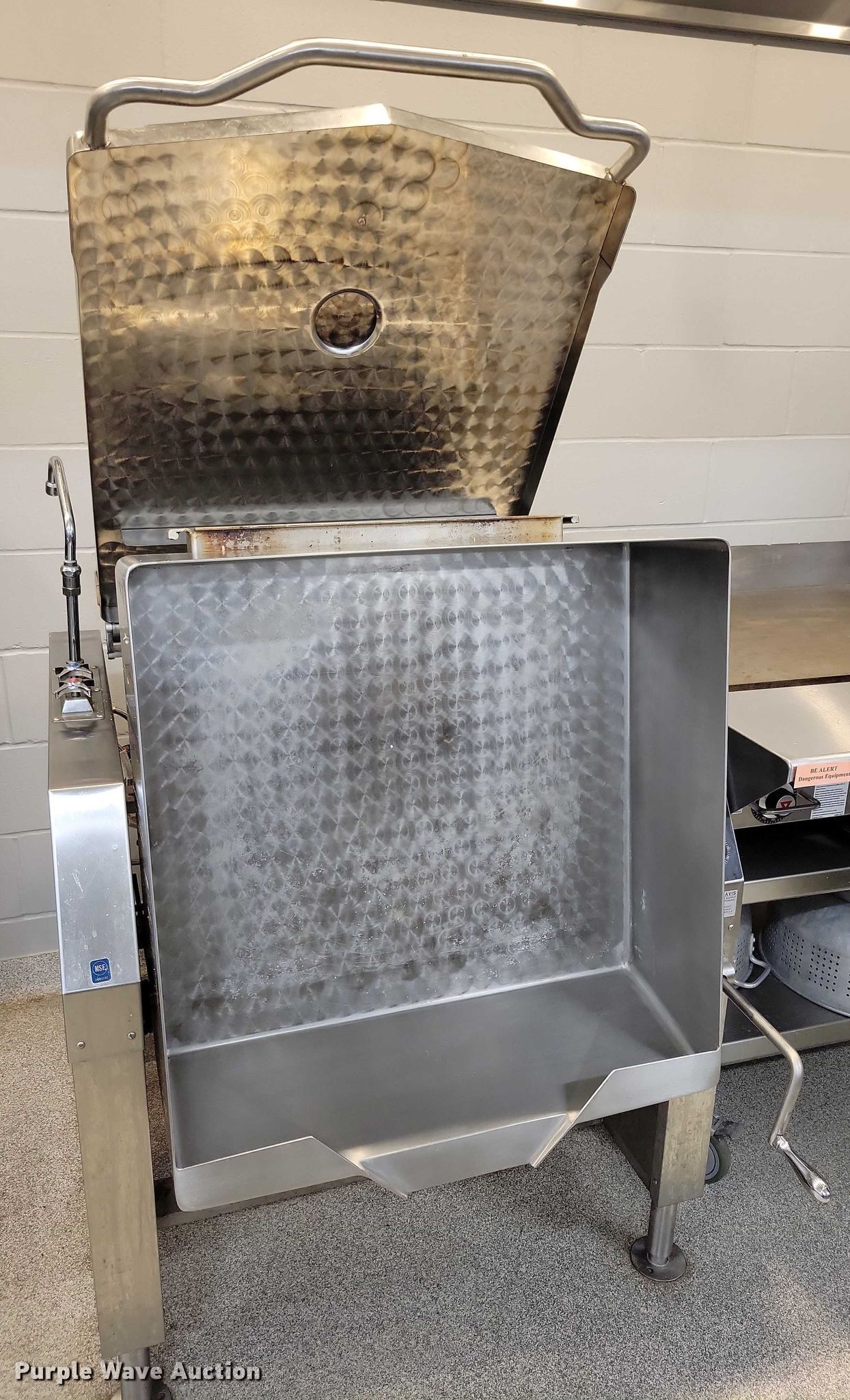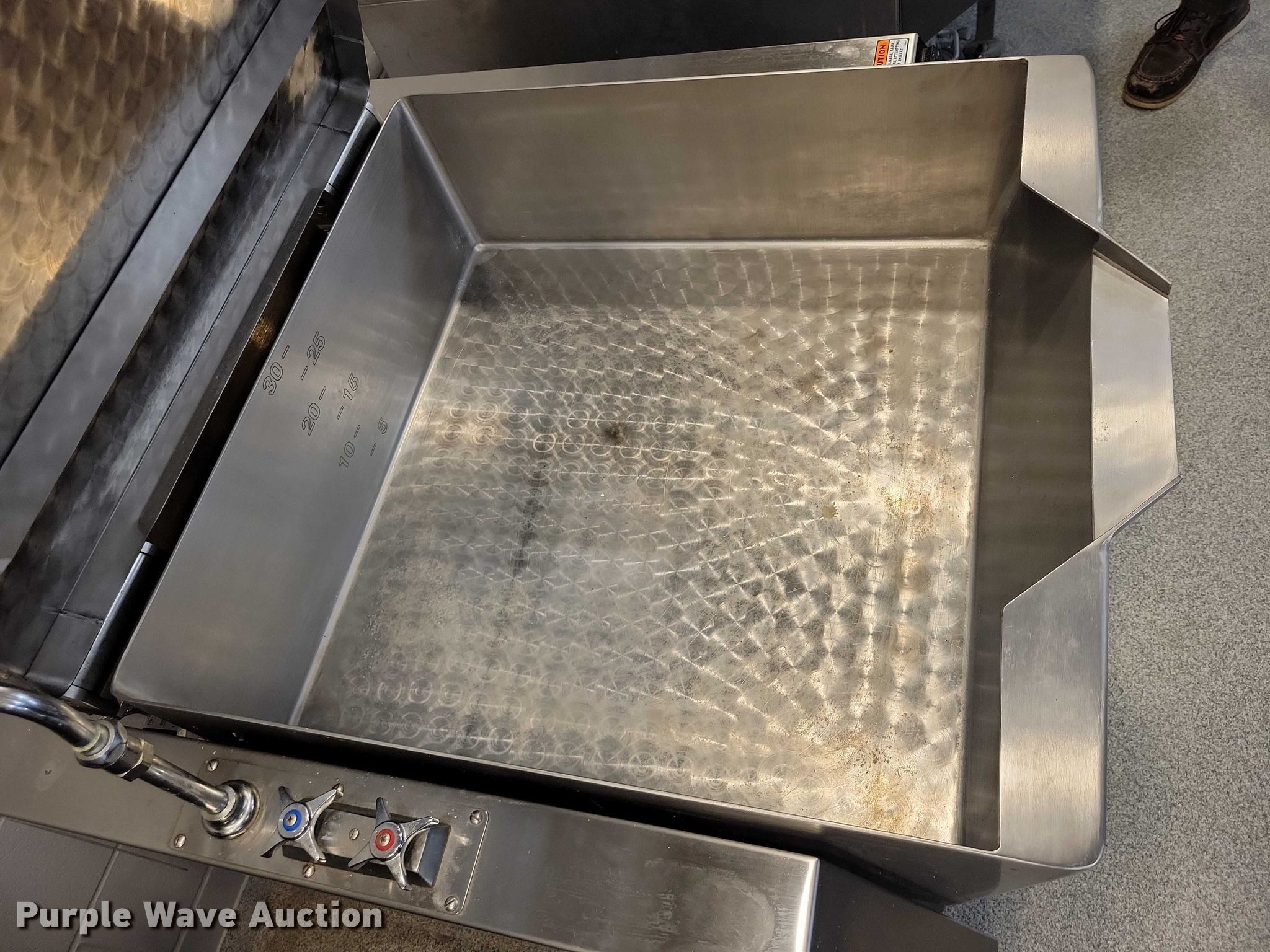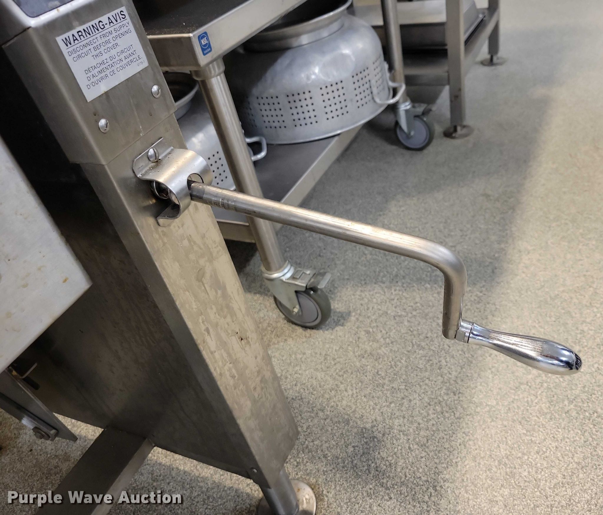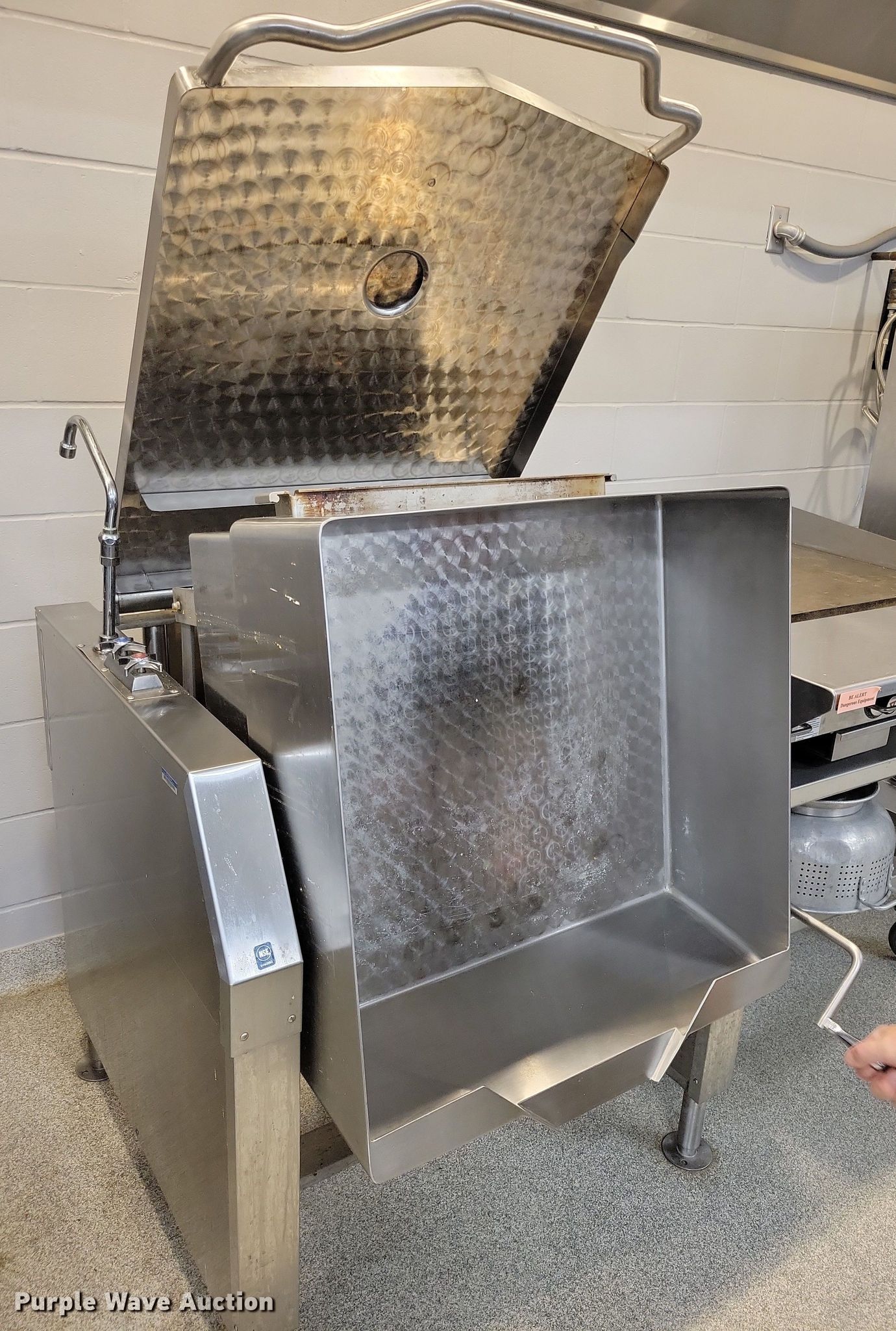 Purple Wave is selling a used Restaurant Equip. in Iowa. This item is a Market Forge 30P- STGL tilting Skillet with the following: Fuel type: Natural gas, Water, Electric/manual tilt, 30 gal basin, Volts: 120, Phase: One, BTU's: 93,000