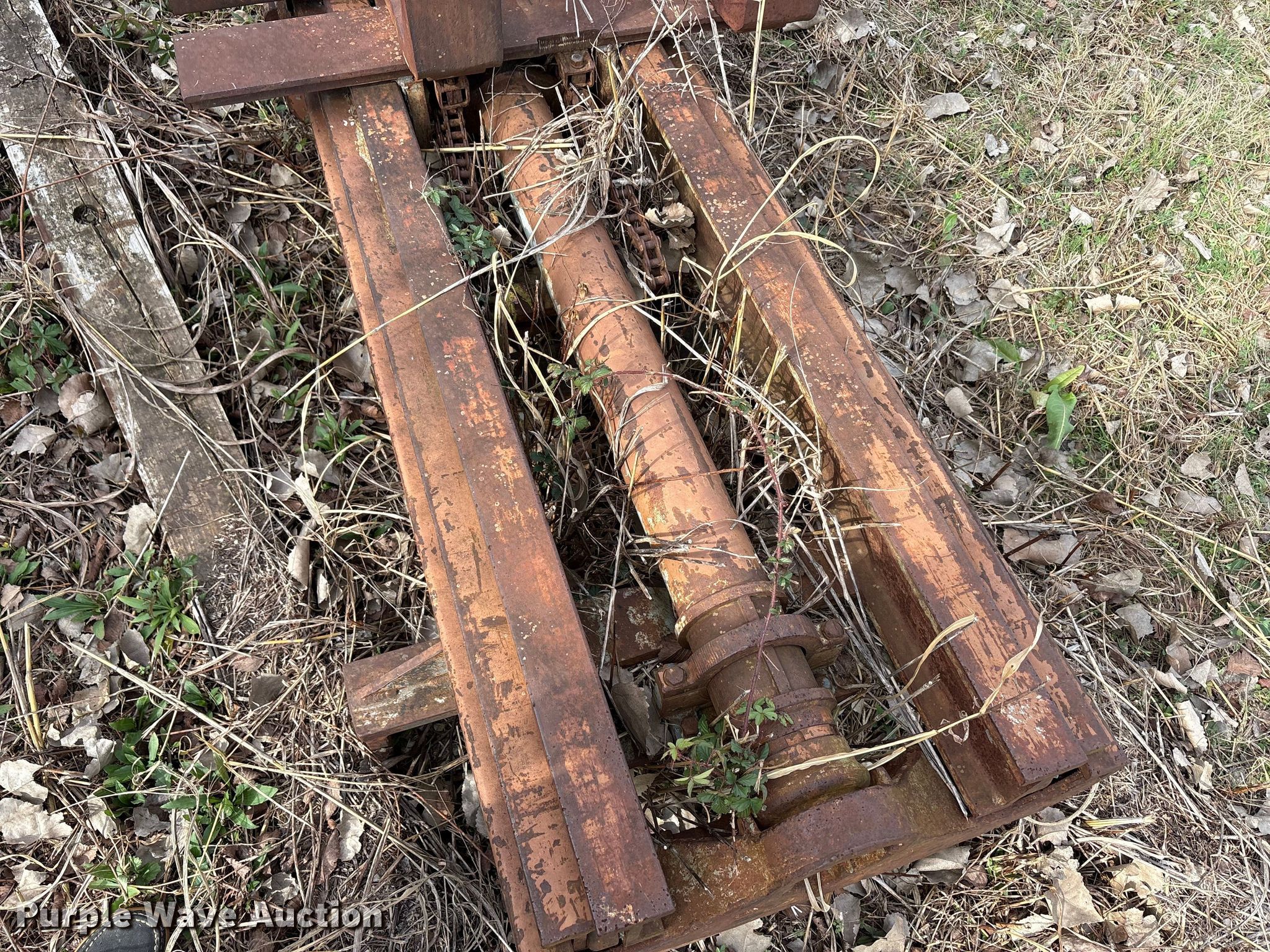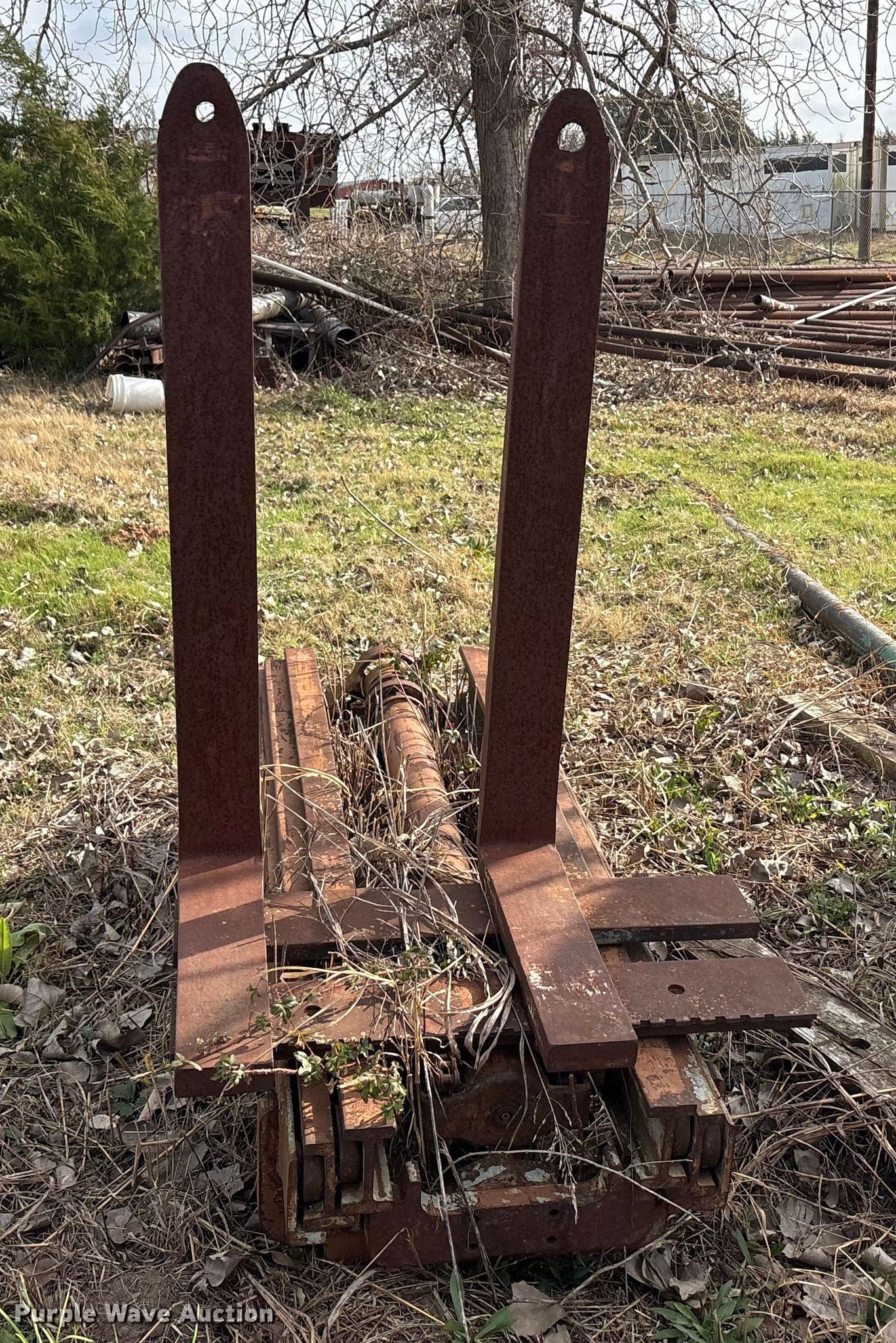 Purple Wave is selling a used Ag Tractor Loader or Attach. in Texas. This item is a 4'L forks with the following: Three point, Overall: 68" L, Mast stages: 3