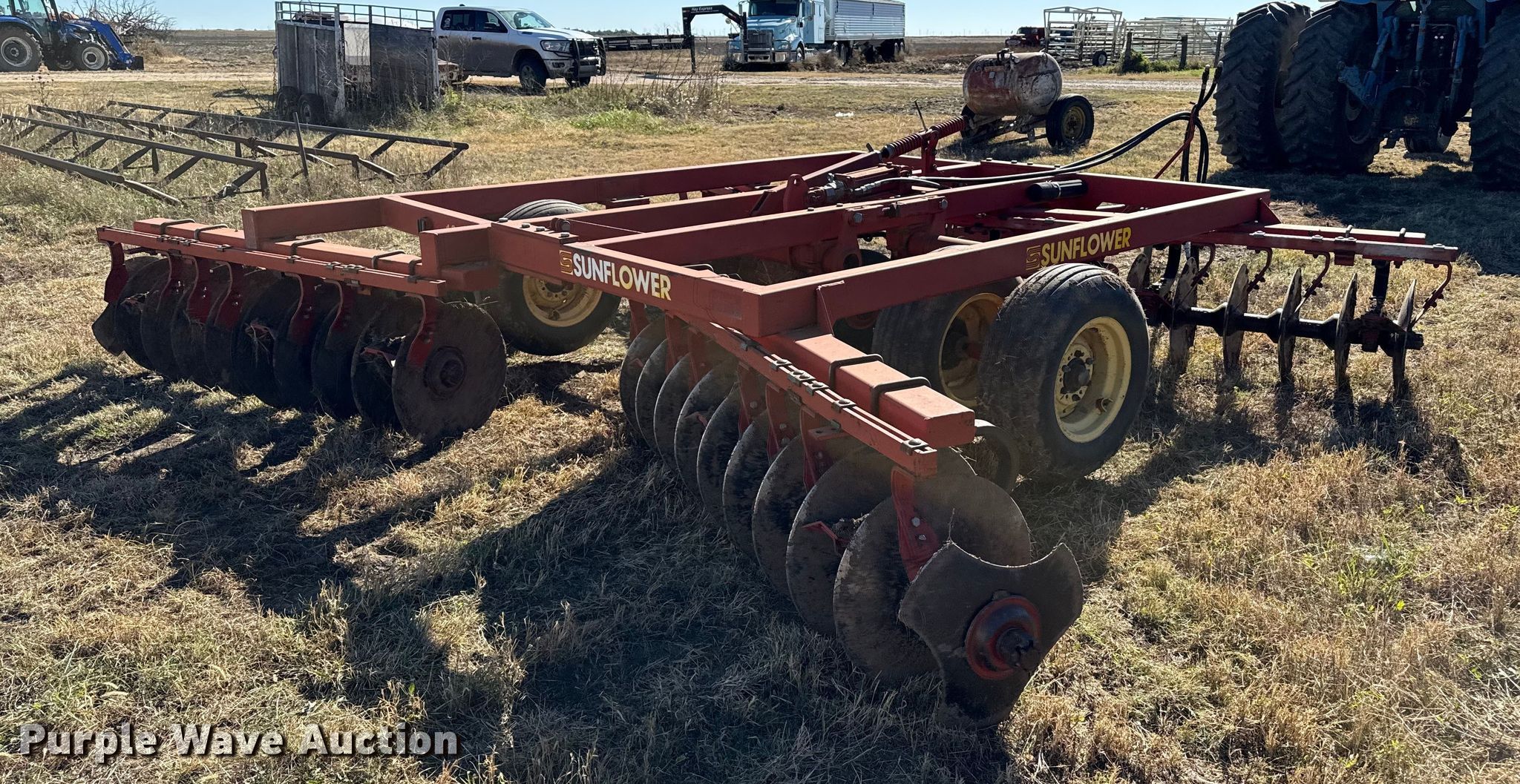Take a look at this used Sunflower 1211 double off-set disk being sold on January 21st, 2026 in the Wednesday January 21 Ag Equipment Auction made by Sunflower. Take a look at all of the item information below or take a look at similar auctions for Tillage Equipment.