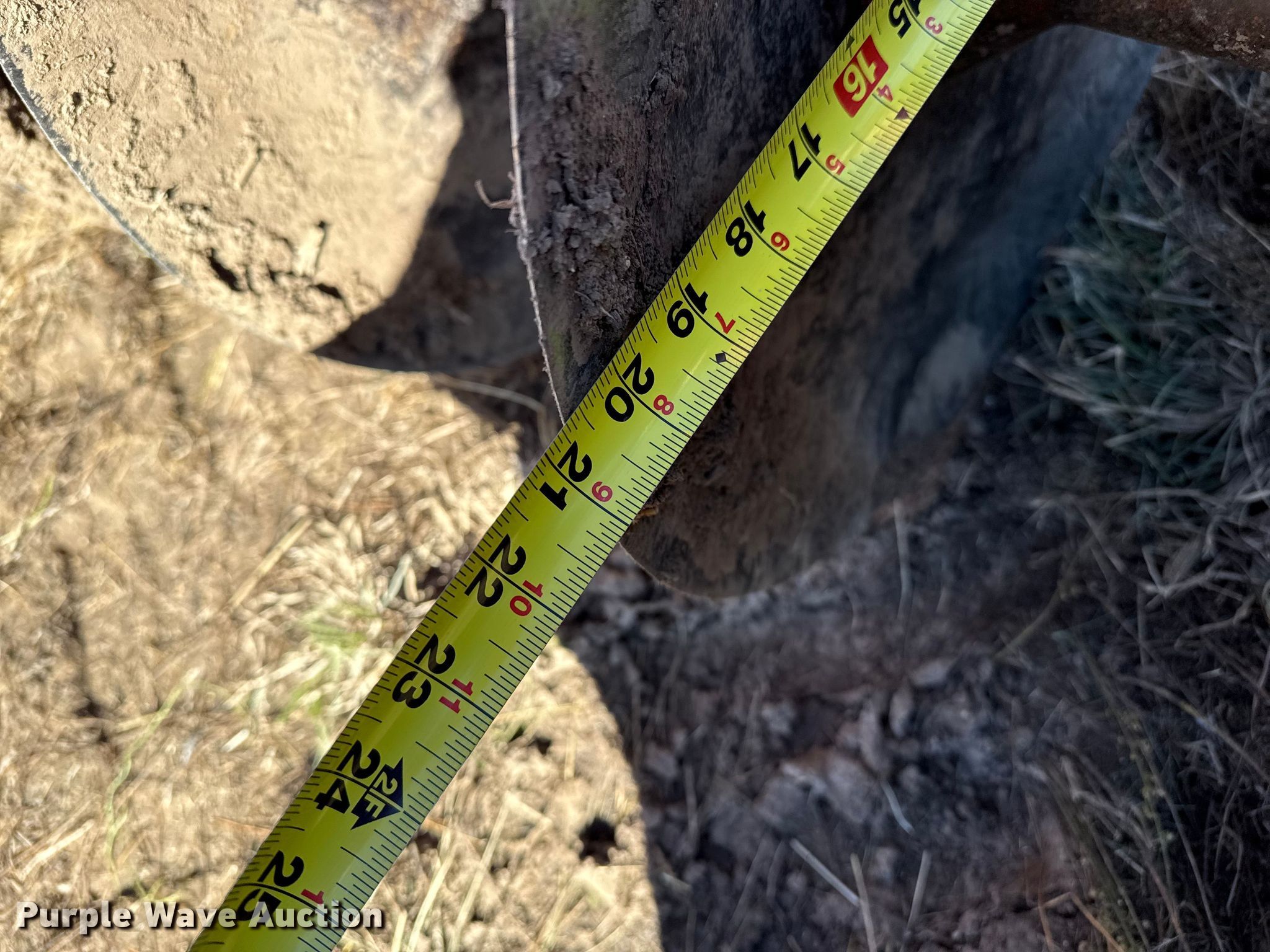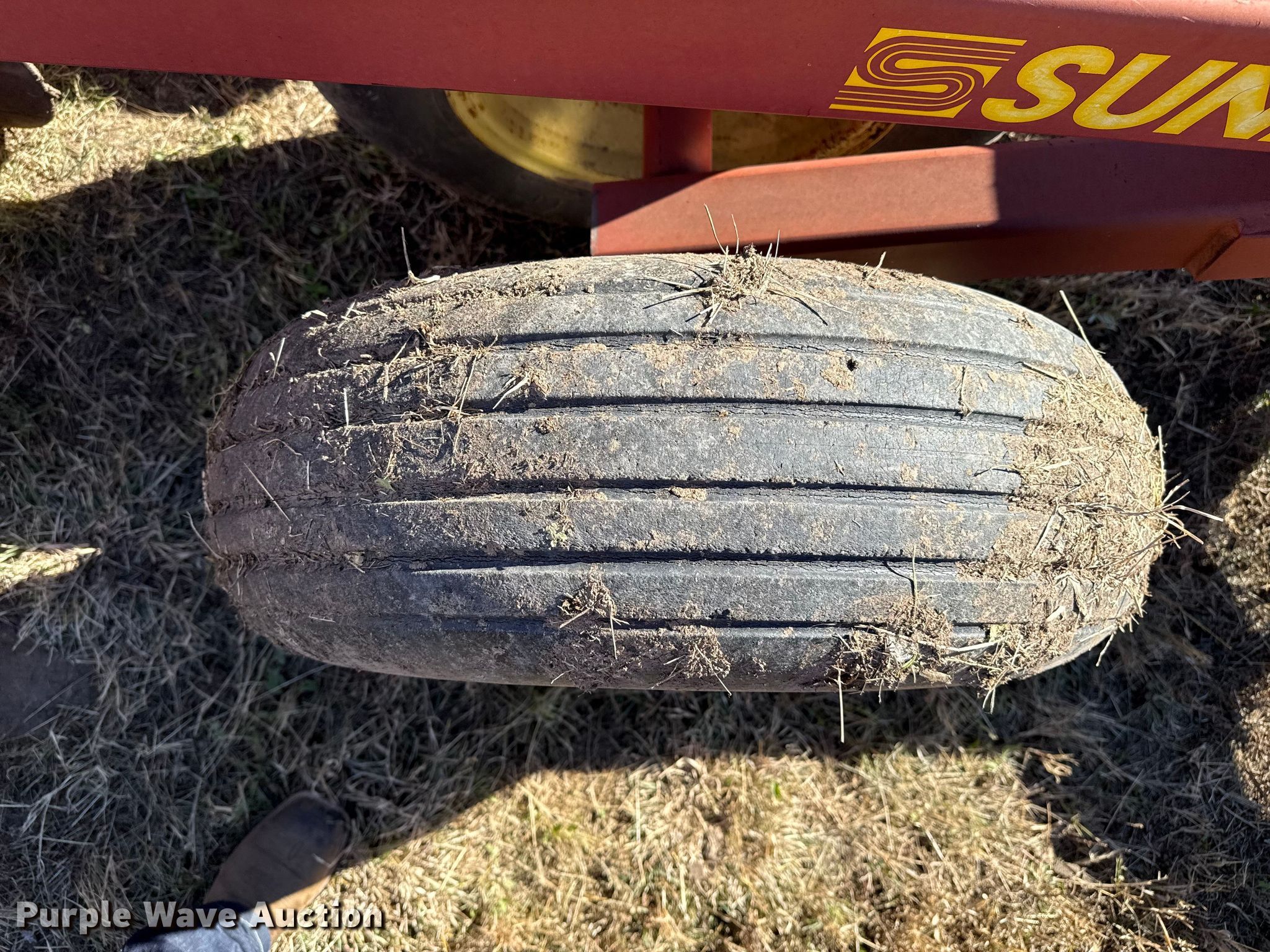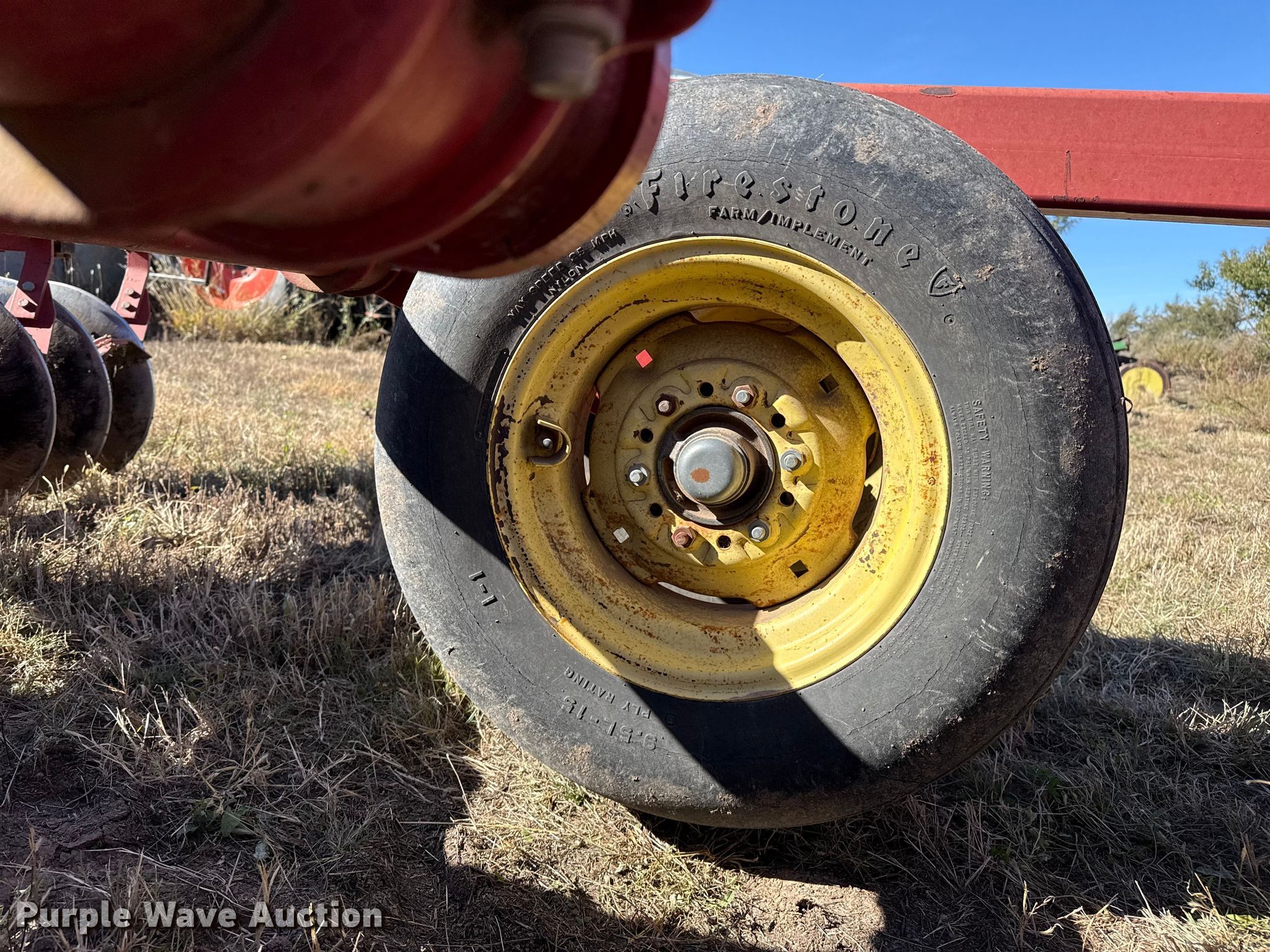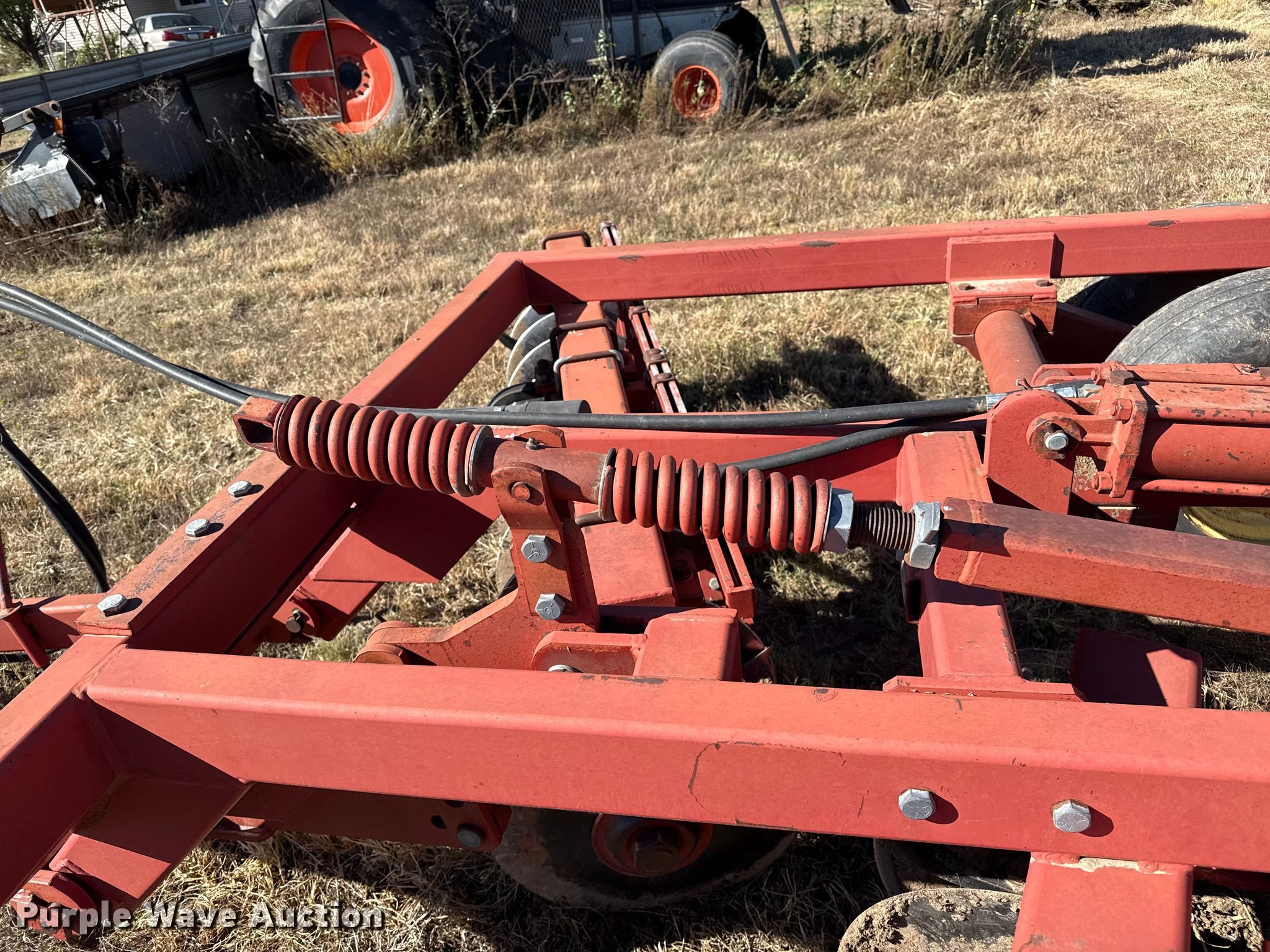 Sunflower 1211 double off-set disk. Overall width: 15', Serial: 1294-420. Features Front blades Diameter: 21", Spacing: 9", Rear blades Diameter: 22", Spacing: 9", Disk scrapers, Operation Hydraulic lift, Leveler: Manual. Tires Tire size: 9.5L-15SL. Jetmore, KS 67854