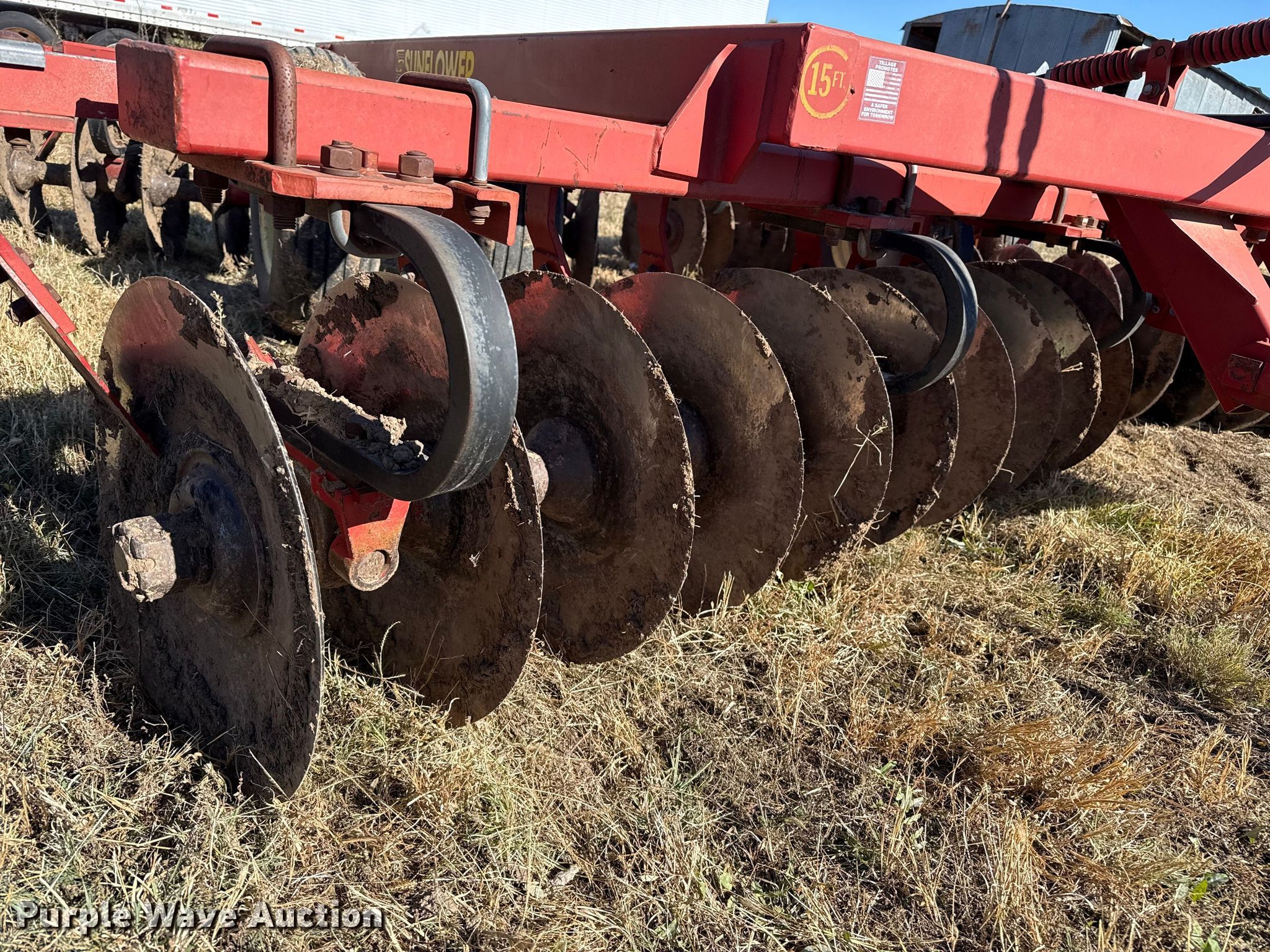 Purple Wave is selling a used Disk in Kansas. This item is a Sunflower 1211 double off-set disk with the following: Overall width: 15', Serial: 1294-420