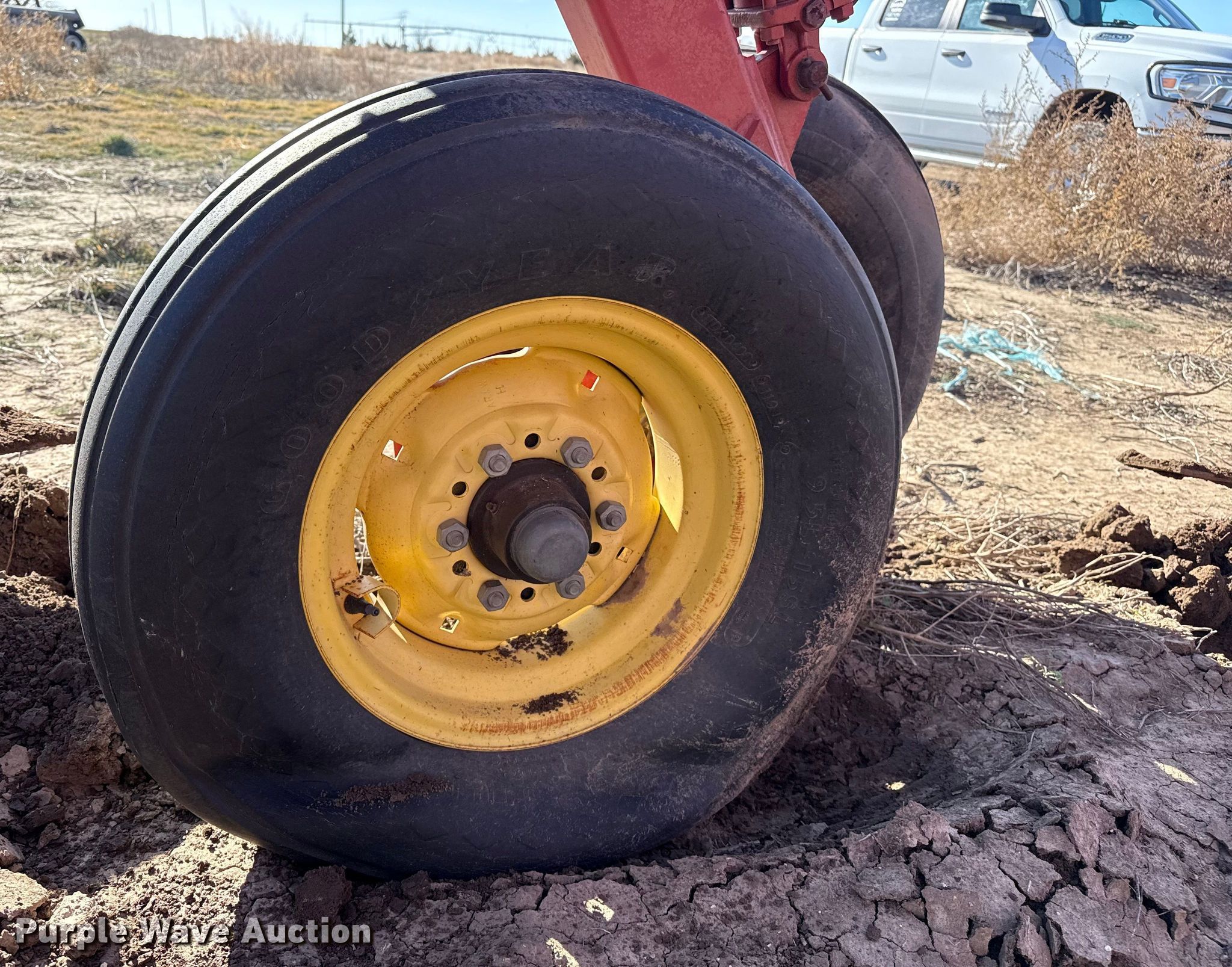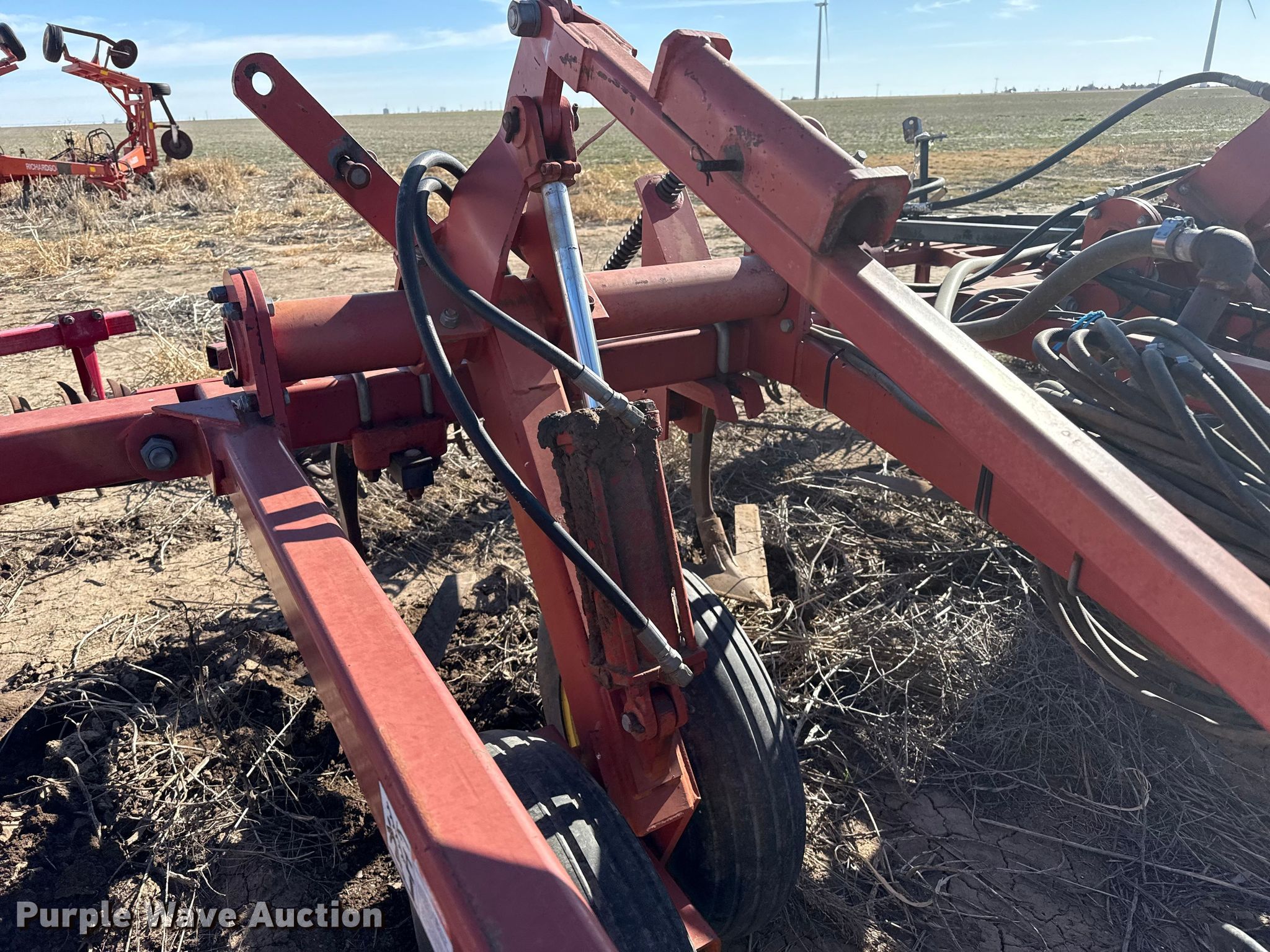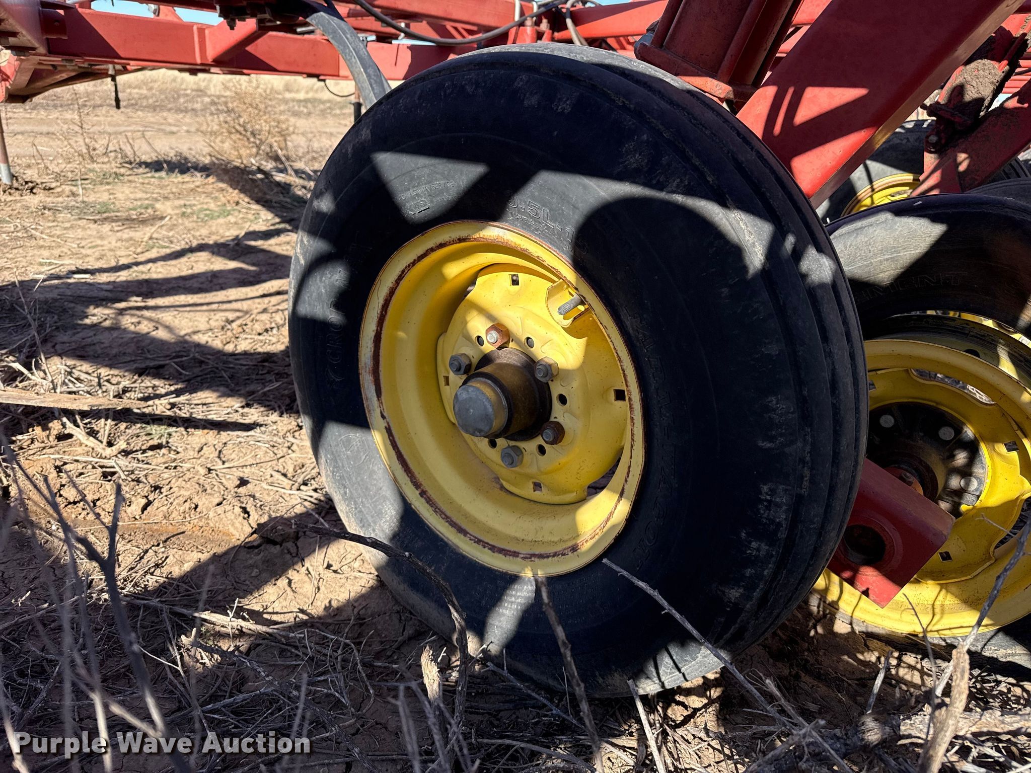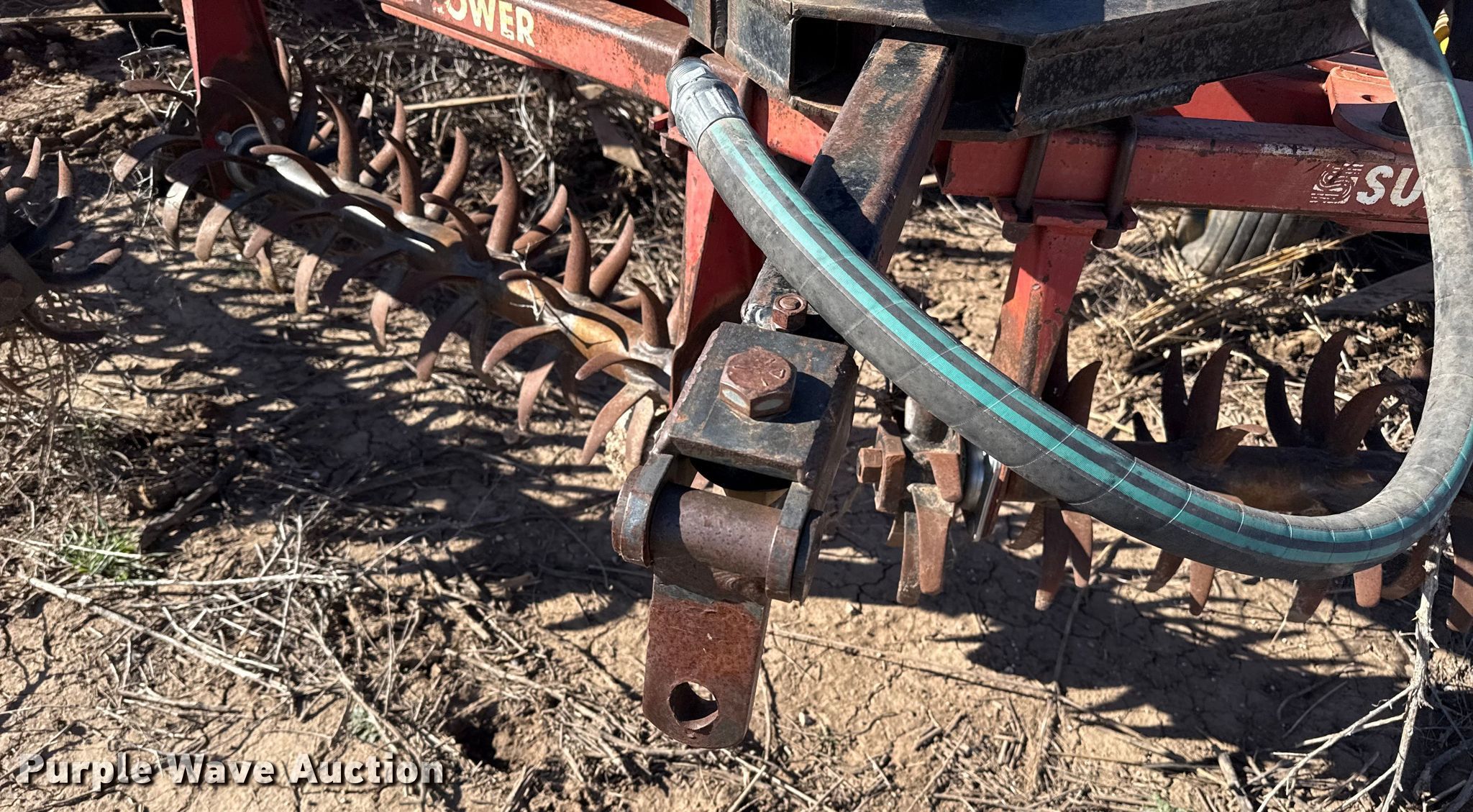 Sunflower 3050-35 field cultivator. Overall width: 35', Serial: 03050119990005. Features Shanks: 21, Sweep width: 24", Operation Hydraulic lift, Hydraulic fold, Leveler: Manual, Walking tandem axle, Attachments Rolling pickers/ treader, NH3 hookups, Rear hitch. Tires Tire size: 9.5L-15, Gauge wheels Size: 20.5x8.00-10. Anchor V ranch. Perryton, TX 79070