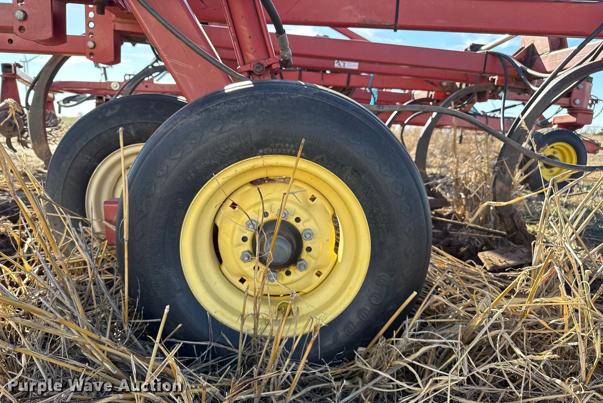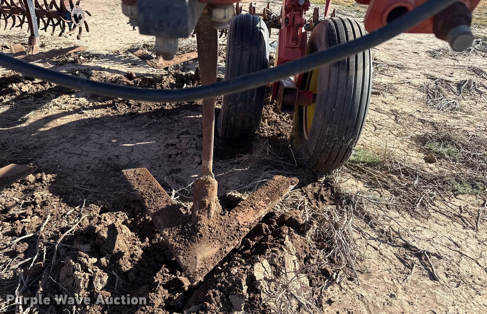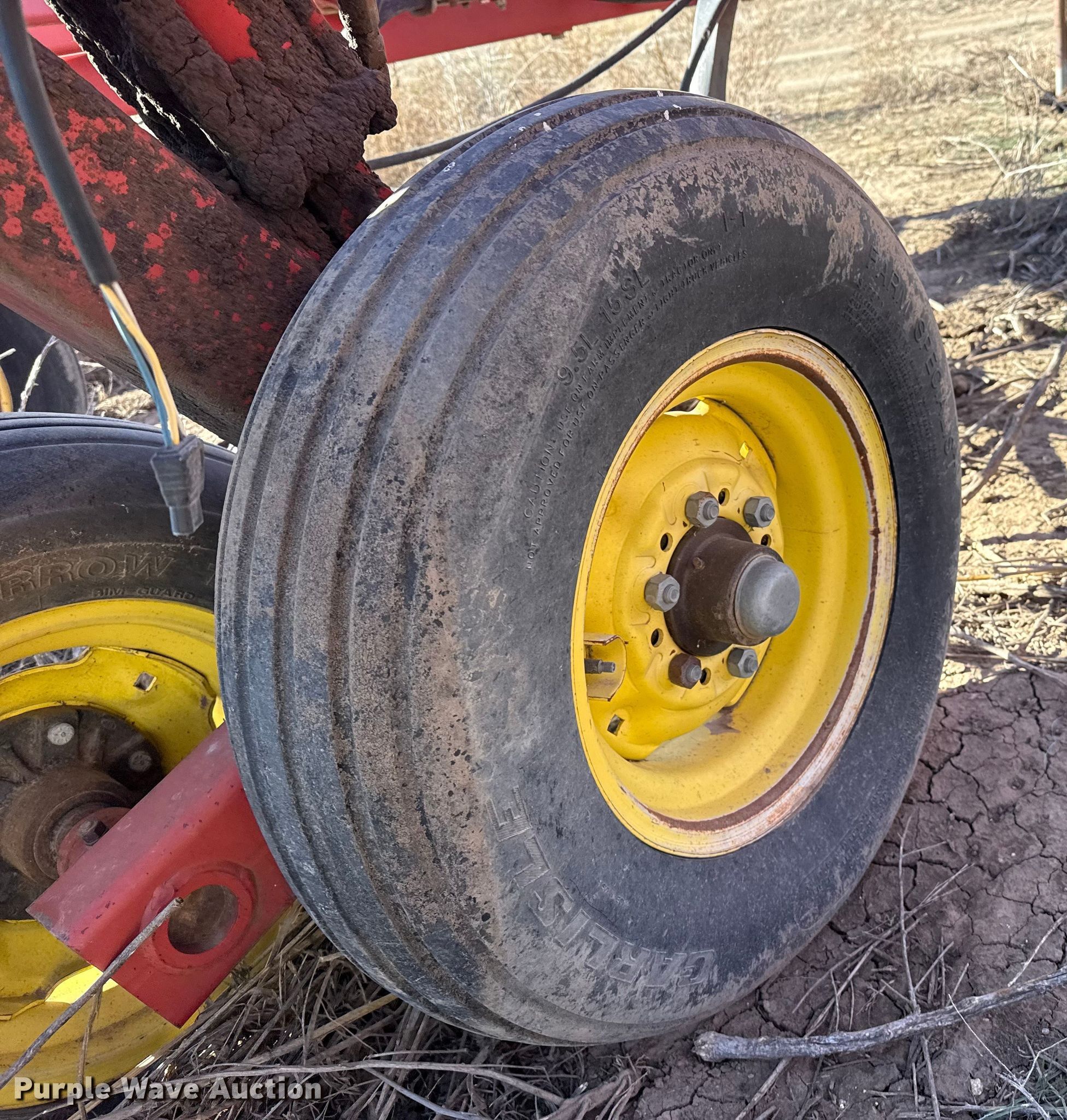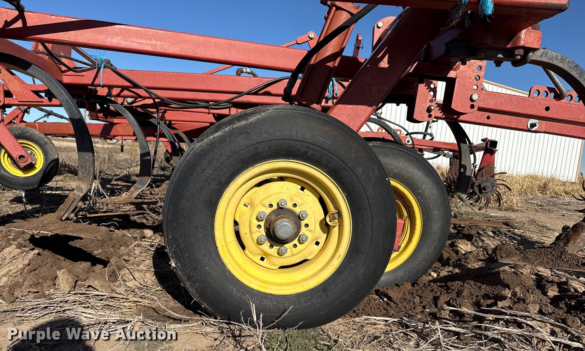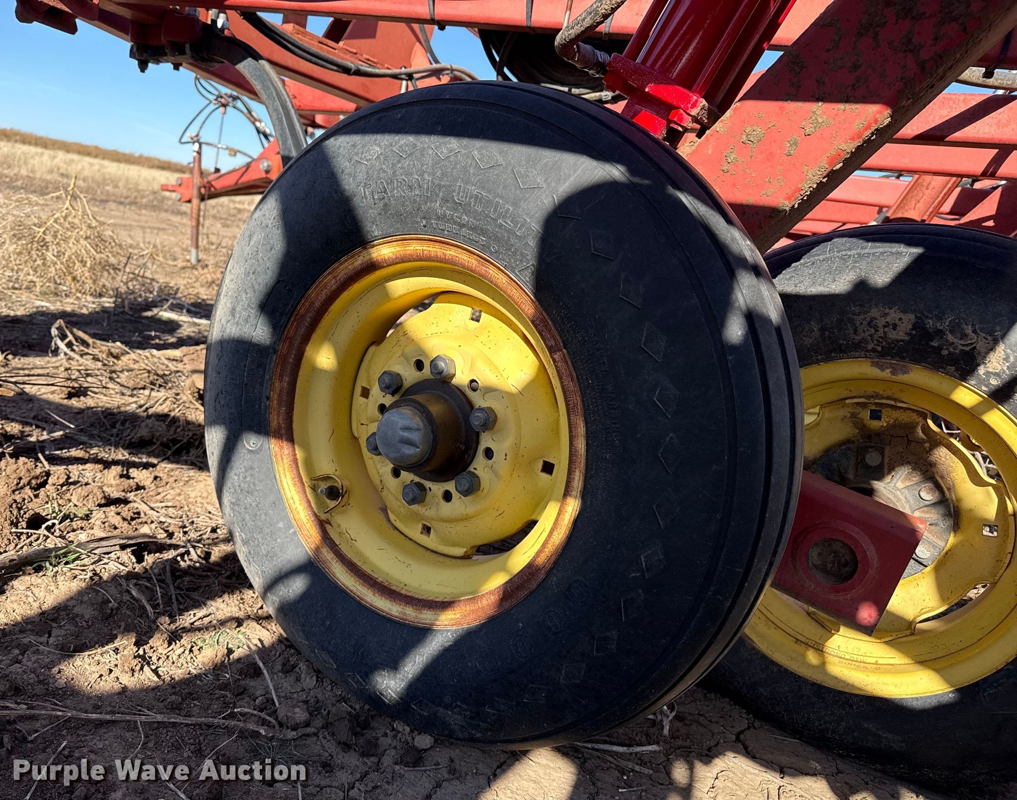 Sunflower 3050-35 field cultivator. Overall width: 35', Serial: 03050119990005. Features Shanks: 21, Sweep width: 24", Operation Hydraulic lift, Hydraulic fold, Leveler: Manual, Walking tandem axle, Attachments Rolling pickers/ treader, NH3 hookups, Rear hitch. Tires Tire size: 9.5L-15, Gauge wheels Size: 20.5x8.00-10. Anchor V ranch. Perryton, TX 79070