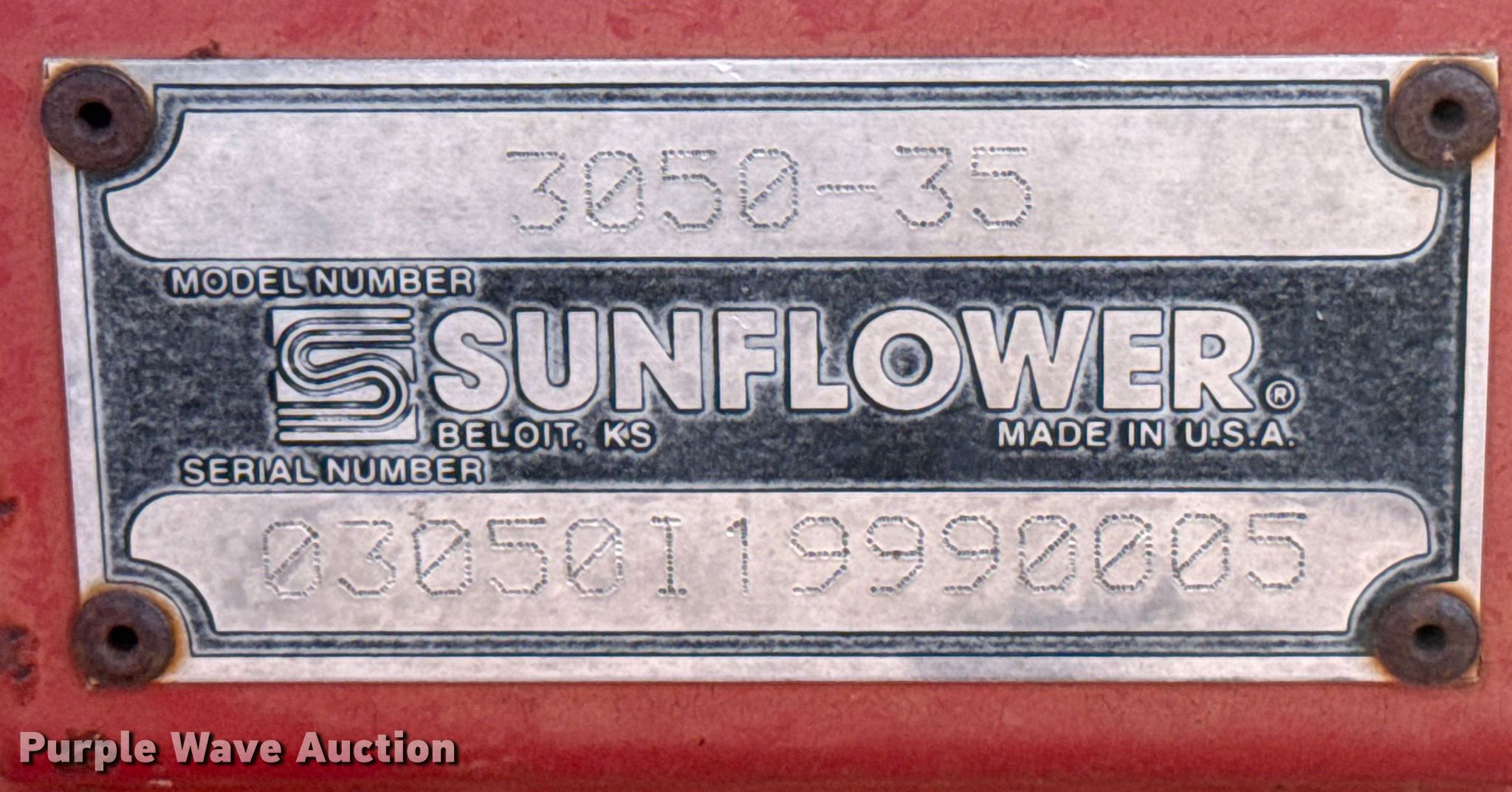 Purple Wave is selling a used Field Cultivator or Sweep Plow in Texas. This item is a Sunflower 3050-35 field cultivator with the following: Overall width: 35', Serial: 03050119990005