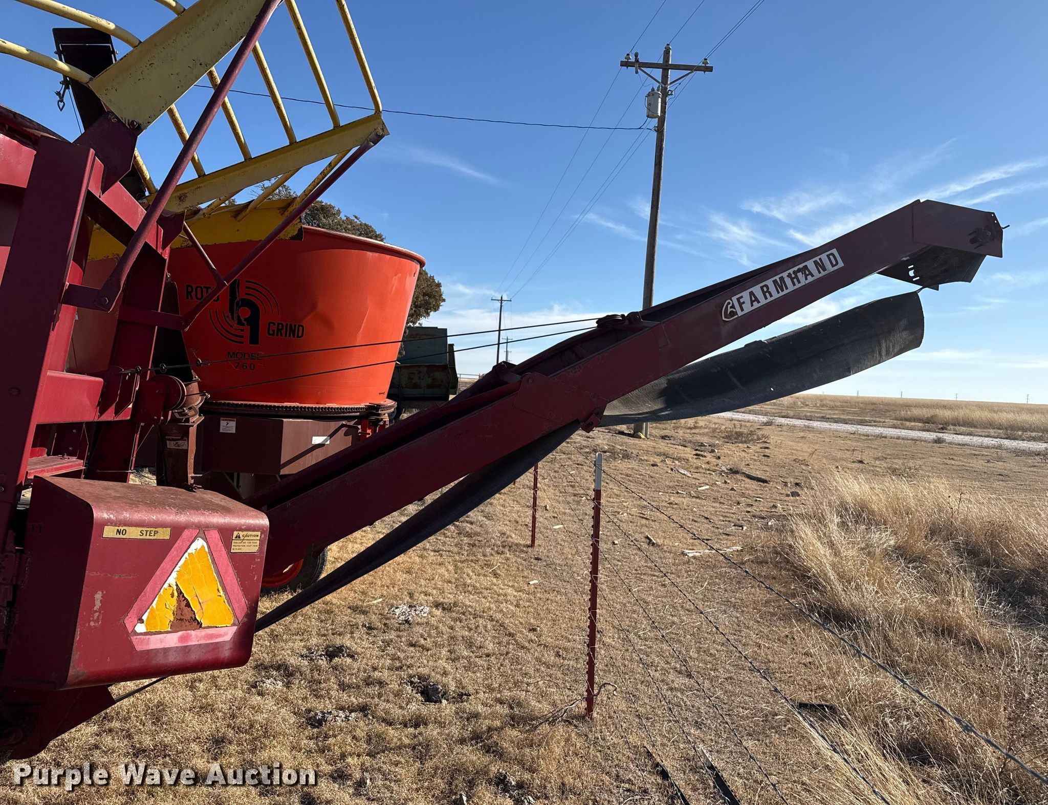 Purple Wave is selling a used Feed Mixer or Bale Processor in Texas. This item is a Farmhand 880 tub grinder with the following: PTO: 1000, Discharge: Rear, Width: 18"