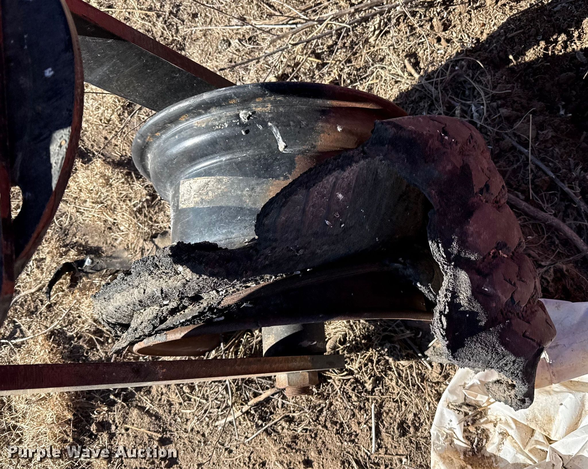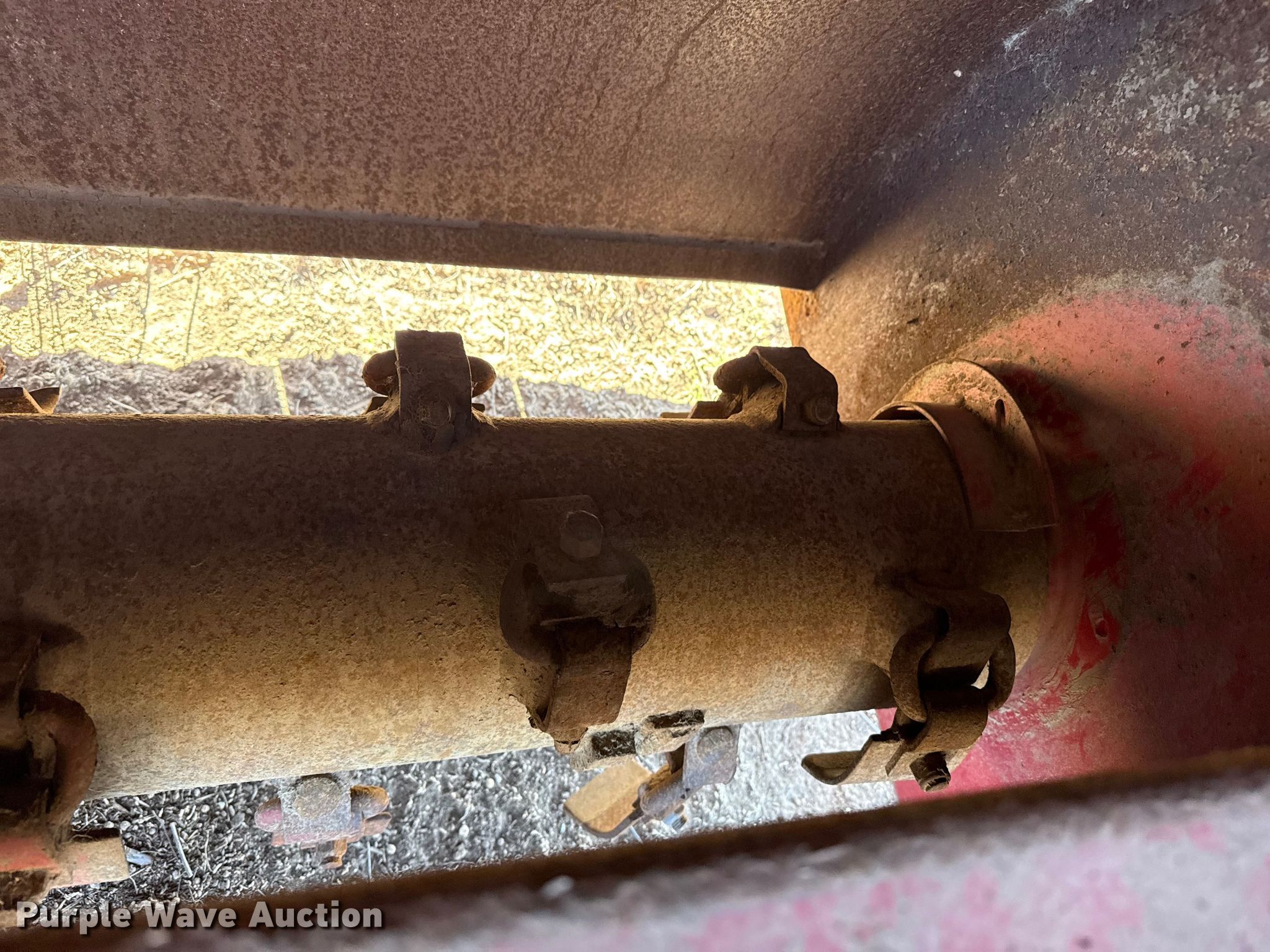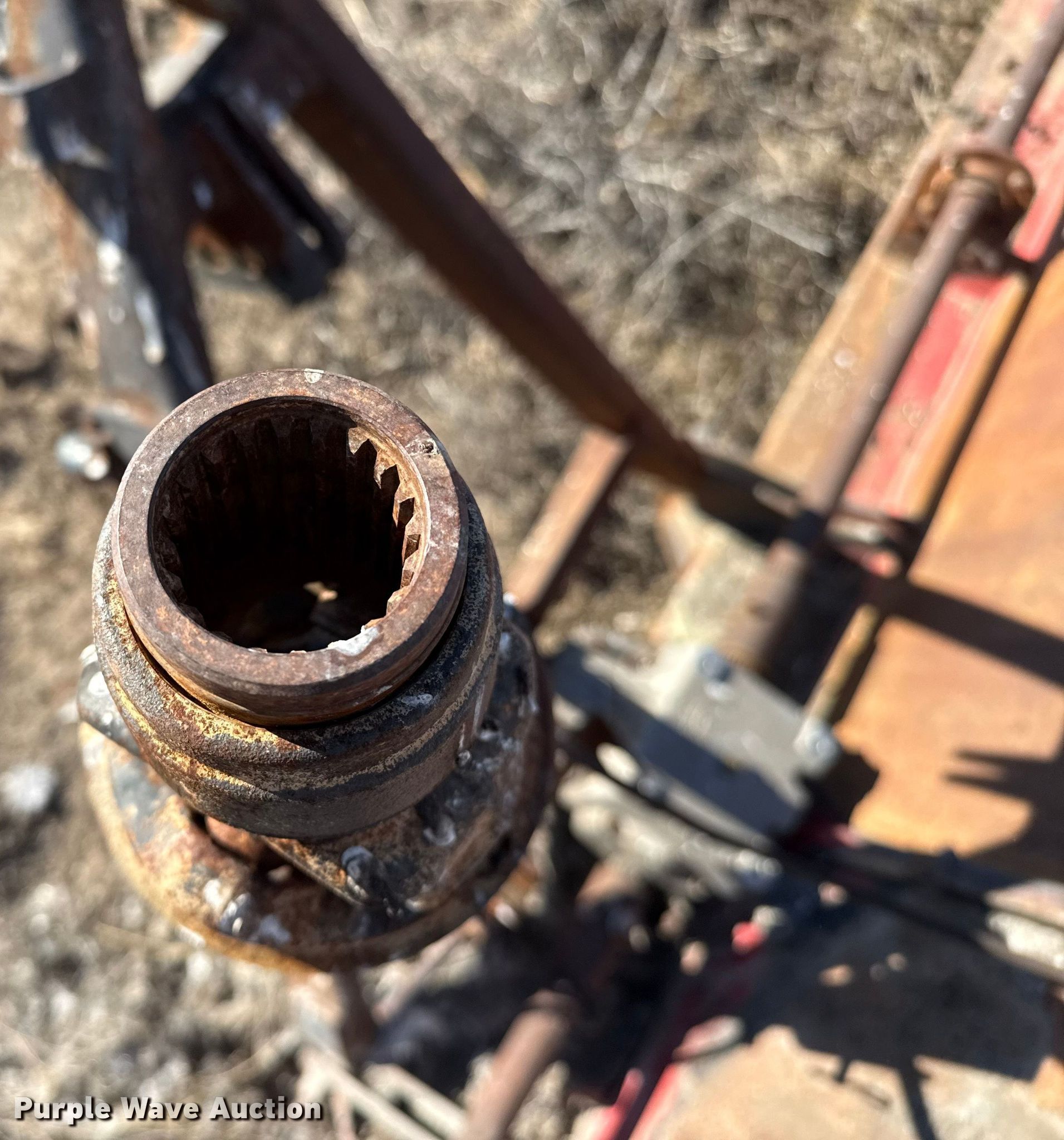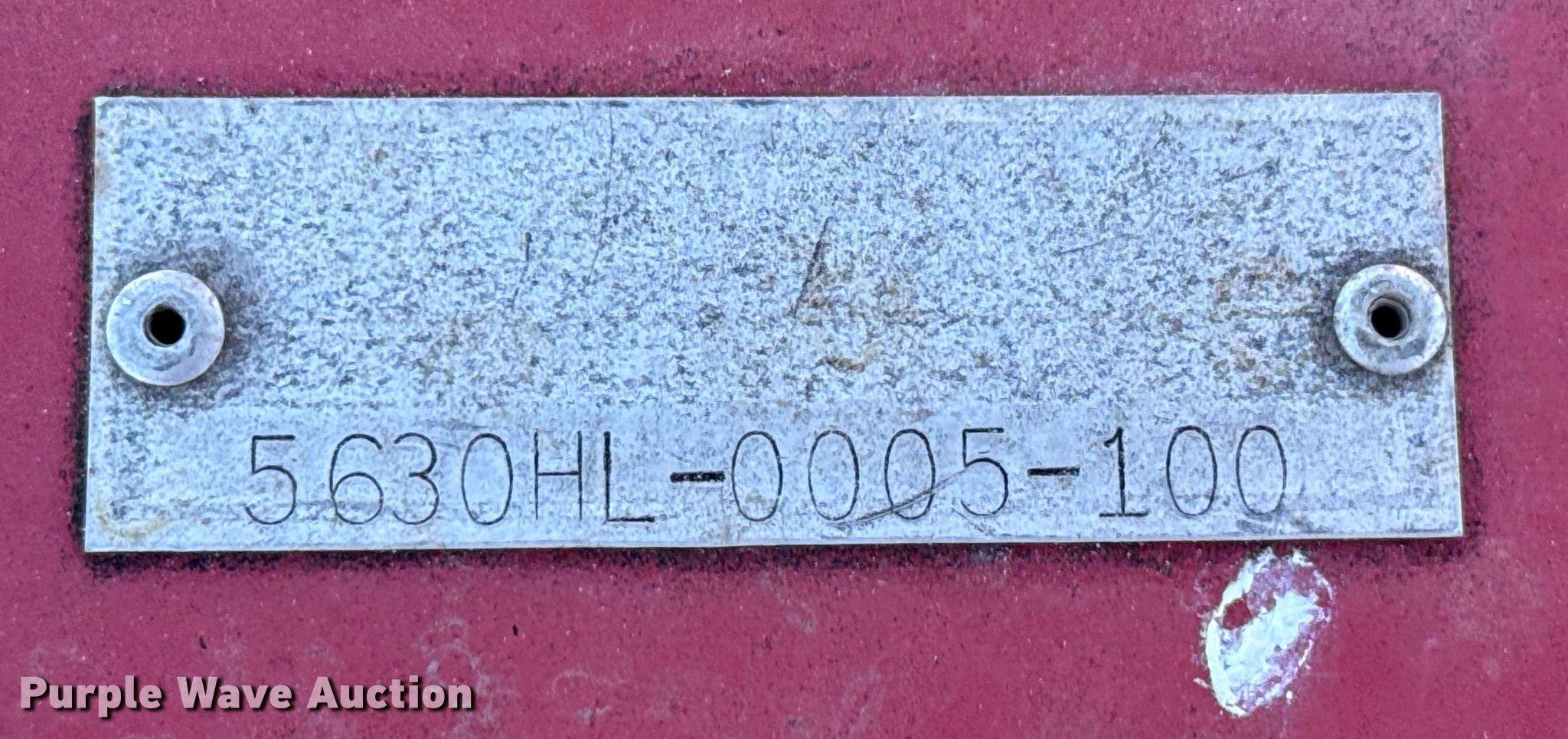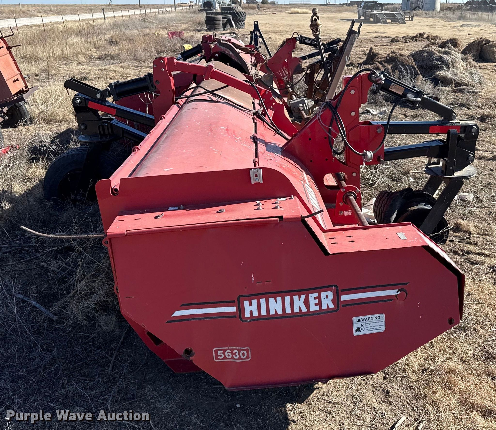 Hiniker 5630 flail mower. Serial: 5630HL-0005-100. Features Width: 30', Hydraulic lift, PTO: 1 3/4" 1000. Tires Size: 11L-15. Notes Burn damage, Driveshaft U-joints need replaced. Anchor V ranch. Perryton, TX 79070