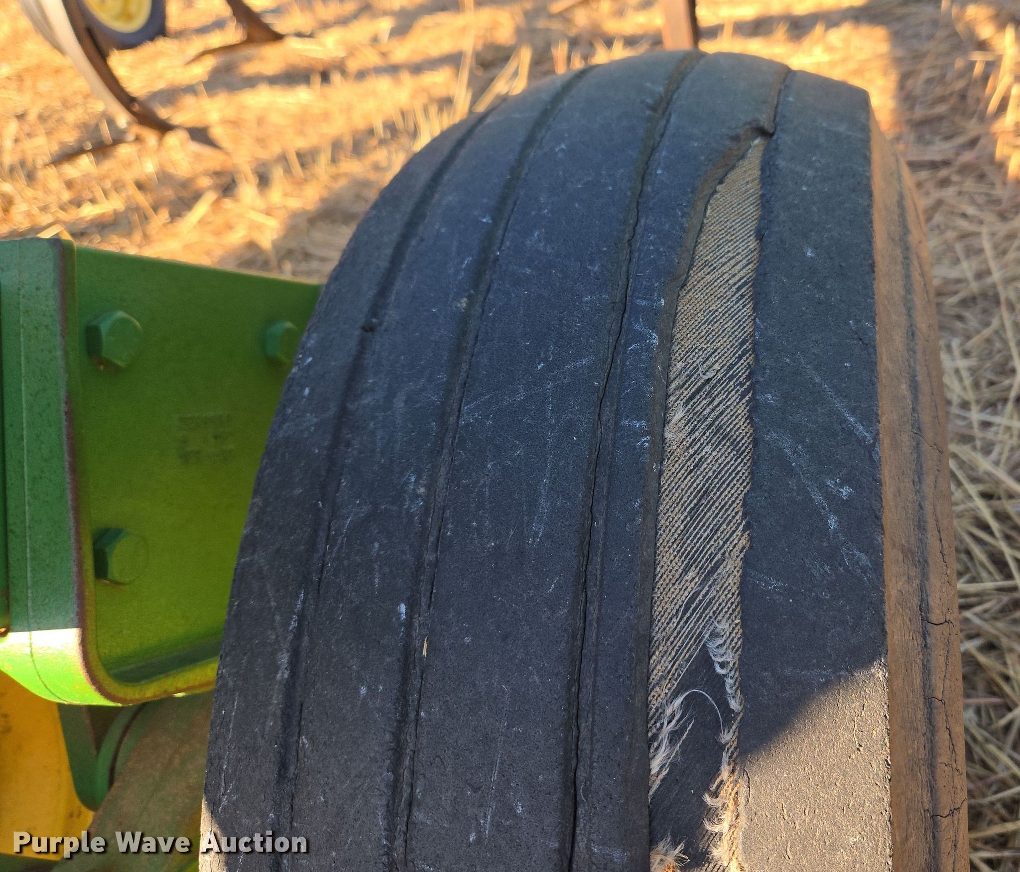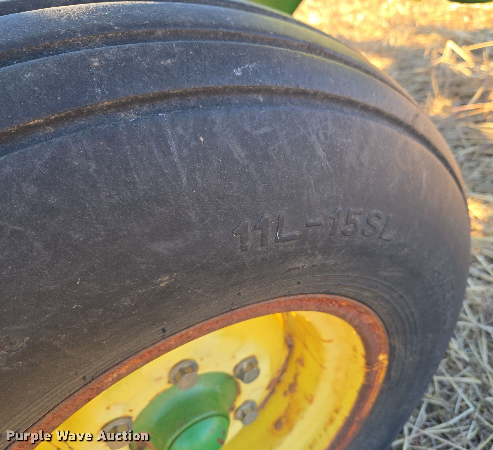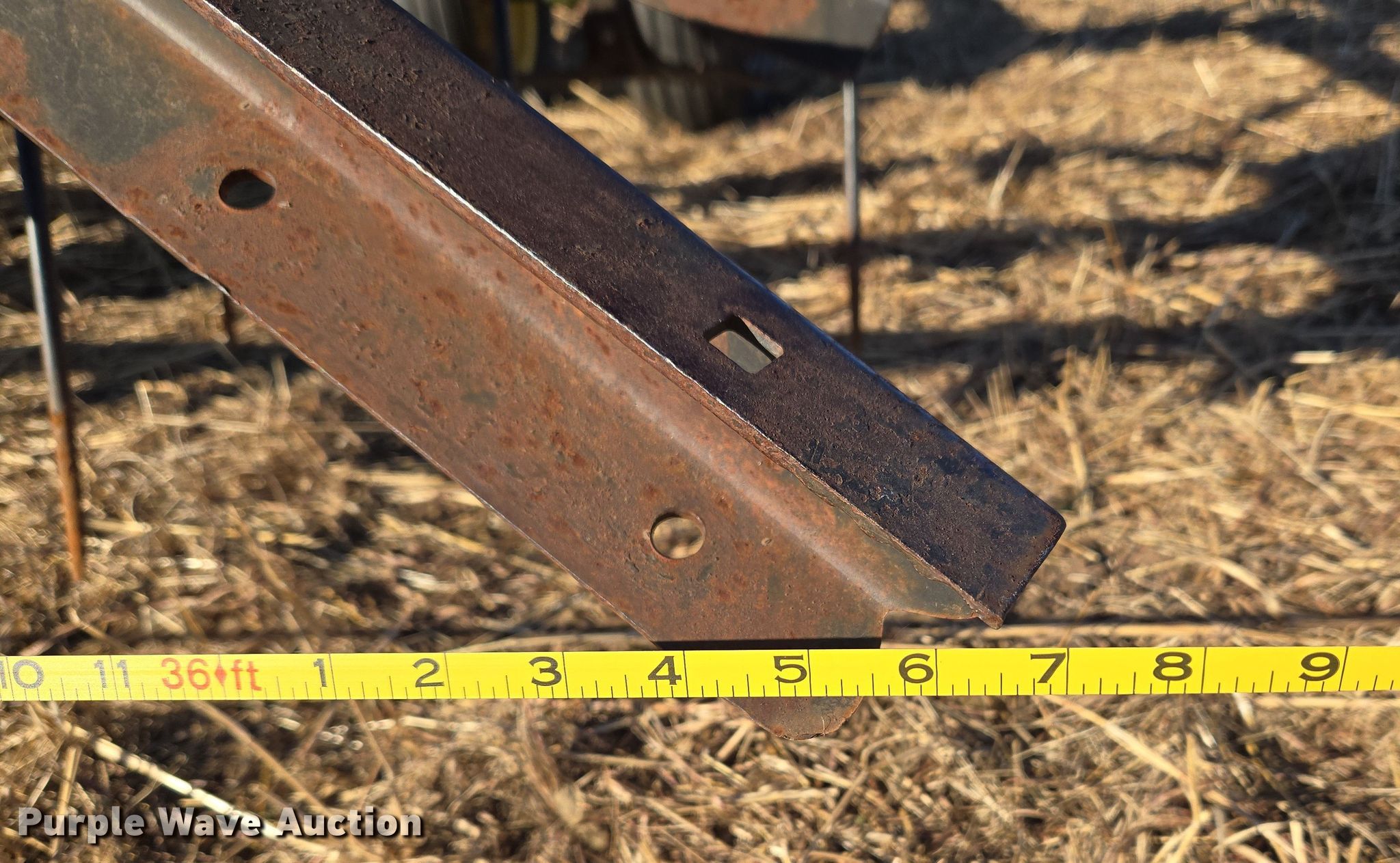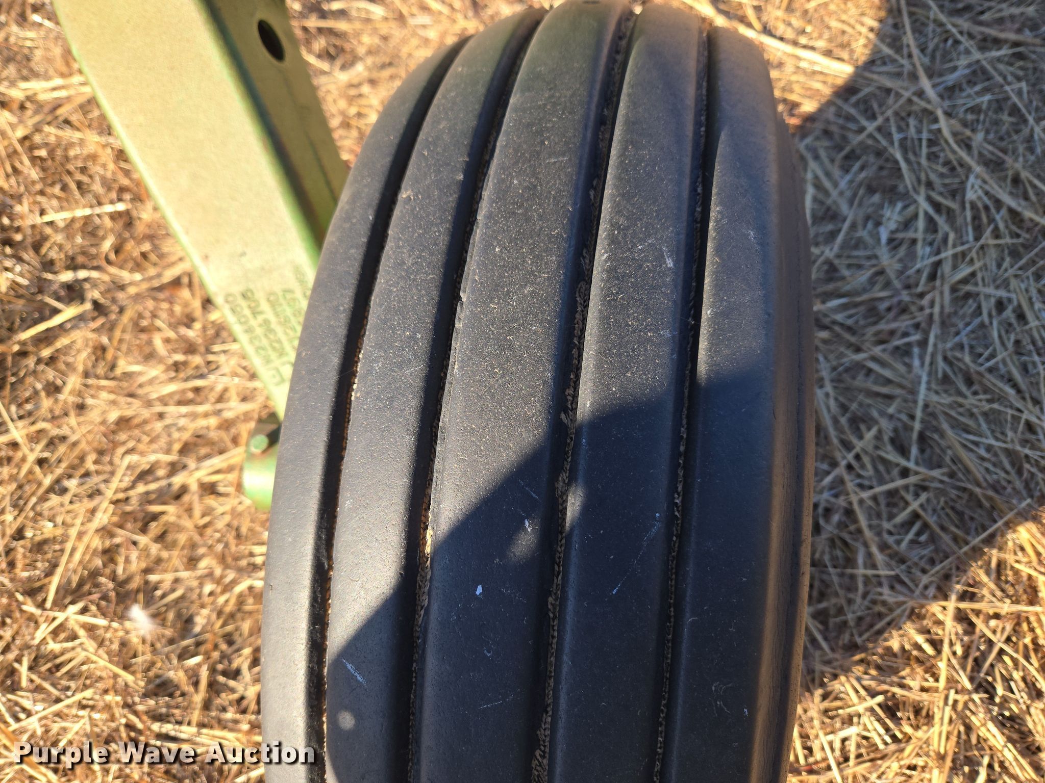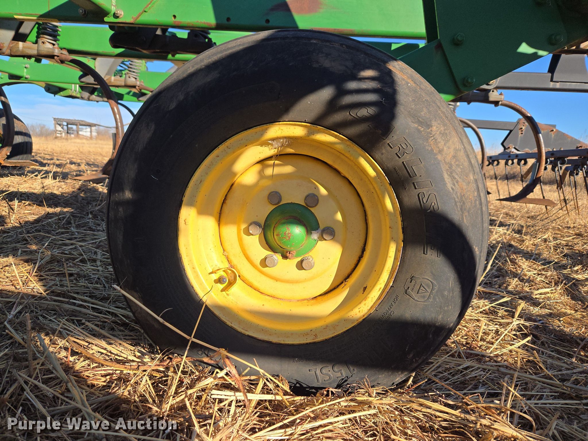 John Deere 2410 chisel. Overall width: 36' 7", Serial: N02410X008060. Features Shanks: 37, Sweep width: 16", Operation Hydraulic lift, Hydraulic fold, Walking tandem axle, Attachments Tine harrow Harrow bars: 3, Transport lights. Tires Tire size: 11L15, Gauge wheels Size: 11L15. Notes Non-operational transport lights. Hitchcock, OK 73744