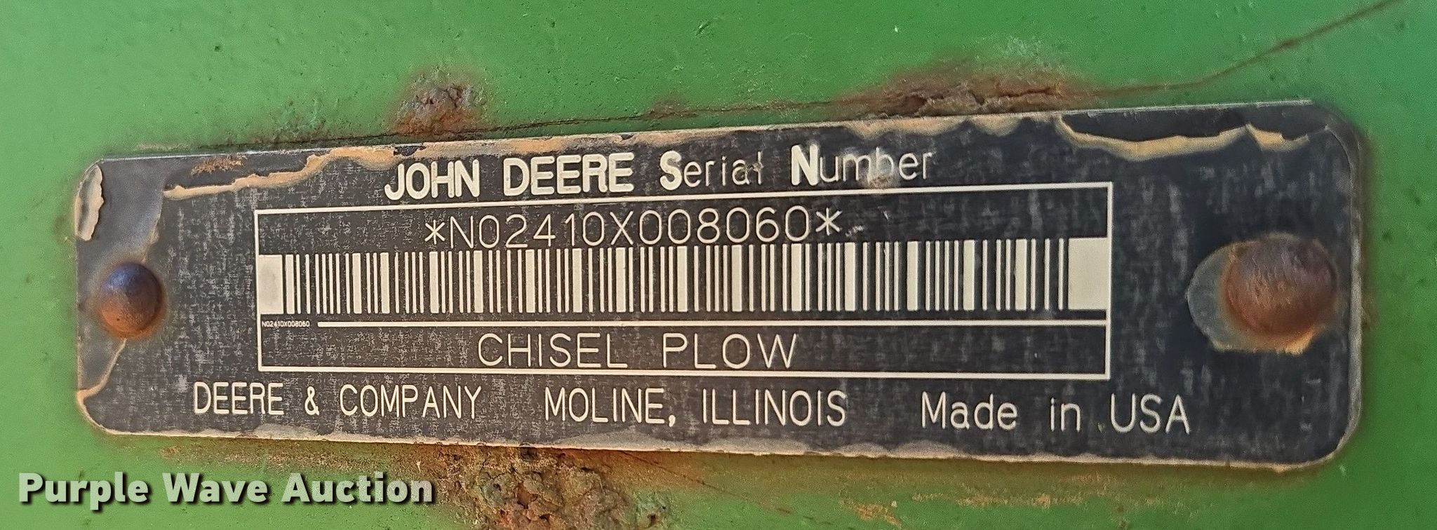Purple Wave is selling a used Chisel in Oklahoma. This item is a John Deere 2410 chisel with the following: Overall width: 36' 7", Serial: N02410X008060