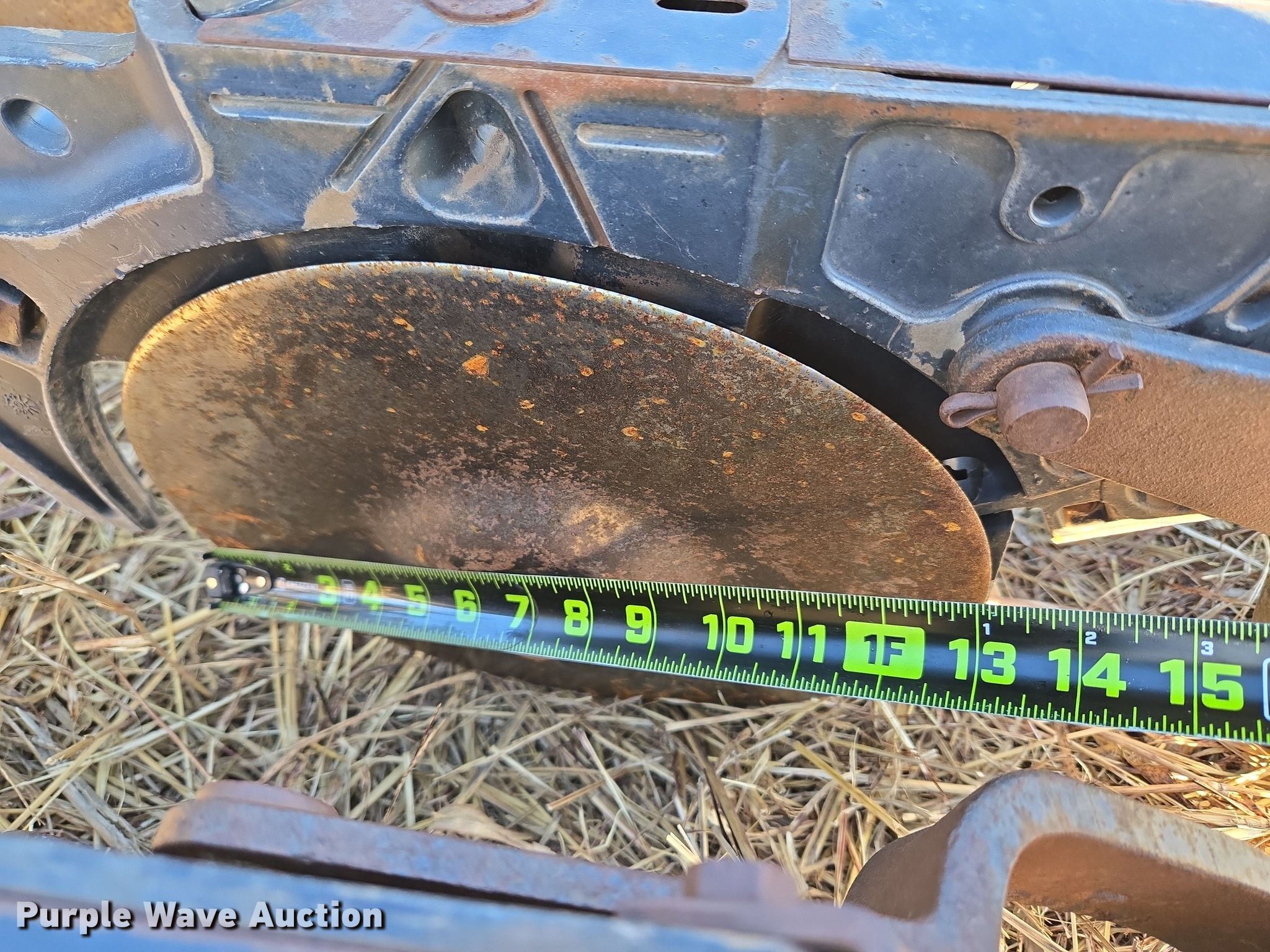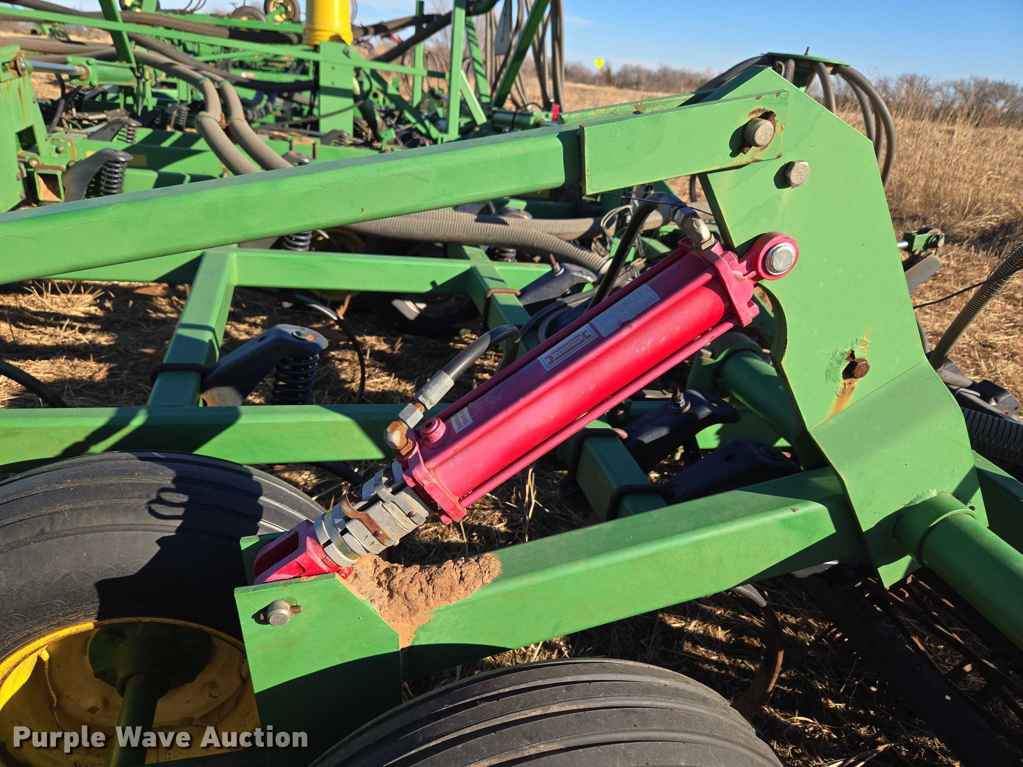 John Deere 730 air seeder. Width: 37', Row units: 58, Row spacing: 7.5", Serial: H00730X680105. Features Frame Fold type: Wing, Row units Down pressure: Hydraulic, Disk openers: Double, Gauge wheels: Single, Closing system: Single Type: Rubber, Fertilizer/ insecticide Fertilizer, Application method: Coulter. Tires Transport tire size: 11L15 Quantity: 8, Drive/ outside tire size: 11L15. Notes Hydraulic cylinder issues, leaks. Hitchcock, OK 73744
