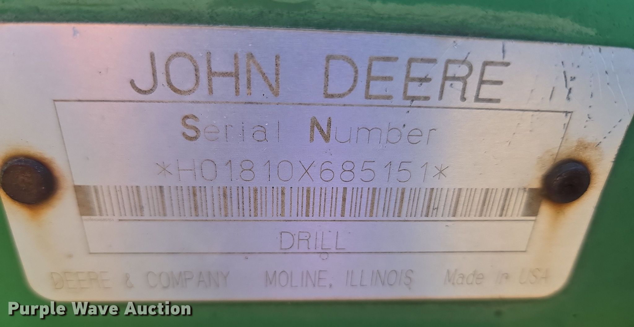 Purple Wave is selling a used Field Cultivator or Sweep Plow in Oklahoma. This item is a John Deere 1810 field cultivator with the following: Overall width: 52', Serial: H01810X685151