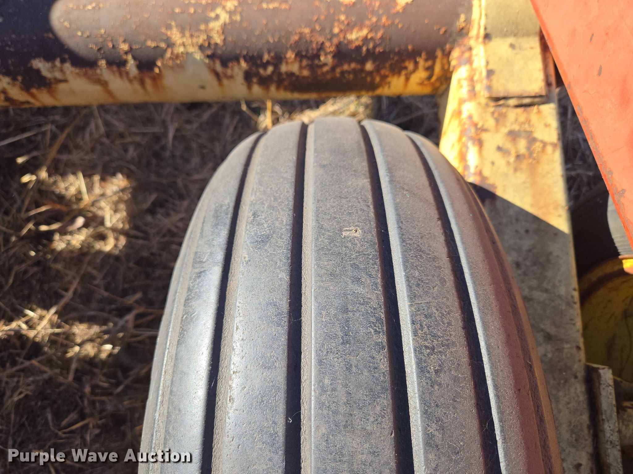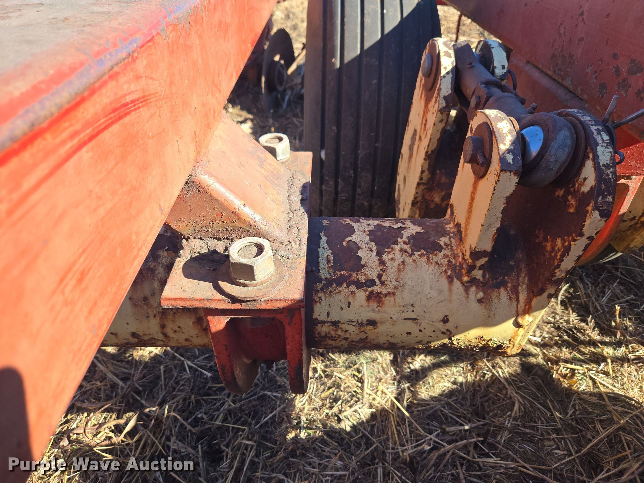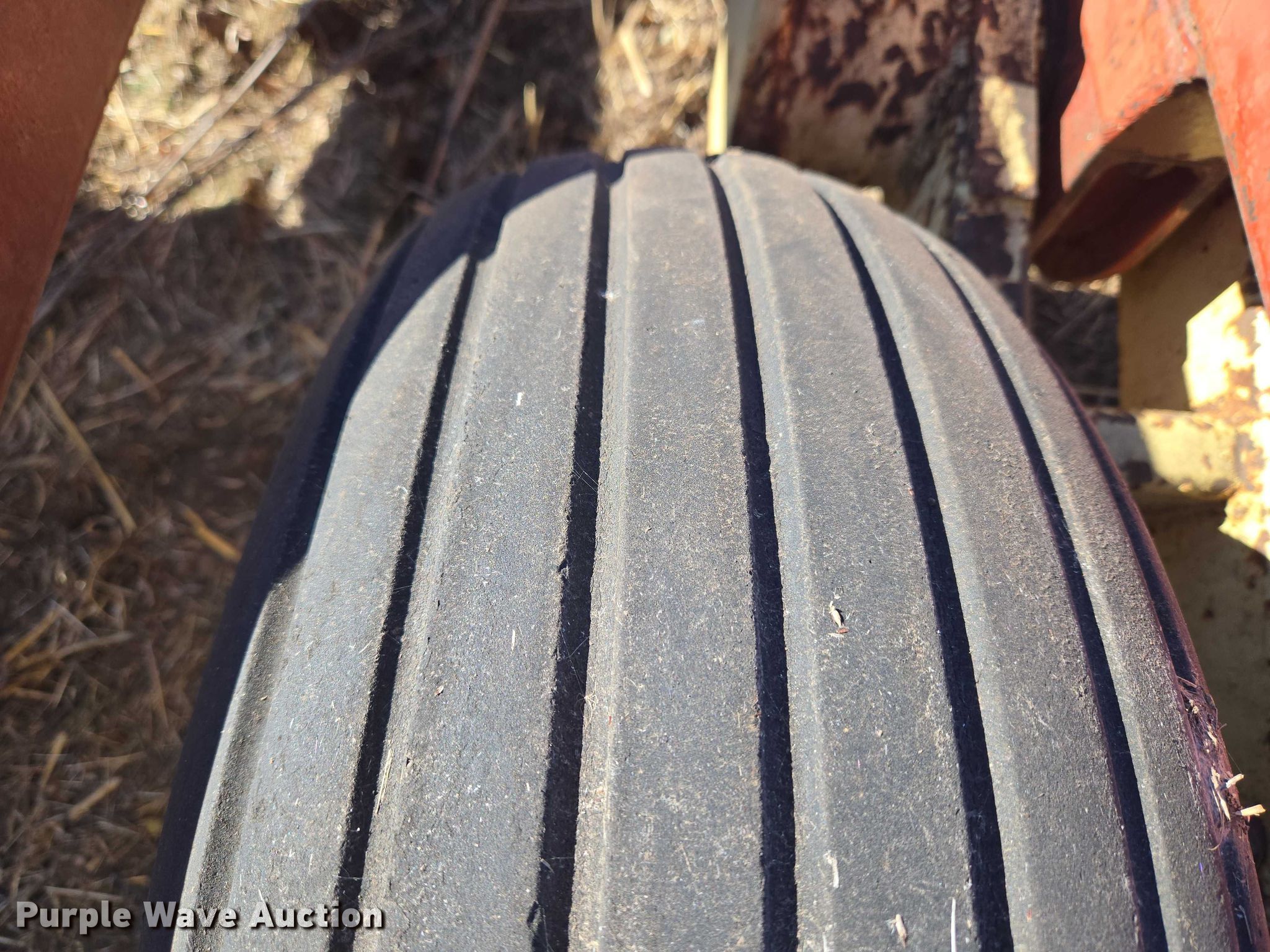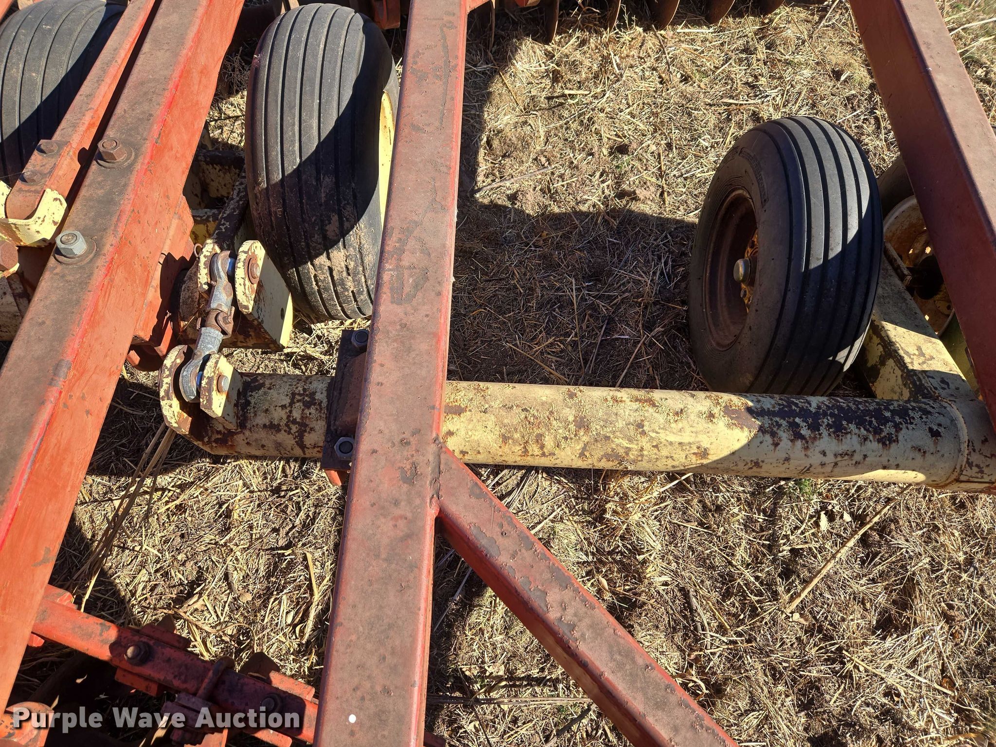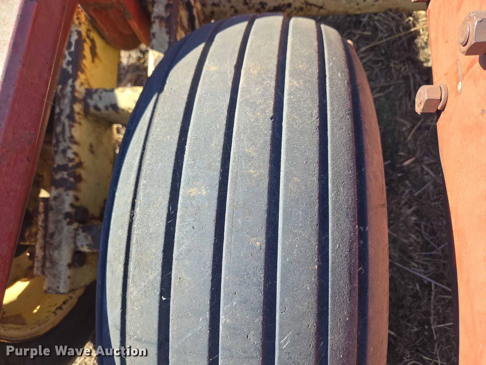 KRAUSE 2413 double off-set disk. Overall width: 25'. Features Front blades Diameter: 16", Spacing: 9", Rear blades Diameter: 16", Spacing: 10", Disk scrapers, Operation Hydraulic lift, Hydraulic fold, Leveler: Hydraulic. Tires Tire size: 11L1512.5-15. Notes Tires flat, Hydraulic leak. Hitchcock, OK 73744
