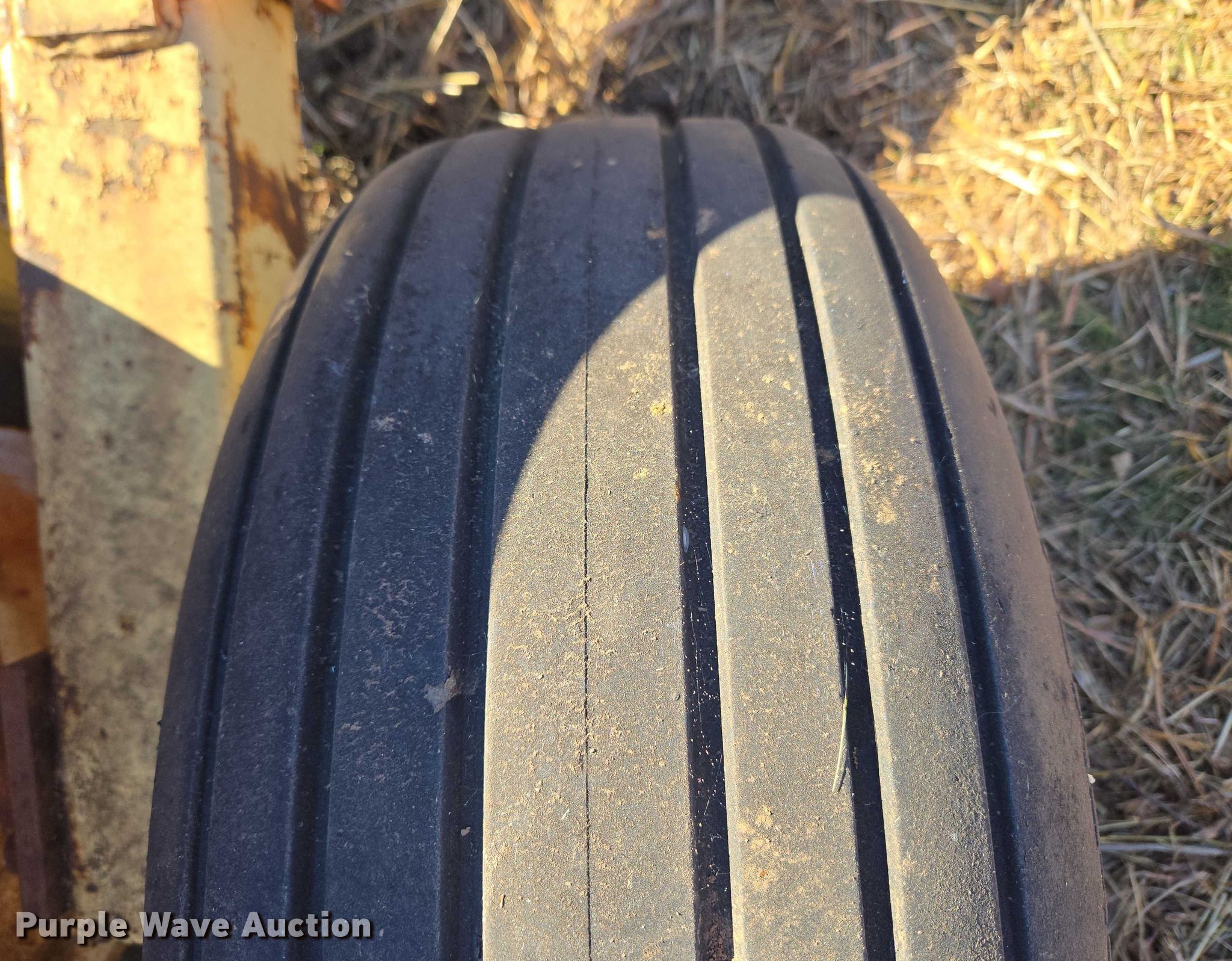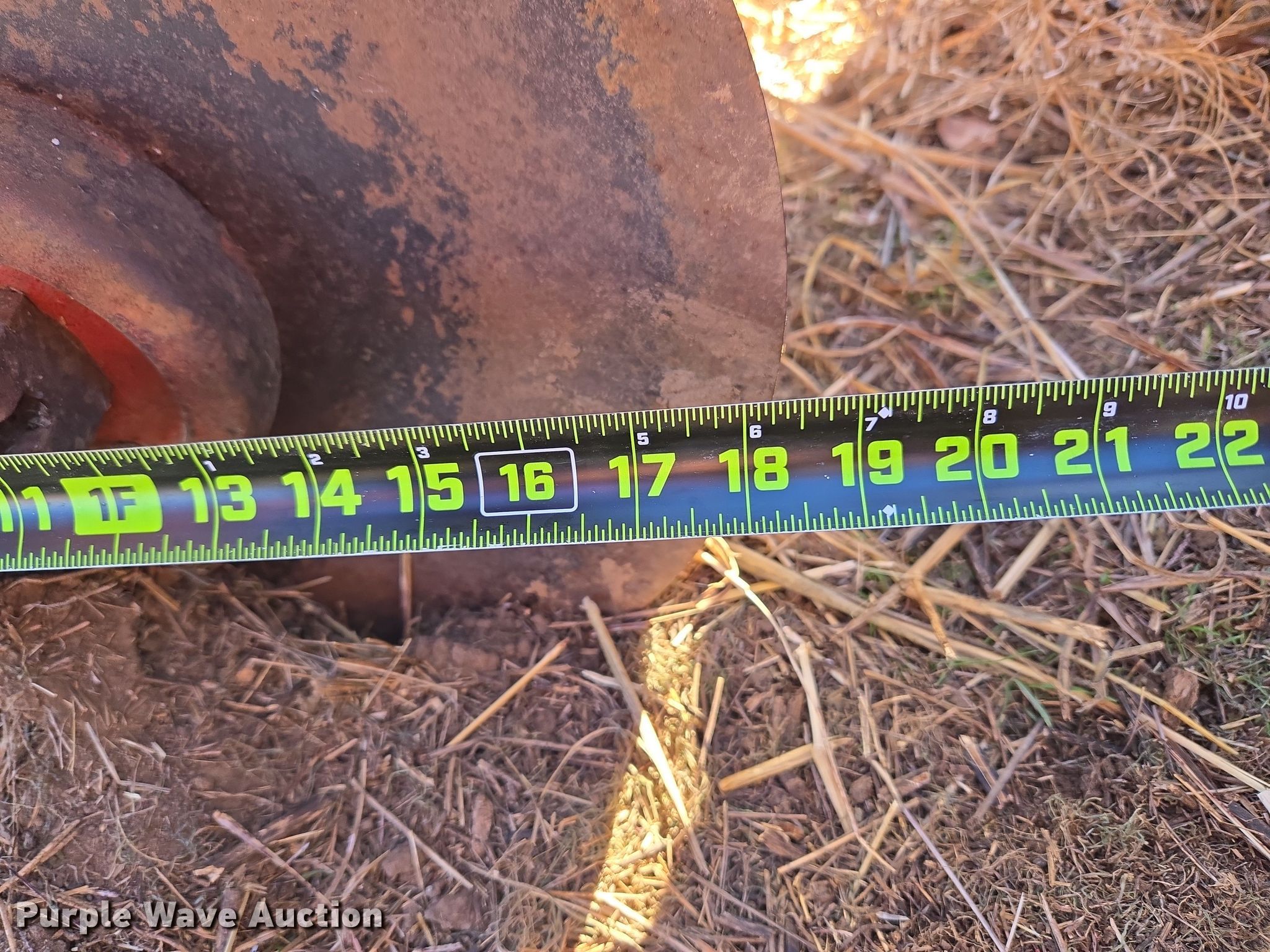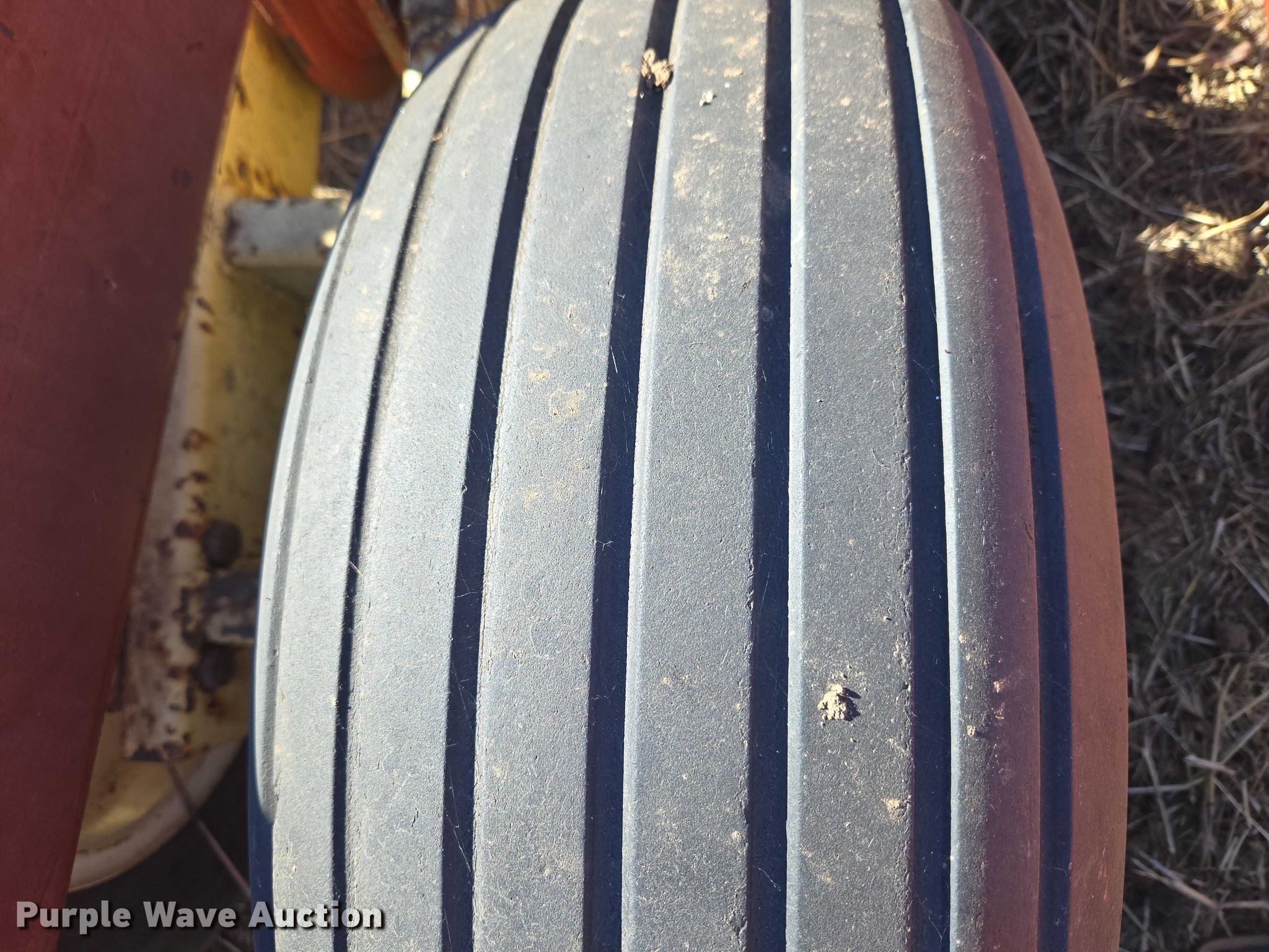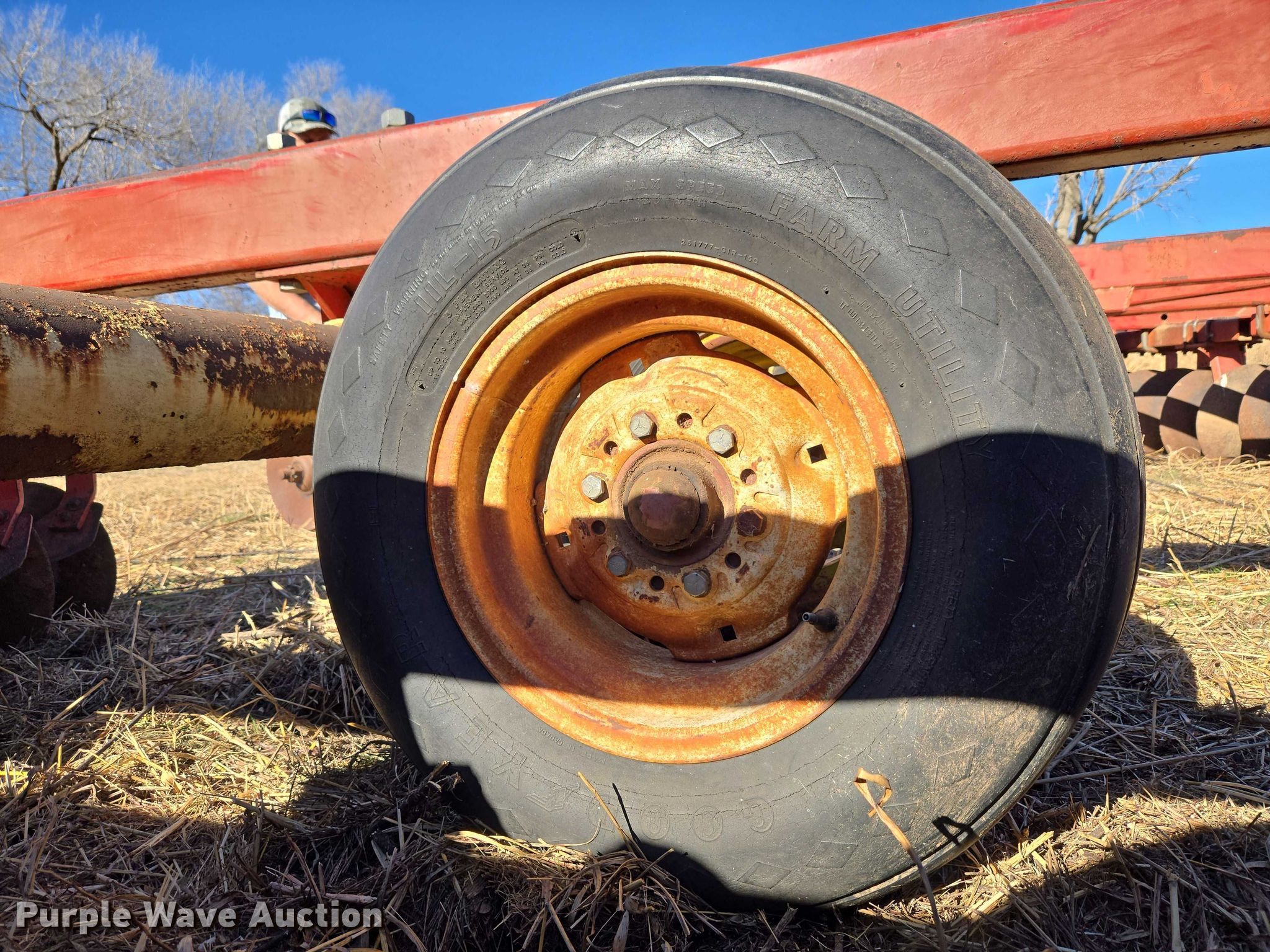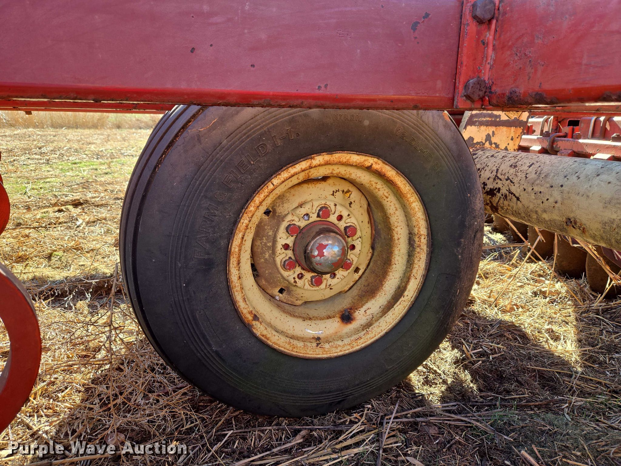 KRAUSE 2413 double off-set disk. Overall width: 25'. Features Front blades Diameter: 16", Spacing: 9", Rear blades Diameter: 16", Spacing: 10", Disk scrapers, Operation Hydraulic lift, Hydraulic fold, Leveler: Hydraulic. Tires Tire size: 11L1512.5-15. Notes Tires flat, Hydraulic leak. Hitchcock, OK 73744