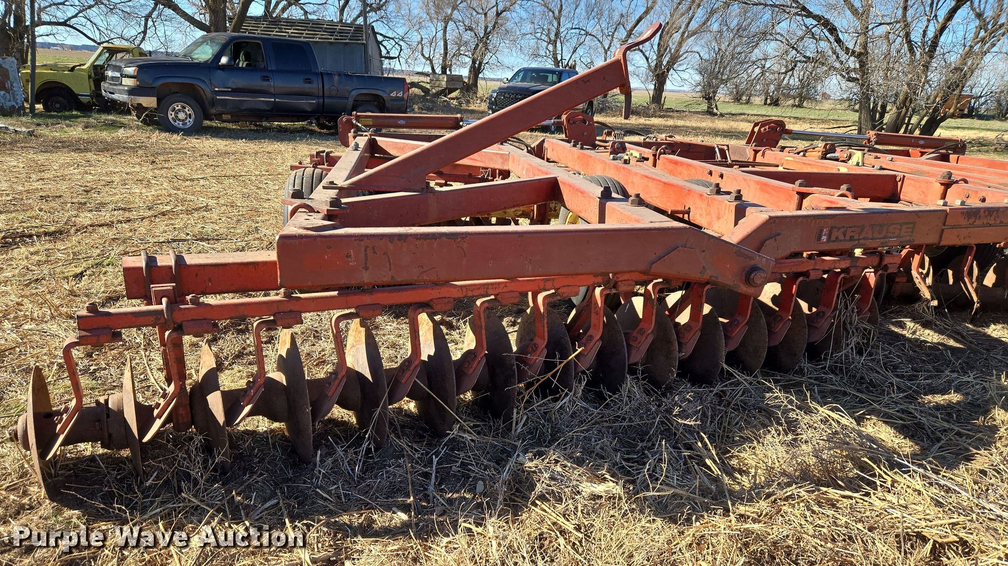 Purple Wave is selling a used Disk in Oklahoma. This item is a KRAUSE 2413 double off-set disk with the following: Overall width: 25'