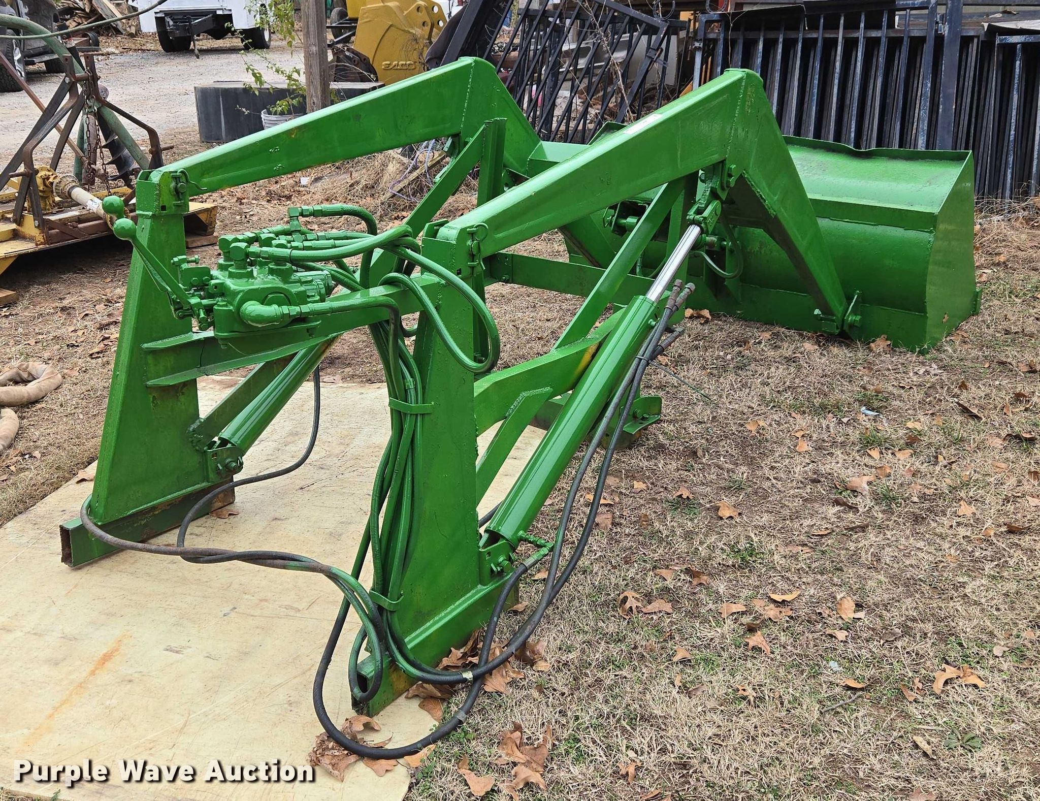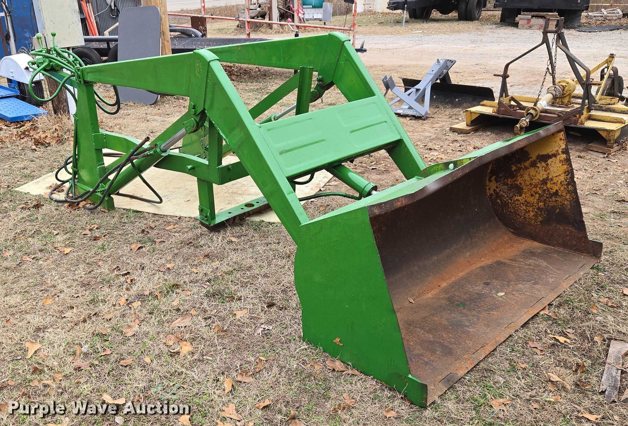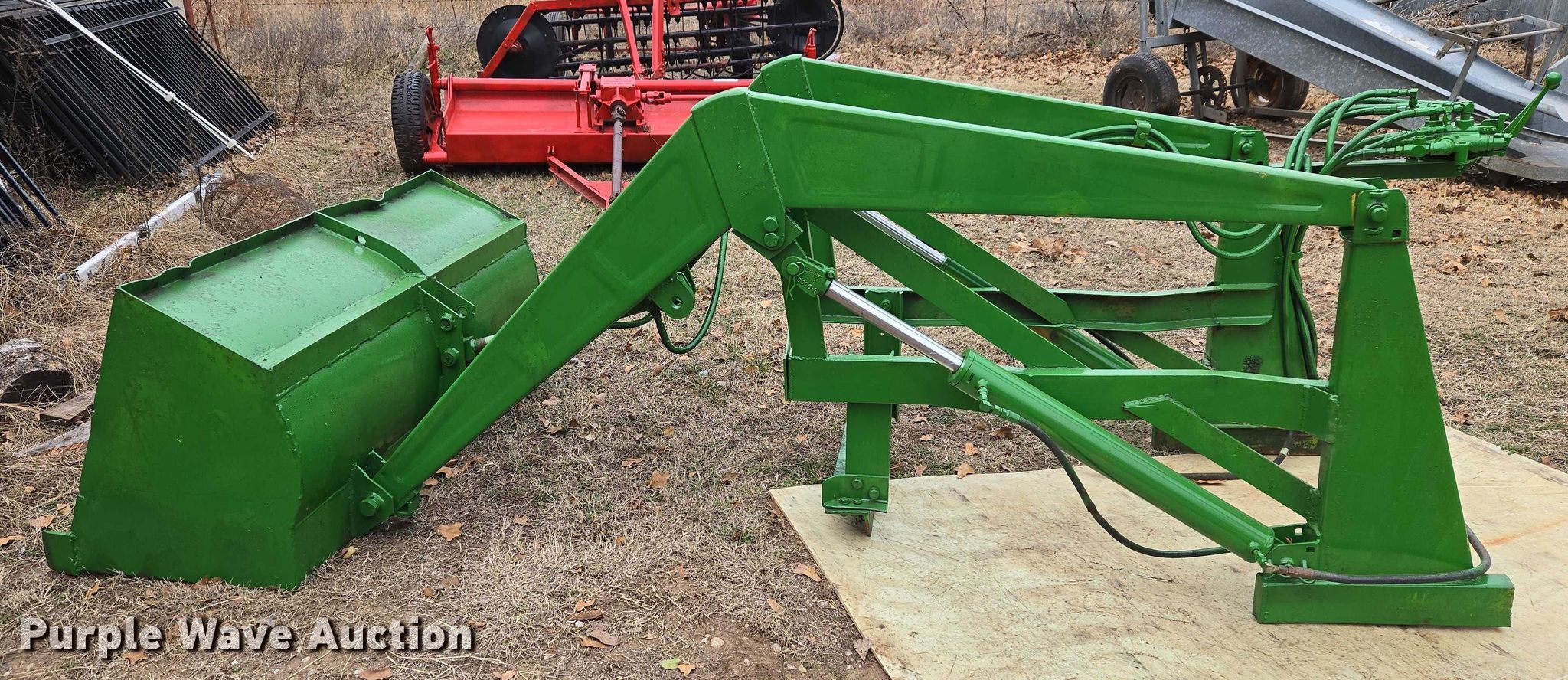 Purple Wave is selling a used Ag Tractor Loader or Attach. in Oklahoma. This item is a Loader bucket with the following: Controls: Two lever, Bucket, Width: 5'