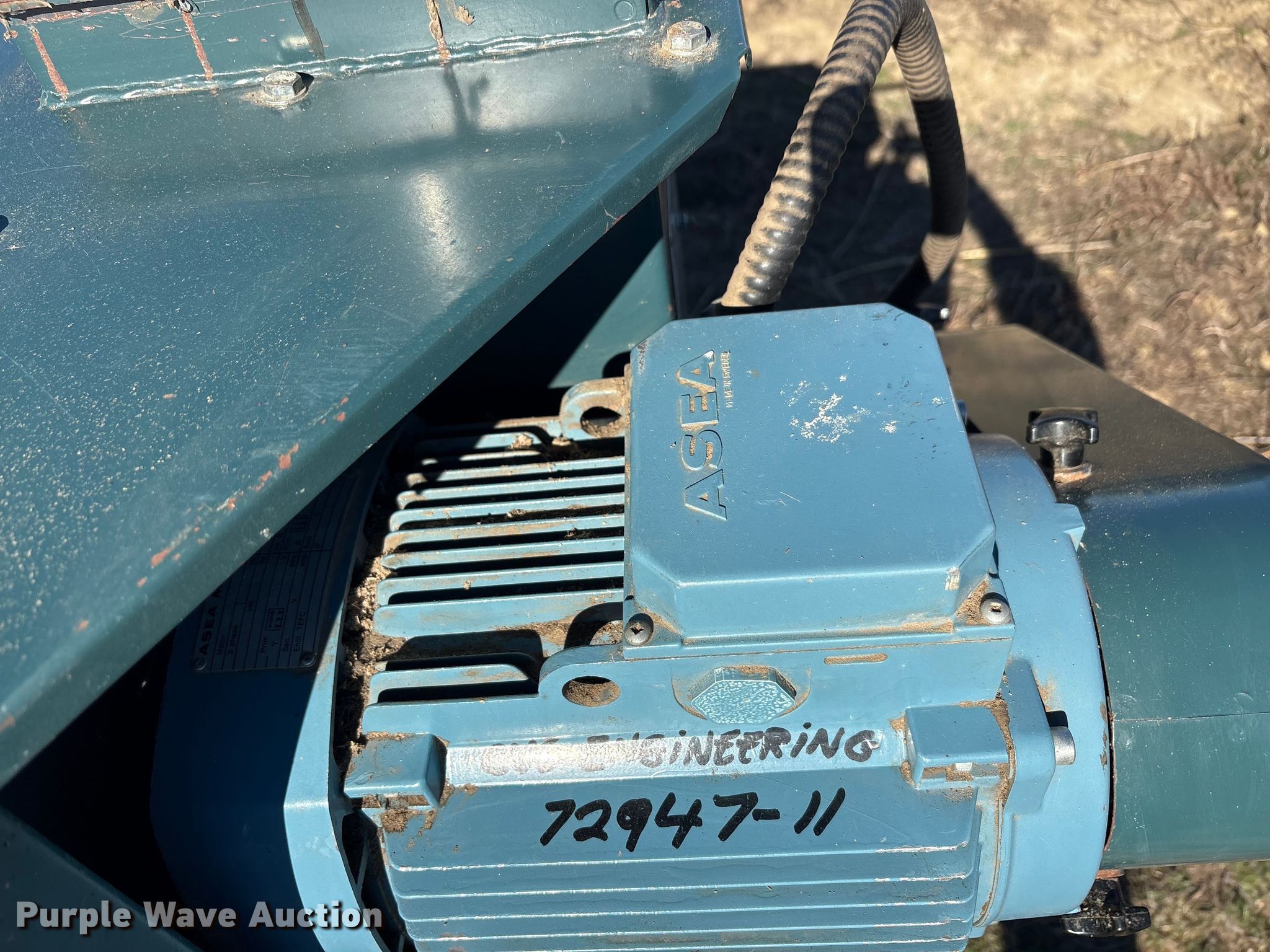 Delta Cimbra Unigrain seed cleaner. Serial: 3048. Dimensions Overall Length: 80", Width: 34", Interior Length: 56". Electric Motor Asea motors MBT132S Serial: 7560823, HP: 8, kW: 6, Volts: 440/480, Phase: Three. Features Top ports: 6", Bottom discharges: 5". Delta Ag, LLC. Ben Franklin, TX 75415