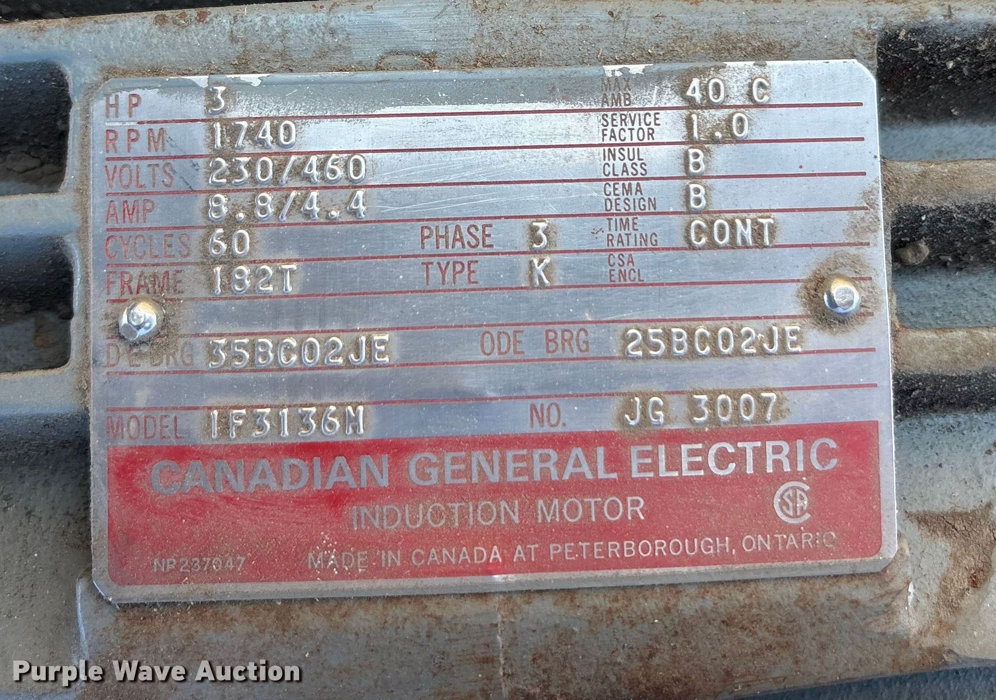 Hart. Carter Disc Separator 2527 seed separator. Serial: W131. Dimensions Overall Length: 94", Width: 39", Interior Length: 3'. Electric Motor Canadian general 1F3136M Serial: JH3007, HP: 3, Volts: 230/460. Features Top feed: 7", Discharge side: 6". Delta Ag, LLC. Ben Franklin, TX 75415