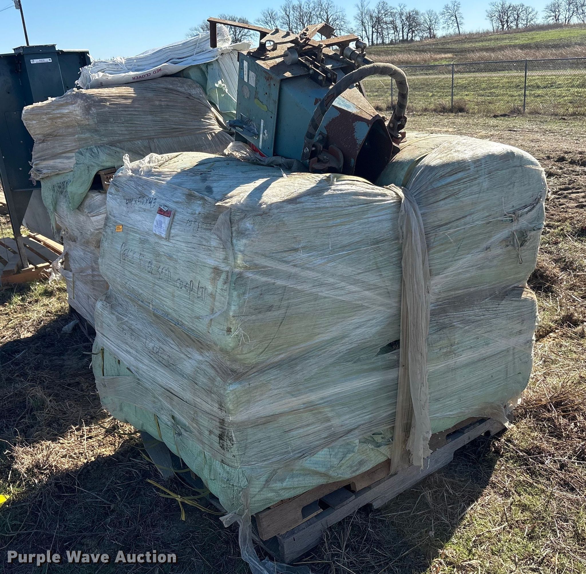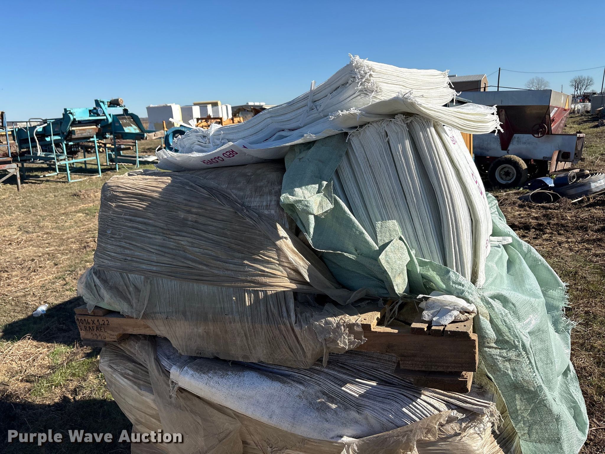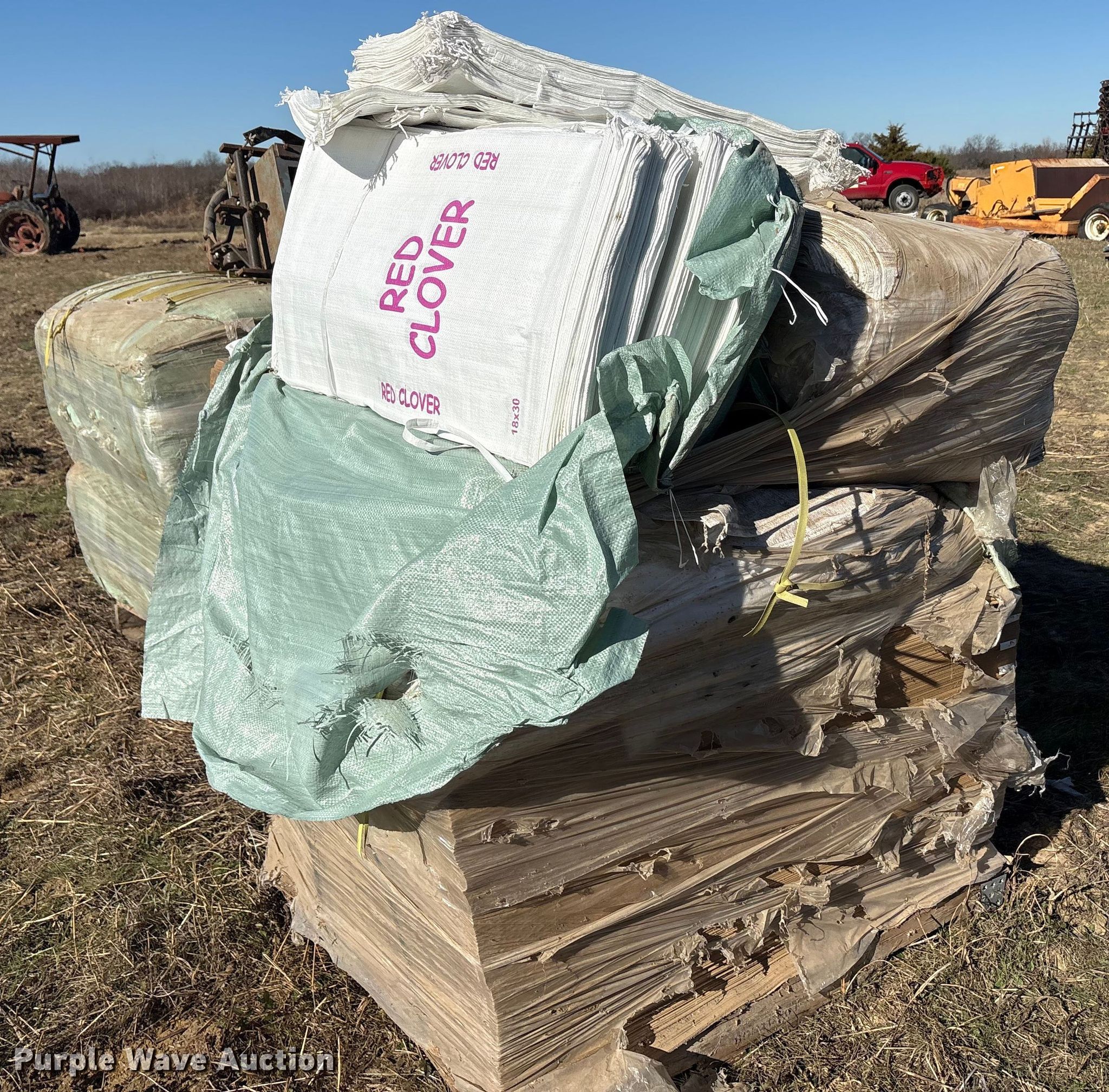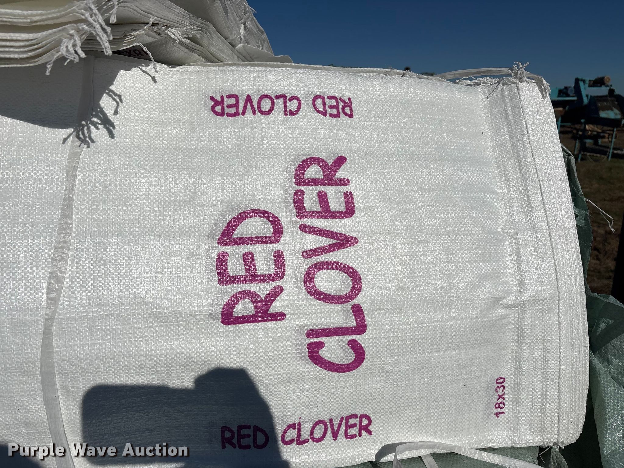 Purple Wave is selling a used Ag Equip. Other in Texas. This item is a (3) pallets of seed bagger and bags with the following: Pallet, 6000 tubed polypropylene bags, Size: 26.0x40.0, Pallet of red clover, Size: 18x30, (3) bundles of 7000 seed bags, Size: 30X40-12x12, Pallet, (4) bundles