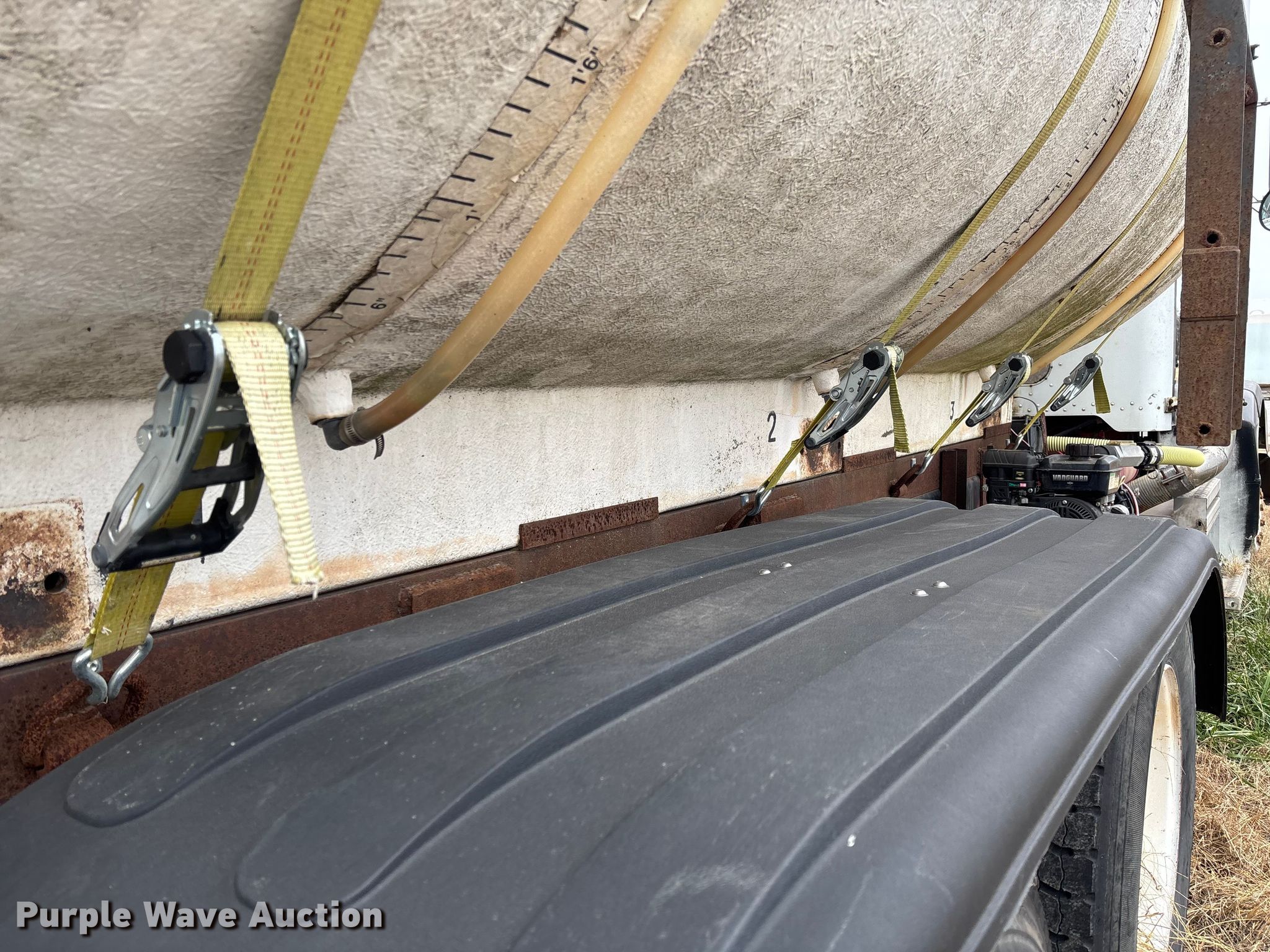 Purple Wave is selling a used Tanks in Oklahoma. This item is a Water tank with the following: Capacity: 3,000 gallons, 13' 6" L x 7 '8" W x 5' H, Pump missing, Will be removed from truck prior to auction