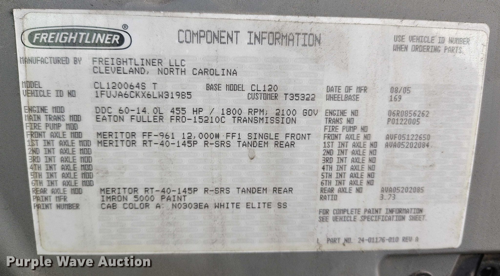 - VIN: 1FUJA6CKX6LW31985