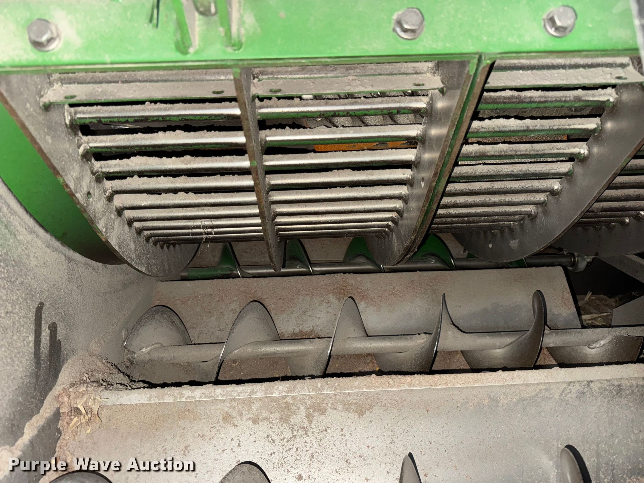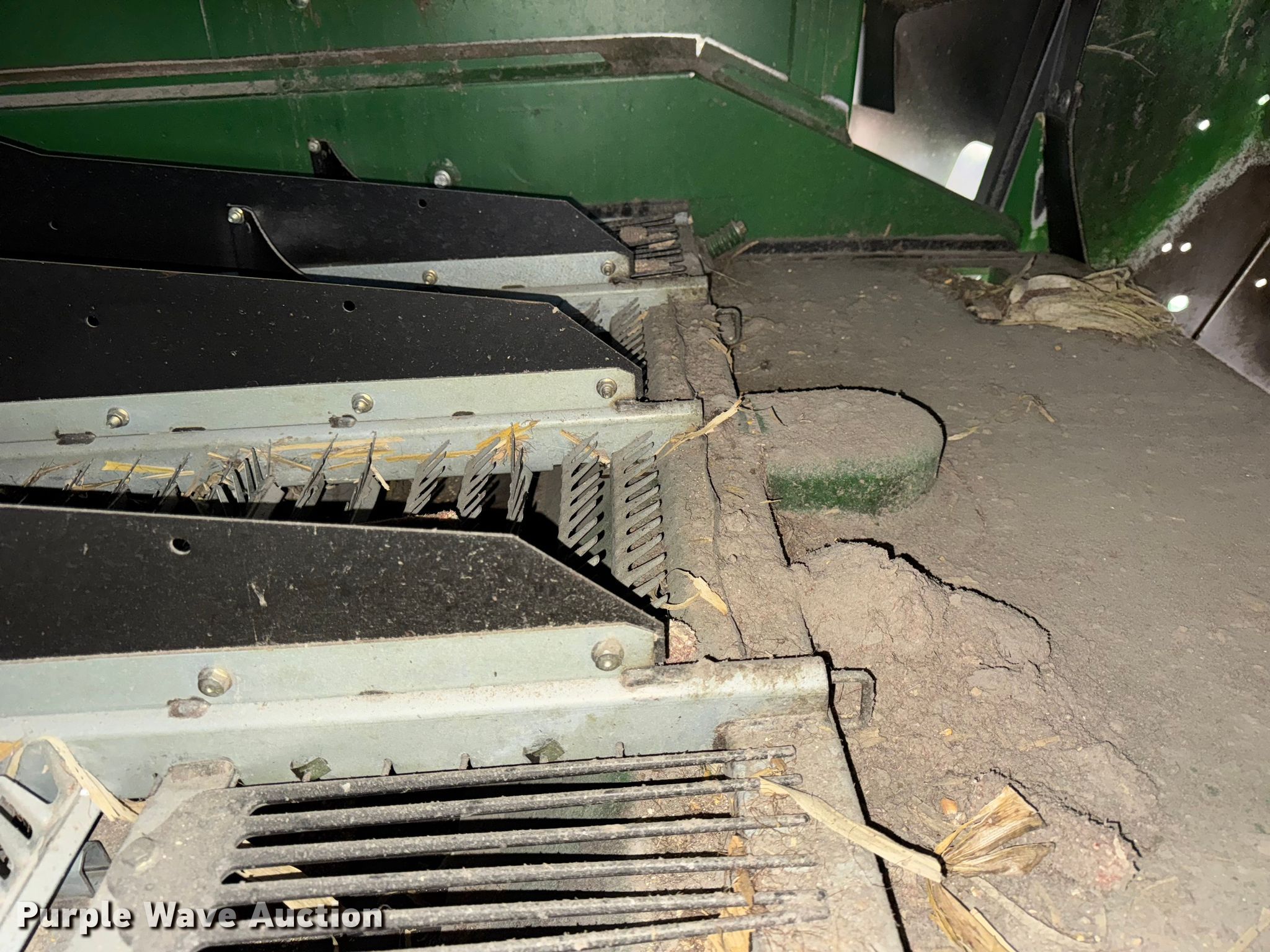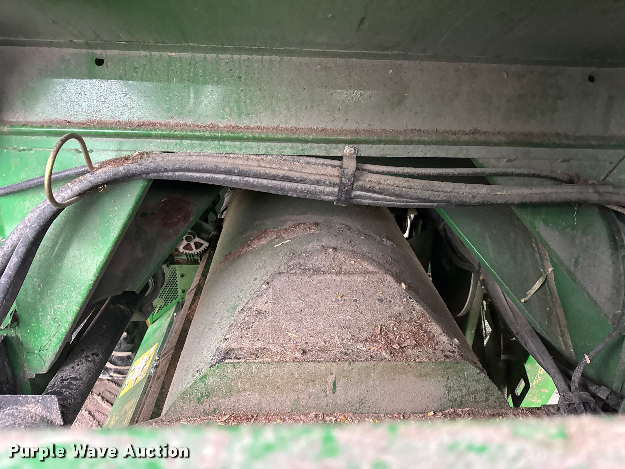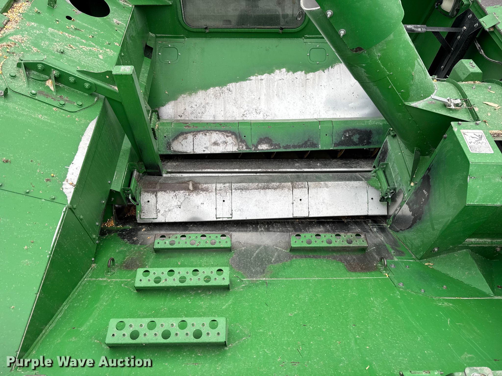 2006 John Deere 9760 STS combine. Engine hours: 3,984 on meter, Separator hours: 2,660 on meter, Serial: H09760S717036, Unit #: 97028825. Engine John Deere 6090HH005, Displacement: 9.0L, Cylinders: 6, Fuel type: Diesel. Transmission Hydrostatic. Operators station AC, Heat, Display John Deere Greenstar Brown Box. Features Single point header coupler, Feederhouse: Lateral tilt, Variable speed, Reverser, Concaves: Round, Straw chopper, Power tailboard, Bin: Extensions, Unloading auger length: 22' 6". Tires Front: 520/85R42, Rear: 28L-26, Duals. Notes Auger damaged, bent, Collision damage, Coolant leak. Insurance Salvage. Beecher, IL 60401