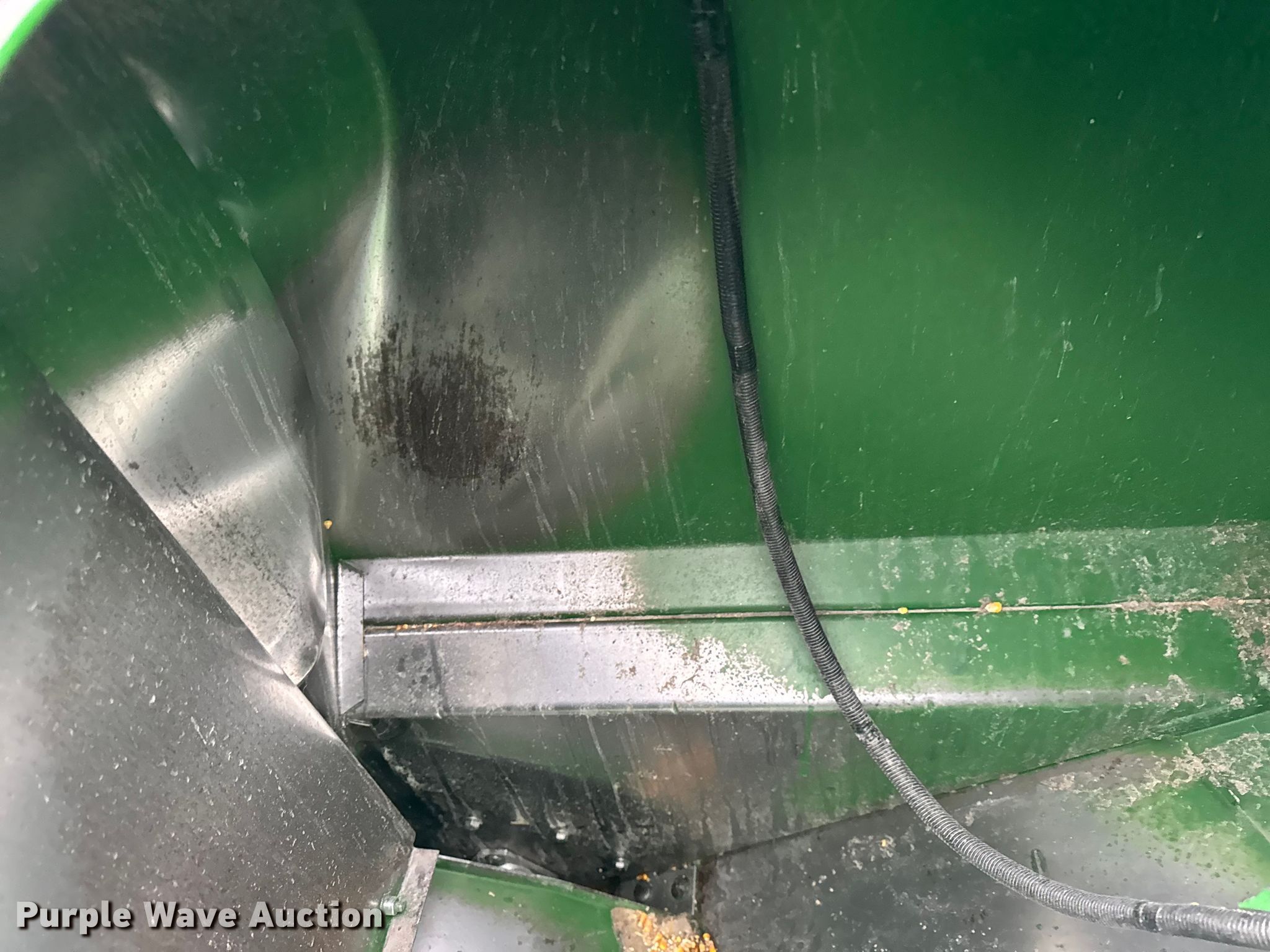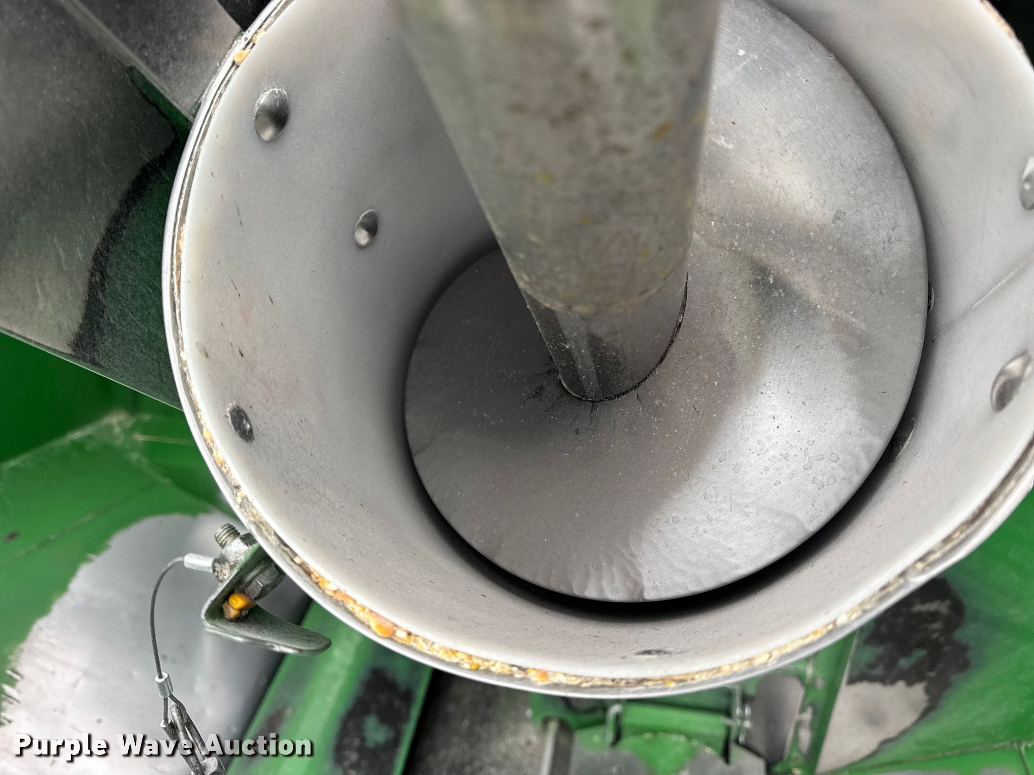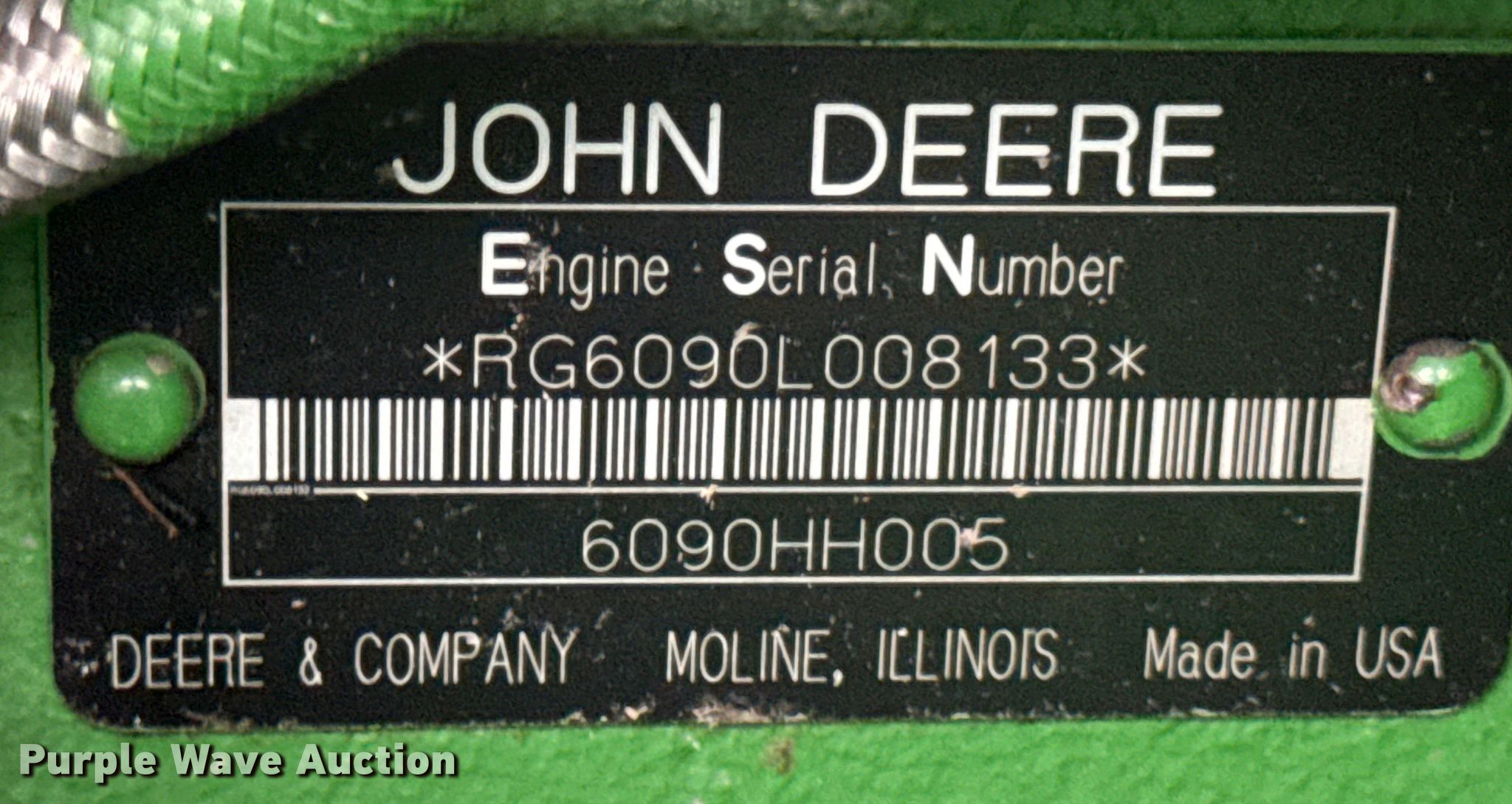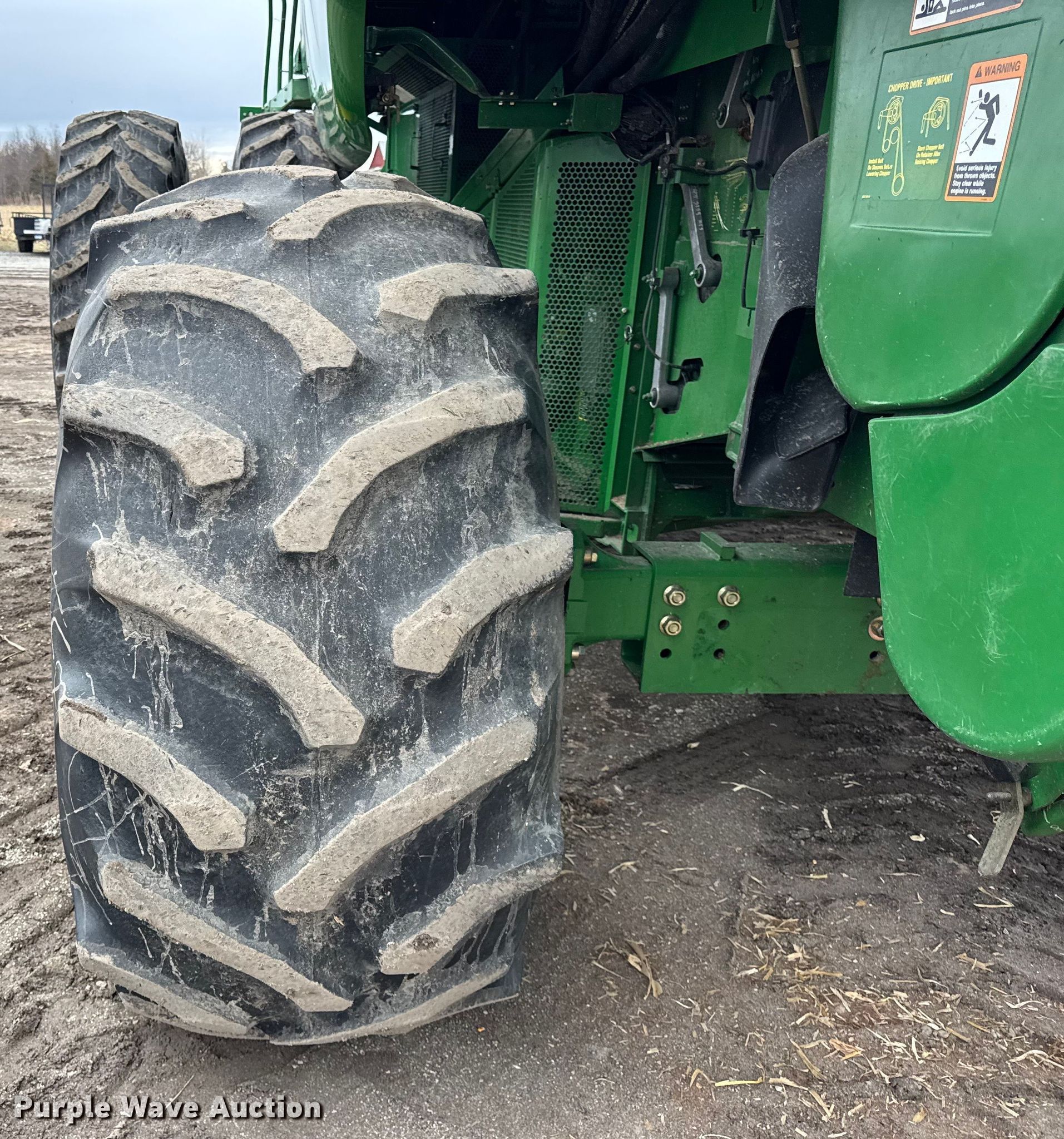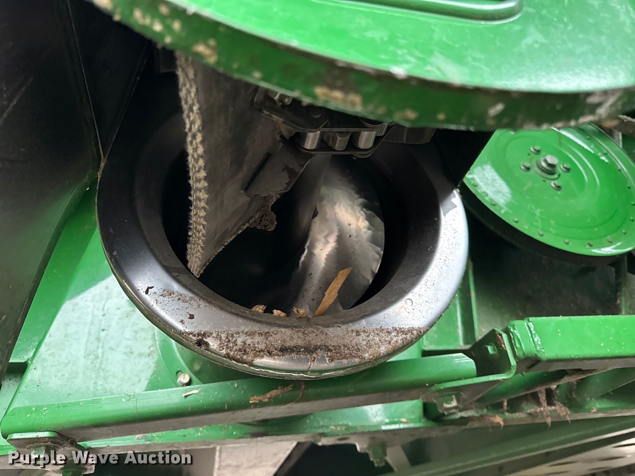 2006 John Deere 9760 STS combine. Engine hours: 3,984 on meter, Separator hours: 2,660 on meter, Serial: H09760S717036, Unit #: 97028825. Engine John Deere 6090HH005, Displacement: 9.0L, Cylinders: 6, Fuel type: Diesel. Transmission Hydrostatic. Operators station AC, Heat, Display John Deere Greenstar Brown Box. Features Single point header coupler, Feederhouse: Lateral tilt, Variable speed, Reverser, Concaves: Round, Straw chopper, Power tailboard, Bin: Extensions, Unloading auger length: 22' 6". Tires Front: 520/85R42, Rear: 28L-26, Duals. Notes Auger damaged, bent, Collision damage, Coolant leak. Insurance Salvage. Beecher, IL 60401