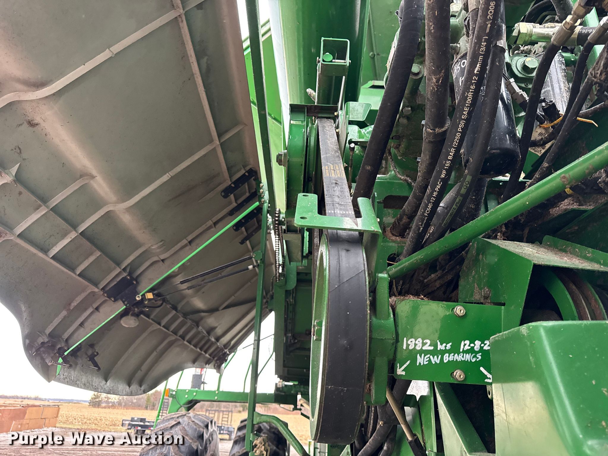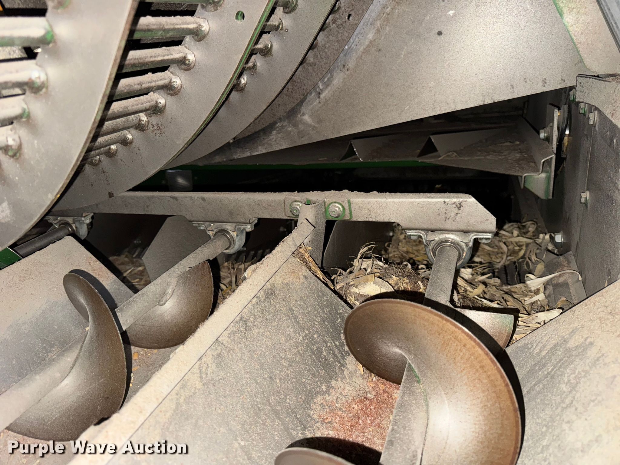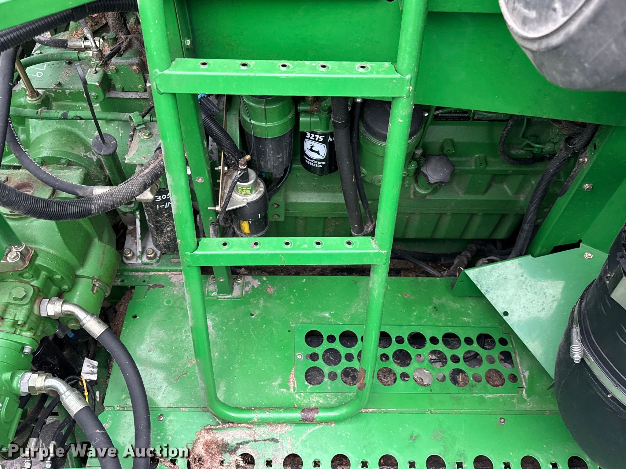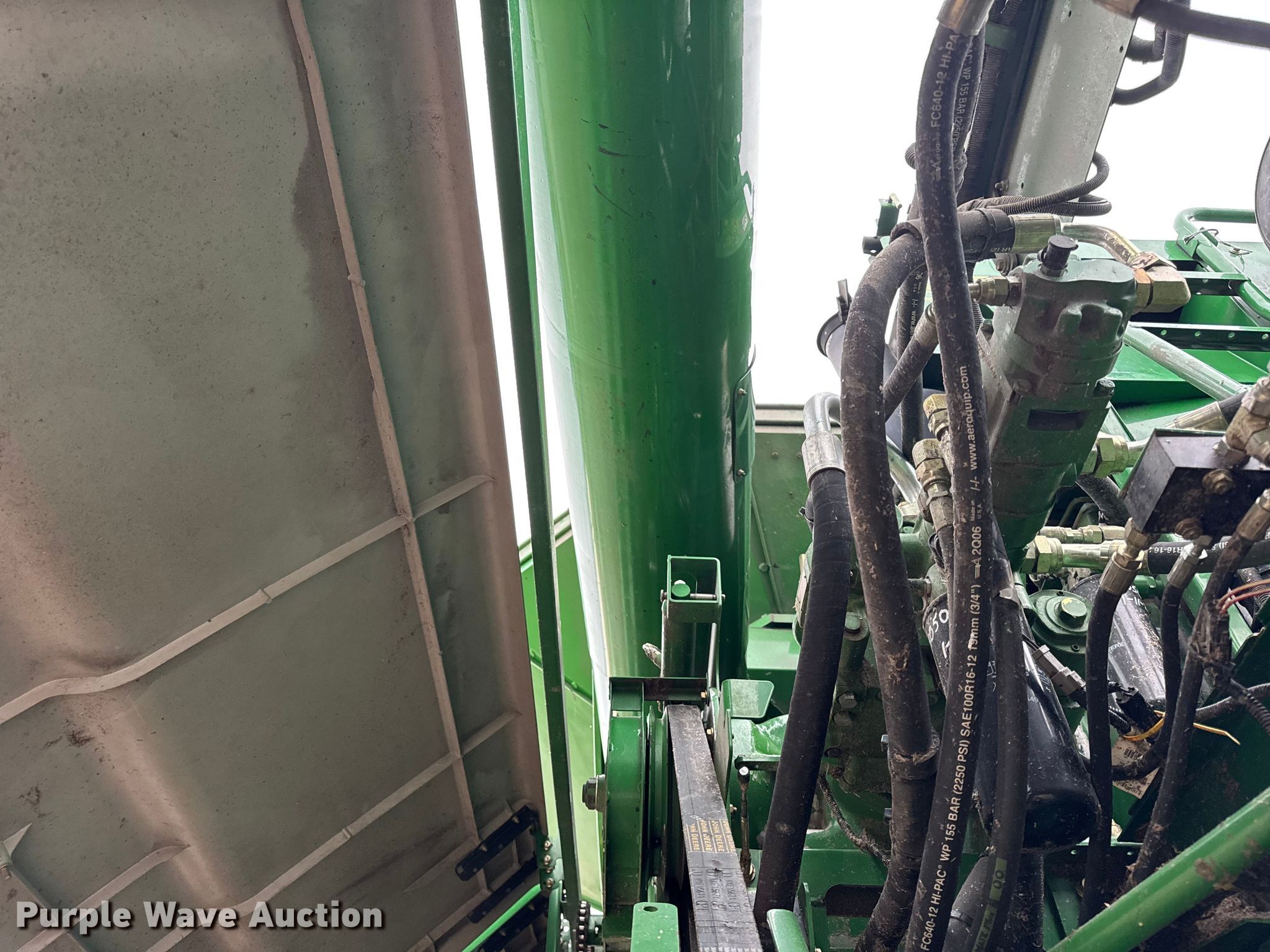 2006 John Deere 9760 STS combine. Engine hours: 3,984 on meter, Separator hours: 2,660 on meter, Serial: H09760S717036, Unit #: 97028825. Engine John Deere 6090HH005, Displacement: 9.0L, Cylinders: 6, Fuel type: Diesel. Transmission Hydrostatic. Operators station AC, Heat, Display John Deere Greenstar Brown Box. Features Single point header coupler, Feederhouse: Lateral tilt, Variable speed, Reverser, Concaves: Round, Straw chopper, Power tailboard, Bin: Extensions, Unloading auger length: 22' 6". Tires Front: 520/85R42, Rear: 28L-26, Duals. Notes Auger damaged, bent, Collision damage, Coolant leak. Insurance Salvage. Beecher, IL 60401