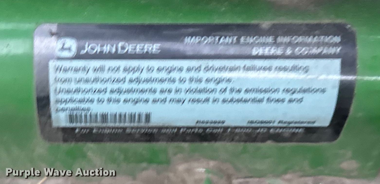 2012 John Deere S680S STS combine. Hours: Unknown, Serial: 1H0S680SCC0745741, Unit #: 96956255. Engine John Deere, Cylinders: 6, Fuel type: Diesel. Transmission Hydrostatic. Chassis Differential lock. Operators station AC, Heat, Display, Auto steer. Features Operator manual, Single point header coupler, Feederhouse: Lateral tilt, Reverser, Multi-speed, Concaves: Round, Straw chopper, Power tailboard, Bin: Power folding bin, Unloading auger length: 26'. Tires Front: 650/85R38, Rear: 750/65R26, Duals. Notes Burn damage, Non-operational unit, Driveshaft disconnected. Insurance Salvage. Alexander, IL 62601