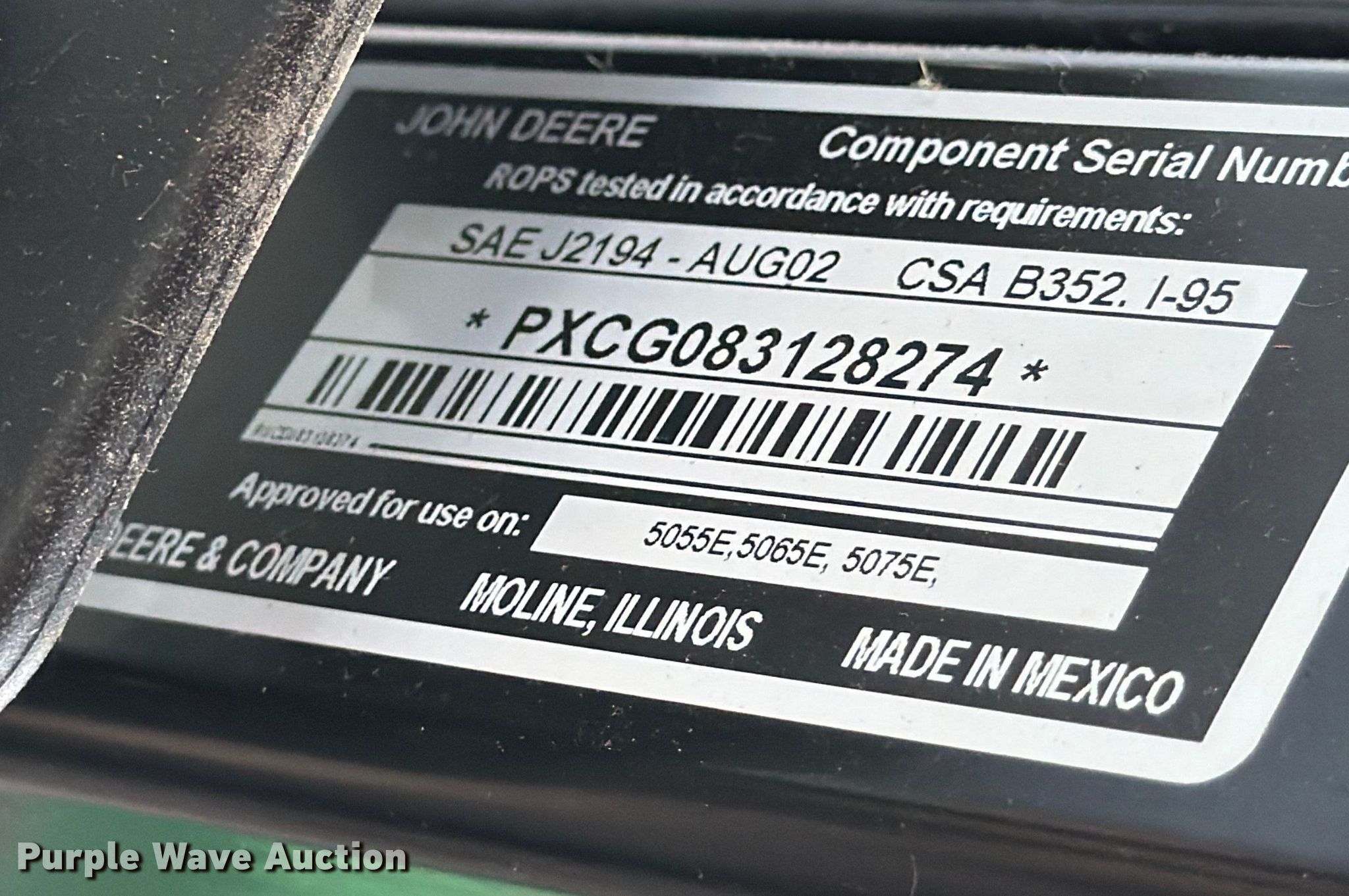 2021 John Deere 5075E MFWD tractor. Hours: 308 on meter, Serial: 1PY5075EHMM414641, Unit #: 92603015. Engine John Deere, Displacement: 2.9L, Cylinders: 3, Fuel type: Diesel. Transmission Synchro, 12F - 12R, Left-hand reverser, Differential lock. Operators station AC, Heat. Features PTO: 540, Three point Top link, Seven pin outlet, Hydraulic remote sets Front: 2, Rear: 1, Loader ready, Loader John Deere 520M, Quick attach, Controls: Joystick, Bucket Width: 75".. Tires Front: 9.5-24, Rear: 16.9-28. Notes Loader removed but included, Jump start required during on-site data collection, Key not included, Rollover damage, Engine partially disassembled Parts may be missing, Tire missing, Wheels damaged, Non-operational unit. Insurance salvage, stored at a secured facility. Please review REQUIRED REMOVAL INSTRUCTIONS. Insurance Salvage. Wilmer, TX 75172