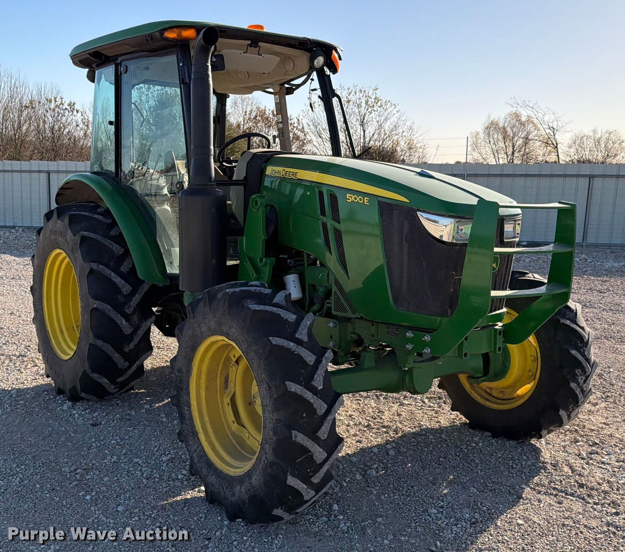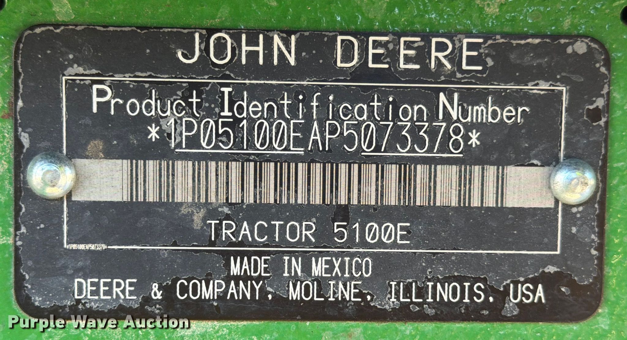 Purple Wave is selling a used Tractor in Texas. This item is a 2023 John Deere 5100E MFWD tractor with the following: Hours: 1,198 on meter, Serial: 1P05100EAP5073378, Unit #: 95650115
