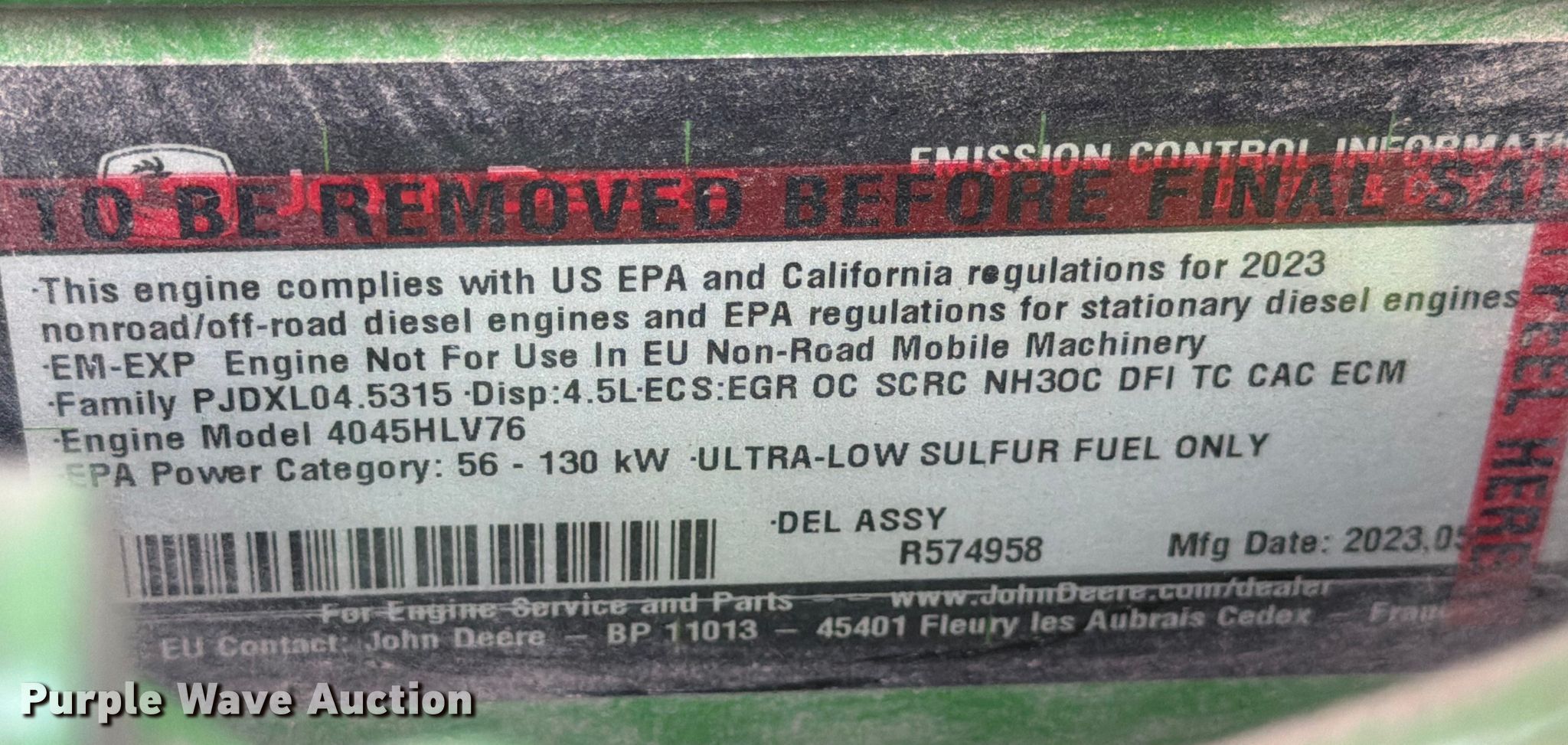2023 John Deere 5100E MFWD tractor. Hours: 1,198 on meter, Serial: 1P05100EAP5073378, Unit #: 95650115. Engine John Deere 4045, Displacement: 4.5L, Cylinders: 4, Fuel type: Diesel. Transmission Synchro, 12F - 12R, Left-hand reverser, Differential lock. Operators station AC, Heat. Features Seven pin outlet, Hydraulic remote sets Front: 2, Rear: 3, Loader ready. Tires Front: 12.4-24, Rear: 18.4-30. Notes Rollover damage, Glass missing, PTO shaft broken off in housing. Insurance salvage, stored at a secured facility. Please review REQUIRED REMOVAL INSTRUCTIONS. Insurance Salvage. Temple, TX 76501