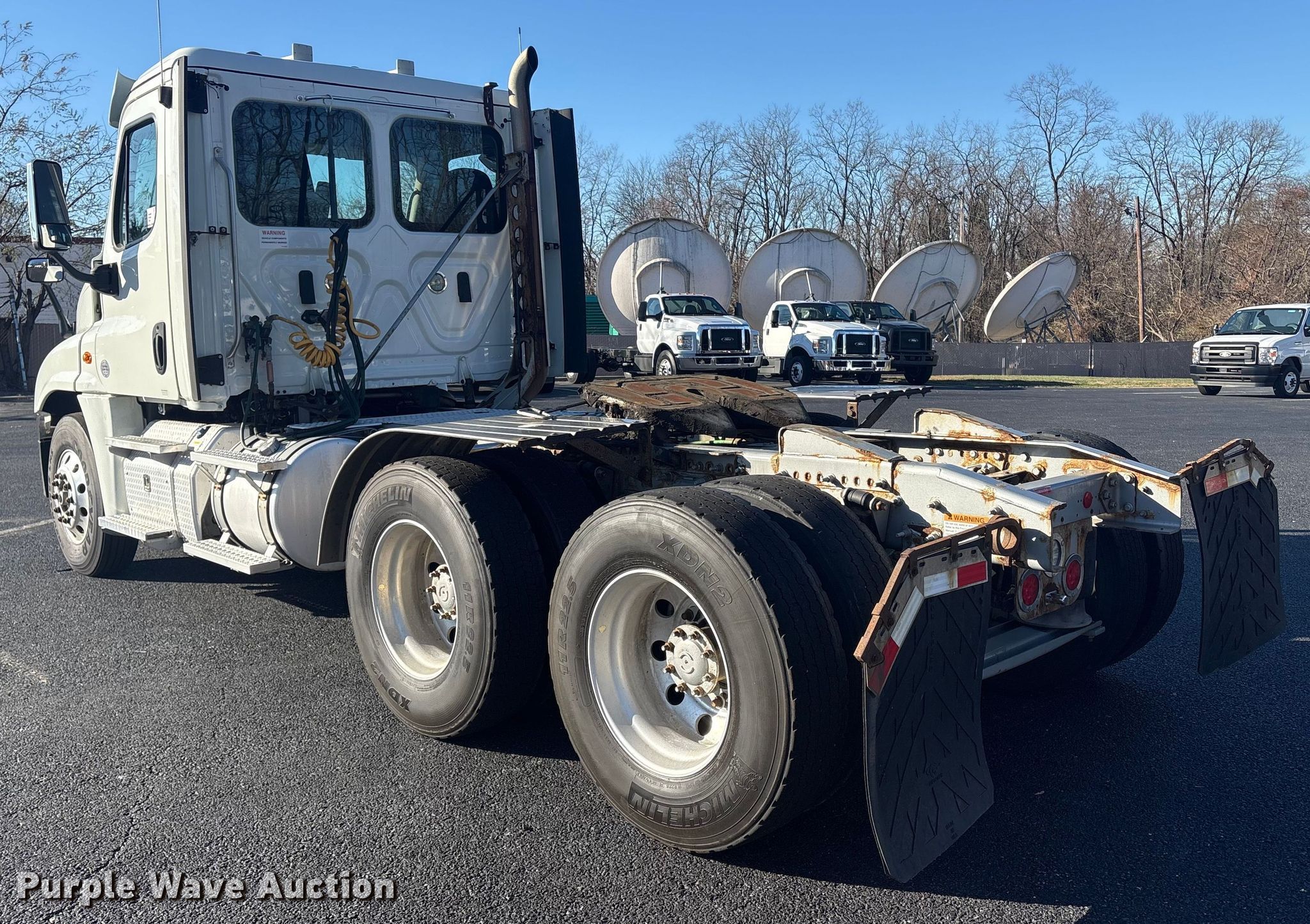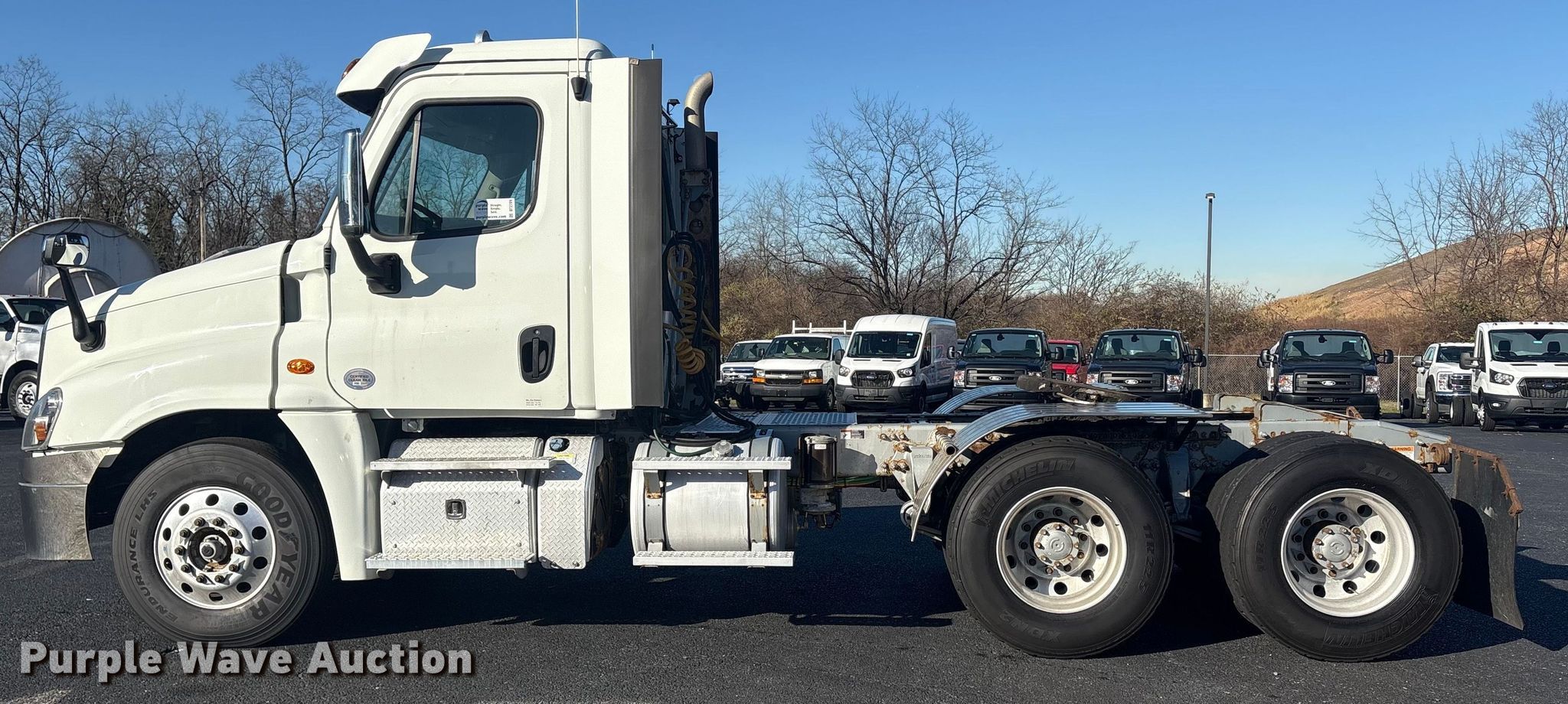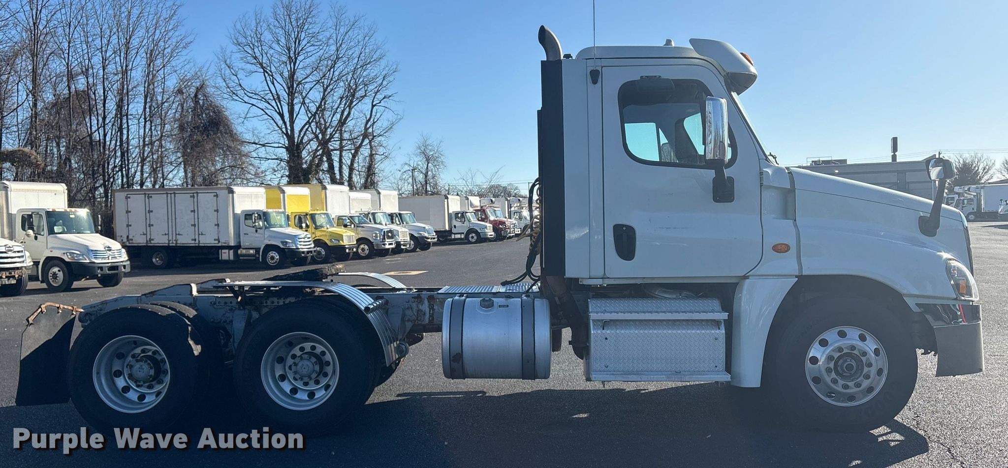 2019 Freightliner Cascadia semi truck. Miles: 693,457 on odometer, VIN: 3AKJGEDR0KSKU0699. Engine Detroit Diesel DD15, Displacement: 14.8L, Cylinders: 6, Fuel type: Diesel, HP: 505, Engine brake. Transmission Detroit Diesel DT12, Automated manual. Chassis Axles: Tandem, Gear ratio: 3.25, Differential lock: Inter-axle, Full, Suspension: Air Dump valves, Brakes: Air, GVWR: 53,220 lbs FAWR: 13,220 lbs, IAWR: 20,000 lbs, RAWR: 20,000 lbs. Interior AC, Heat, Heated mirrors, Power windows, Power locks, Cruise control, Air ride cab. Features Fifth wheel type: Fixed, Fuel tank: Dual. Tires Size: 11R22.5. Titles will be distributed after confirmation of payment and removal.. Delaware buyers are responsible for paying the required Delaware document fee to Purple Wave at the time of purchase. The Delaware document fee is calculated at $13.75 up to $500.00 purchase price. Additional $5.25 added for every $100.00 of the purchase price above $500.00.. Indiana title. Title distribution may be delayed up to 30 days from verification of funds. Bayshore Truck Center. New Castle, DE 19720