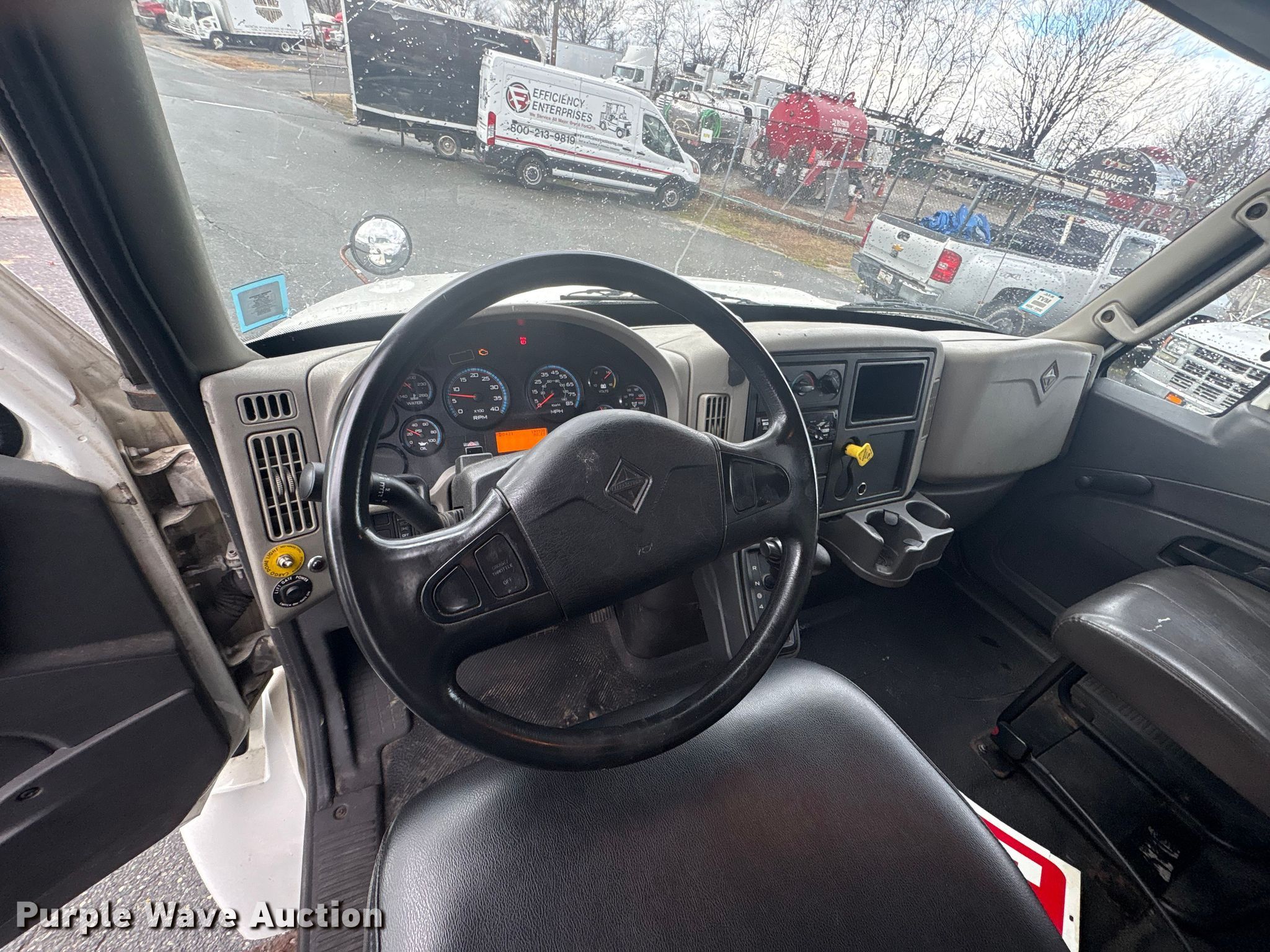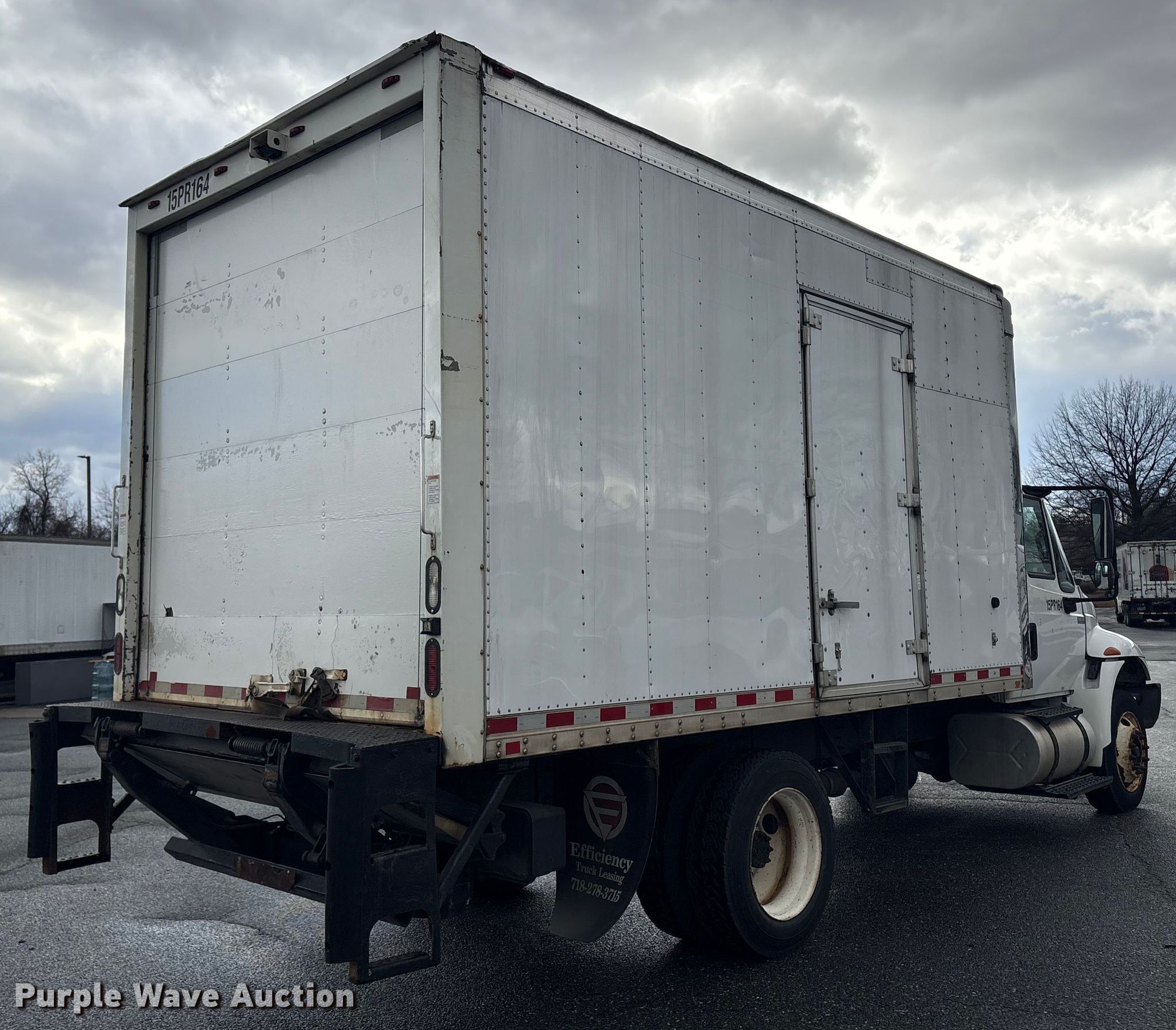 2015 International 4300 box truck. Miles: 199,938 on odometer, Hours: 9,207 on meter, VIN: 1HTMMAAL9FH732032. Engine International, Displacement: 7.64L, Cylinders: 6, Fuel type: Diesel. Transmission Automatic. Chassis Axles: Single, Suspension: Air, Brakes: Air, GVWR: 26,000 lbs. Interior AC, Heat, Cruise control, Backup camera. Features Bed Box bed, Morgan GVSD09716096, Serial: MPM28279-001, Length: 16', Width: 96", Height: 102", Floor: Wood, End gate lift, Maxon. Tires Size: 255/70R22.5. Notes Dash warning indicator: Check engine. New York title. Title distribution may be delayed up to 30 days from verification of funds. Efficiency Enterprises. Baltimore, MD 21226