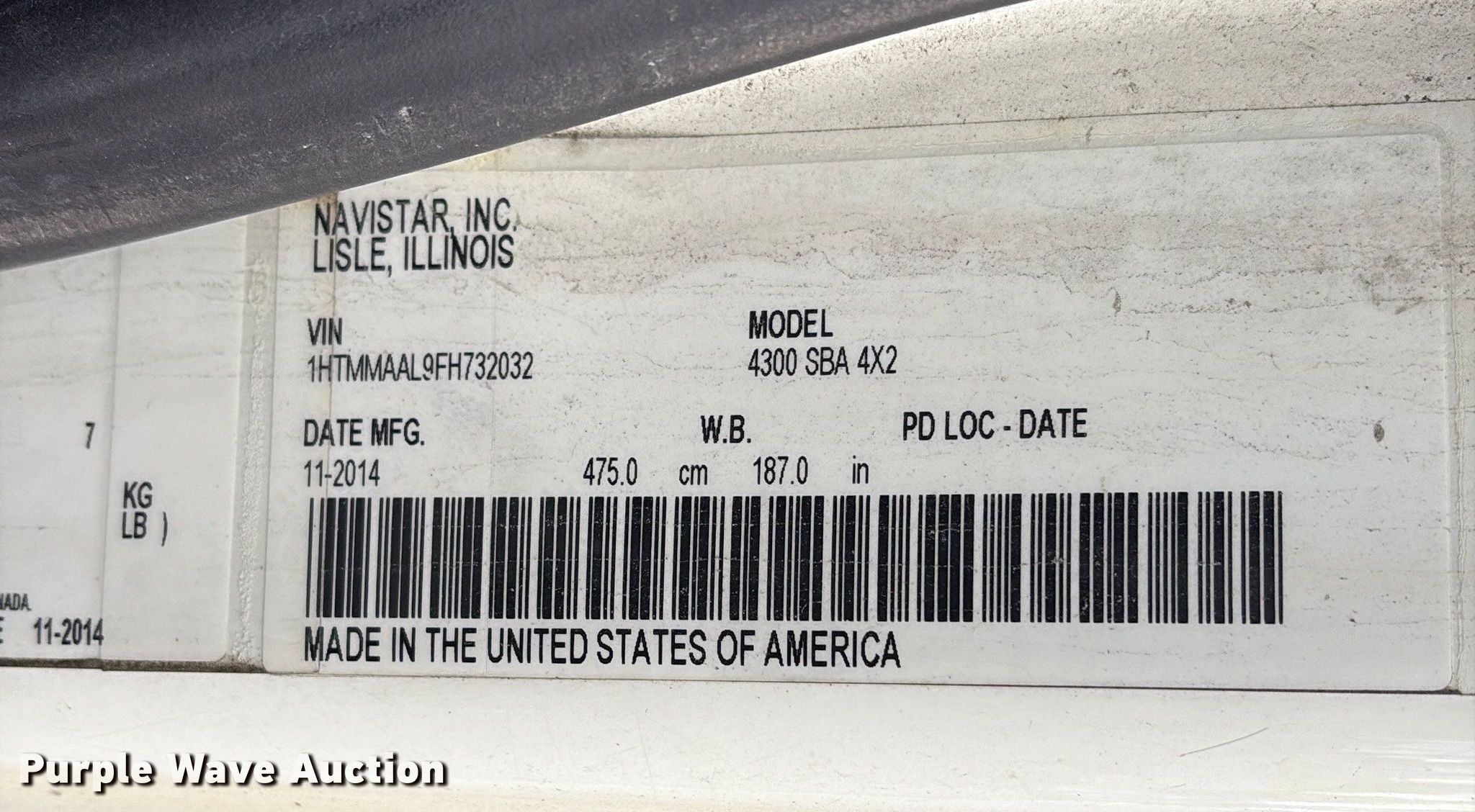 Purple Wave is selling a used Box Truck in Maryland. This item is a 2015 International 4300 box truck with the following: Miles: 199,938 on odometer, Hours: 9,207 on meter, VIN: 1HTMMAAL9FH732032