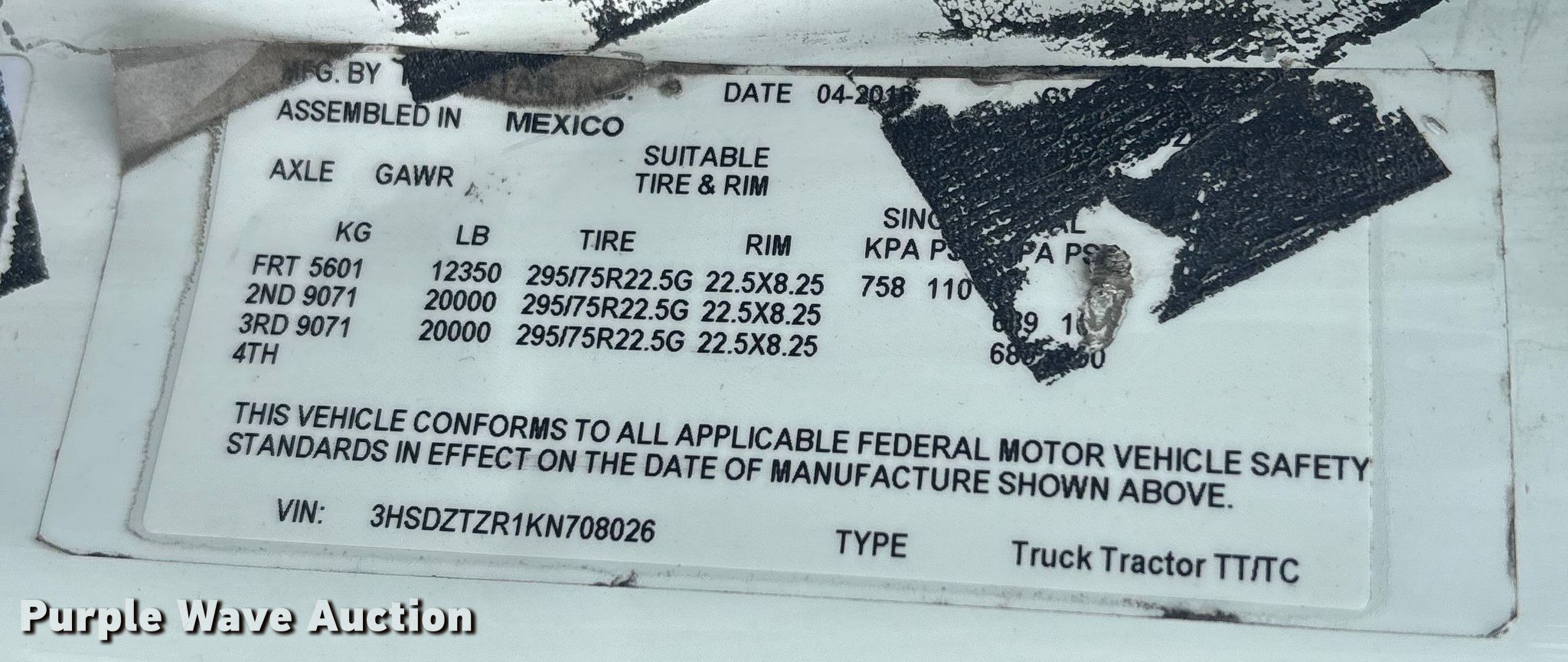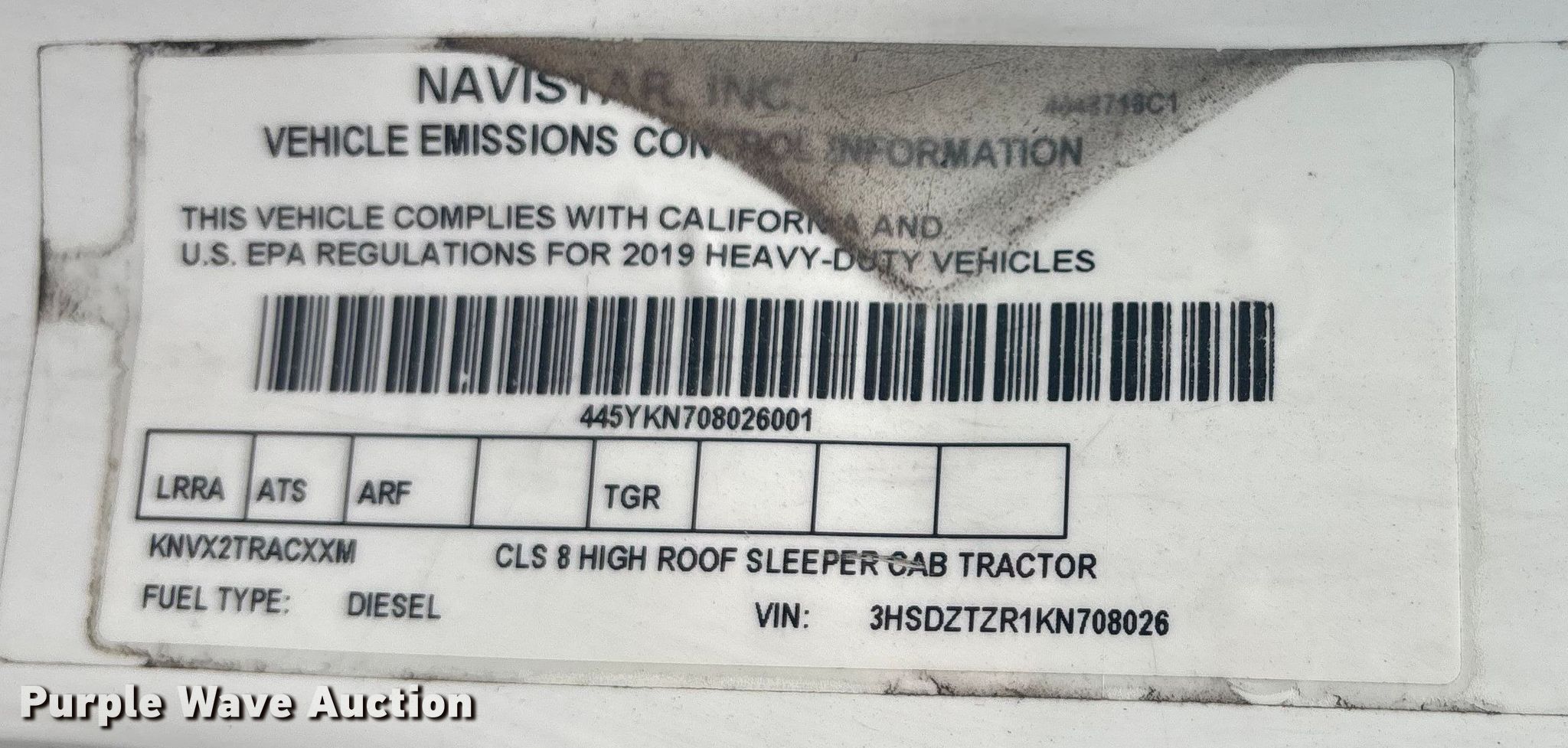 - VIN: 3HSDZTZR1KN708026