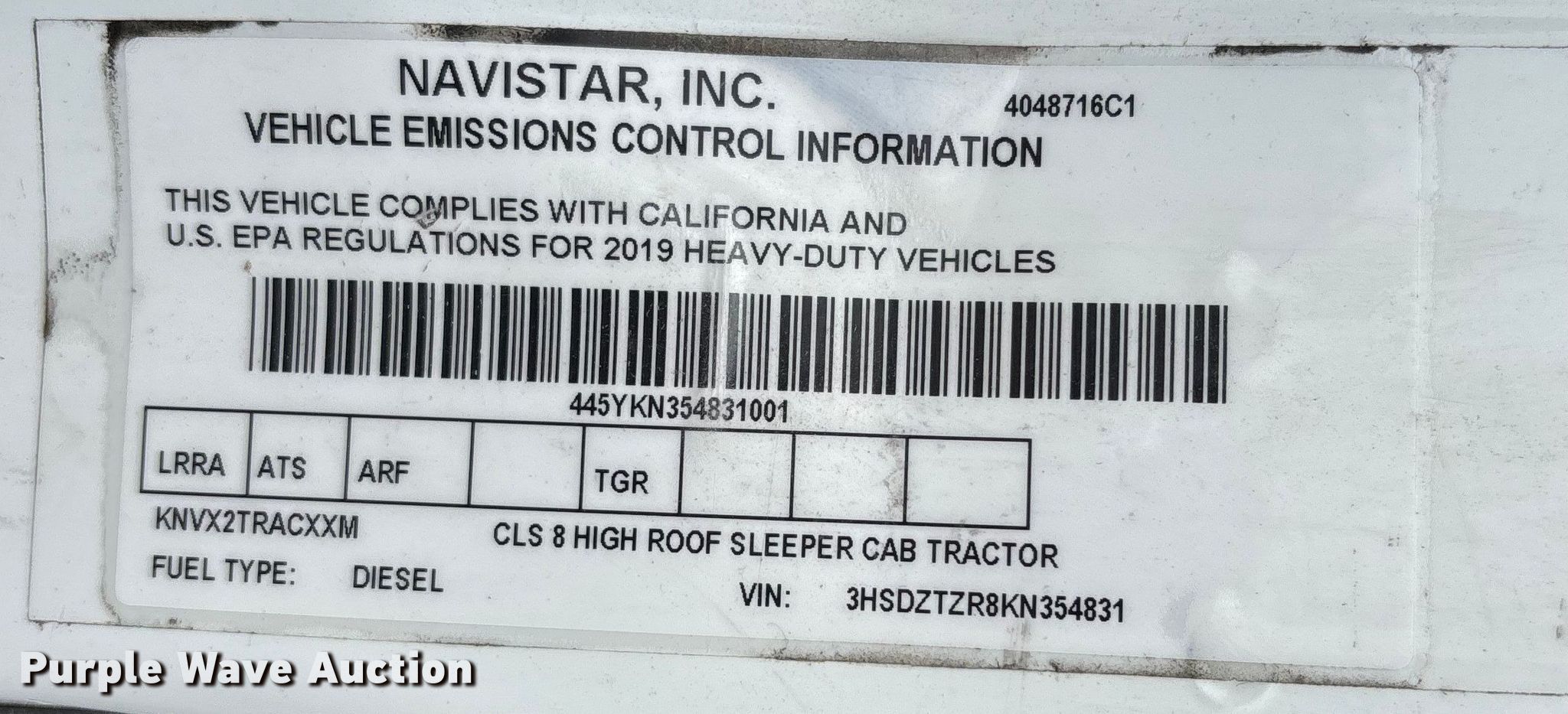 - VIN: 3HSDZTZR8KN354831