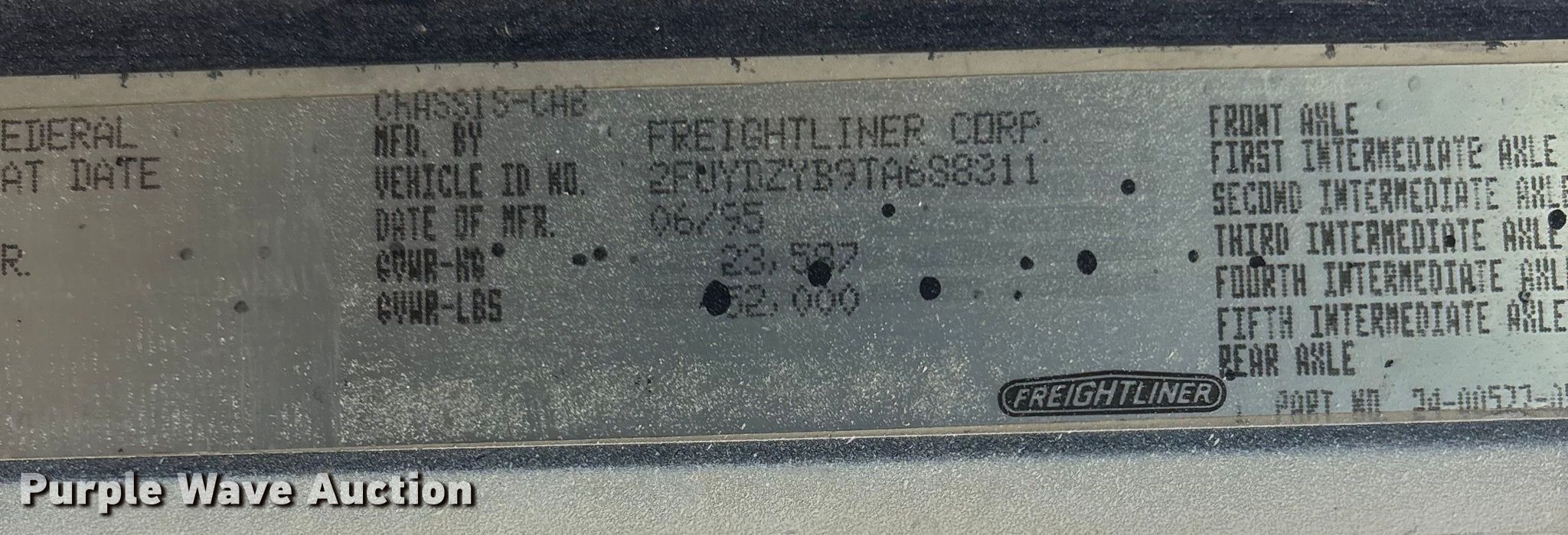 Purple Wave is selling a used Truck Chassis in Arkansas. This item is a 1996 Freightliner FLD120 truck cab and chassis with the following: Miles: 28,969 on odometer, Actual mileage unknown, Hours: 8,542 on meter, VIN: 2FUYDZYB9TA688311