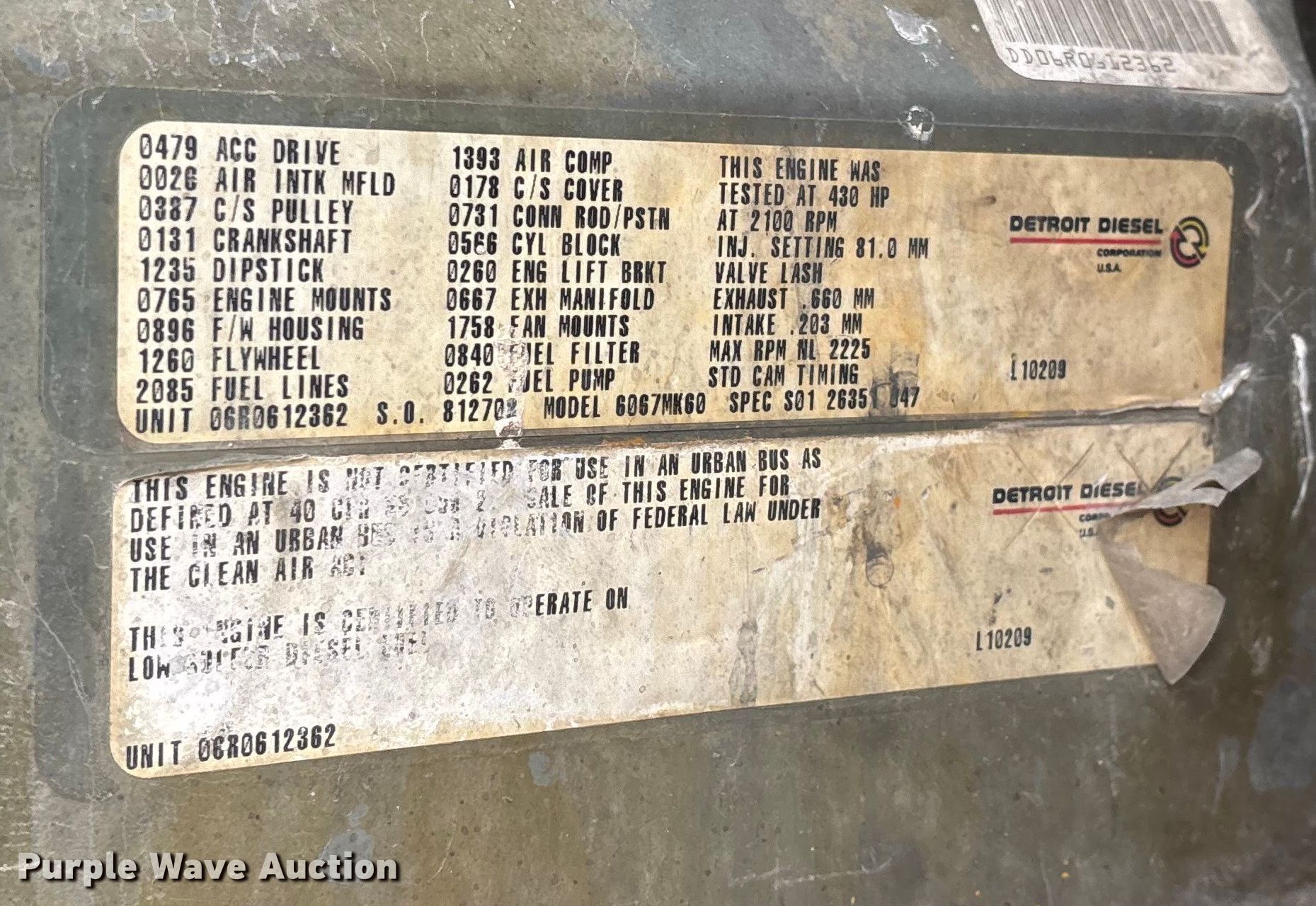 2001 Freightliner FLD120 semi truck. Miles: 39,096 on odometer Actual mileage unknown, VIN: 1FUJAHCG11LH90509. Engine Detroit Diesel D60, Displacement: 12.7L, Cylinders: 6, Fuel type: Diesel, Engine brake. Transmission Eaton Fuller, Manual, Speed: 10. Chassis Axles: Tandem, Differential lock: Inter-axle, Suspension: Air Dump valves, Brakes: Air, PTO, Wet kit, GVWR: 52,000 lbs FAWR: 12,000 lbs, IAWR: 20,000 lbs, RAWR: 20,000 lbs. Interior AC, Heat, Heated mirrors, Cruise control, Air ride cab, Sleeper Sleeper length: 67", Beds: Single. Features Deck plate: Aluminum, Fifth wheel type: Air operated, Sliding, Fuel tank: Dual. Tires Size: 11R24.5. Notes Odometer has rolled over, Windshield chipped or cracked, Rollover damage, Possible engine issues, excessive oil use. Missouri title. Mileage has not been verified. Exempt will be written in the odometer disclosure on the title. Title distribution may be delayed up to 30 days from verification of funds. MFA Enterprises. Piggott, AR 72454
