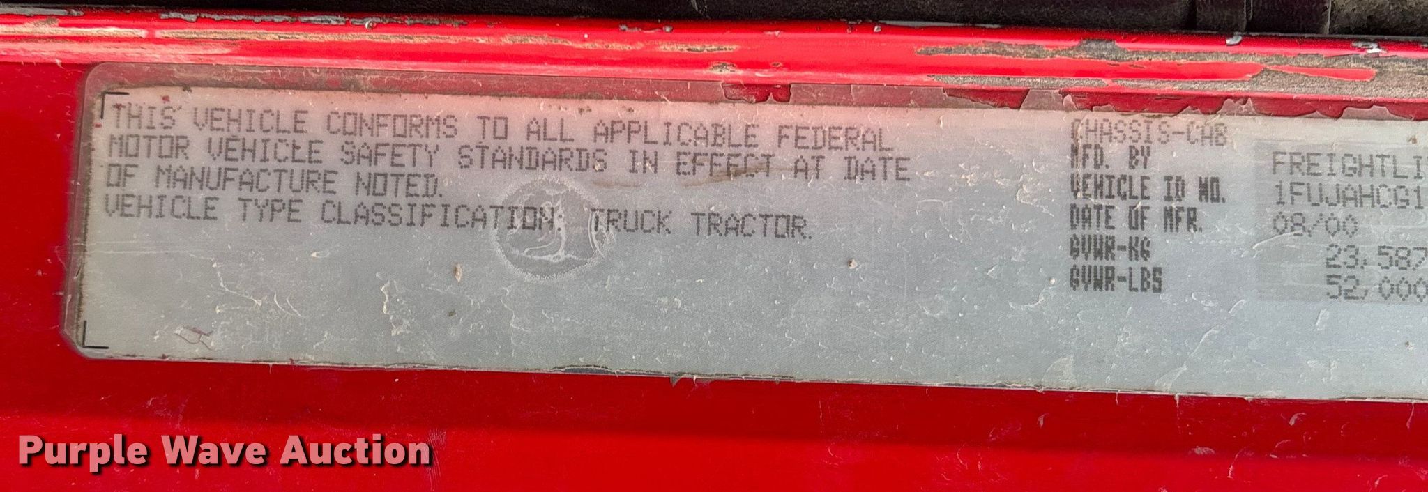 Purple Wave is selling a used Truck Tractor in Arkansas. This item is a 2001 Freightliner FLD120 semi truck with the following: Miles: 39,096 on odometer, Actual mileage unknown, VIN: 1FUJAHCG11LH90509