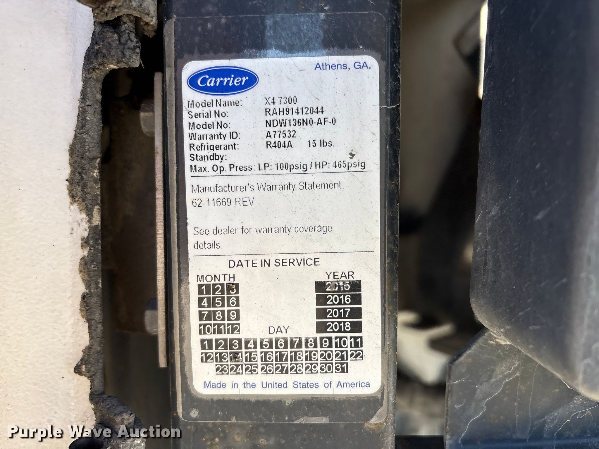 2016 Hyundai VR2530152-AS refrigerated van trailer. VIN: 3H3V532C9GT118001. Dimensions Overall Length: 53', Width: 8' 6". Features Deck type: Aluminum, Refrigeration unit Carrier X4 7300, Hours: 12,839, Serial: RAH91412044. Chassis Landing gear: Dual, Suspension: Air, Brakes: Air, Axles: Tandem Sliding, GVWR: 68,000 lbs, GAWR: 20,000 lbs. Tires Aluminum wheels, Size: 295/75R22.5. Texas title. Title distribution may be delayed up to 14 days from verification of funds. B&B Ice & Water. Port Arthur, TX 77640