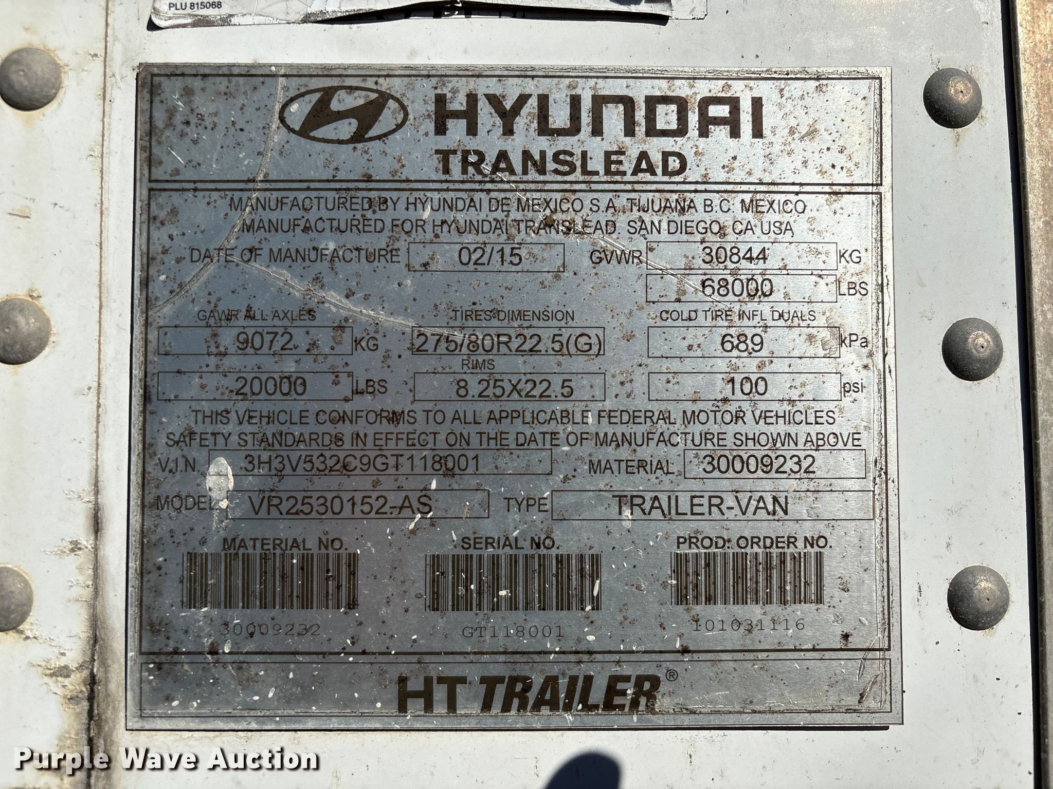 Purple Wave is selling a used Refrigerated Van Trailer in Texas. This item is a 2016 Hyundai VR2530152-AS refrigerated van trailer with the following: VIN: 3H3V532C9GT118001