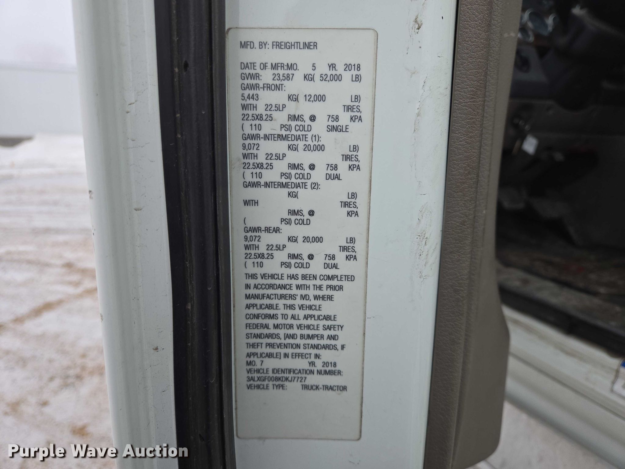 Purple Wave is selling a used Truck Tractor in Minnesota. This item is a 2019 Frieghtliner Cascadia semi truck with the following: Miles: 719,021 on odometer, VIN: 3ALXGF008KDKJ7727, Unit #: 325