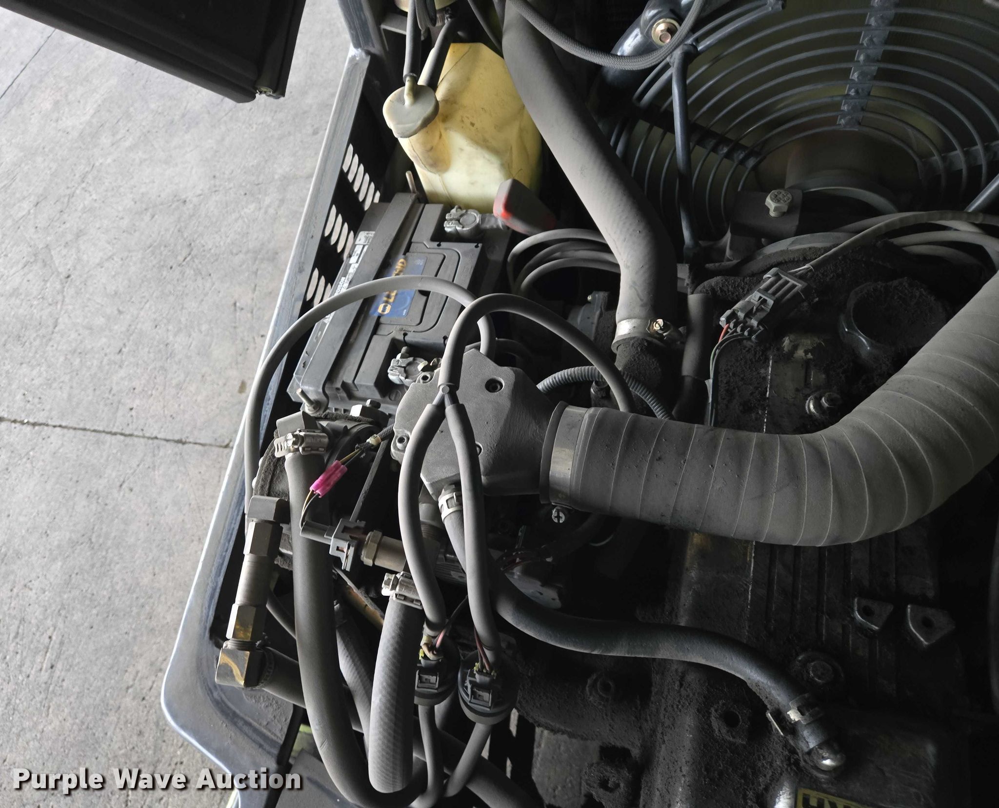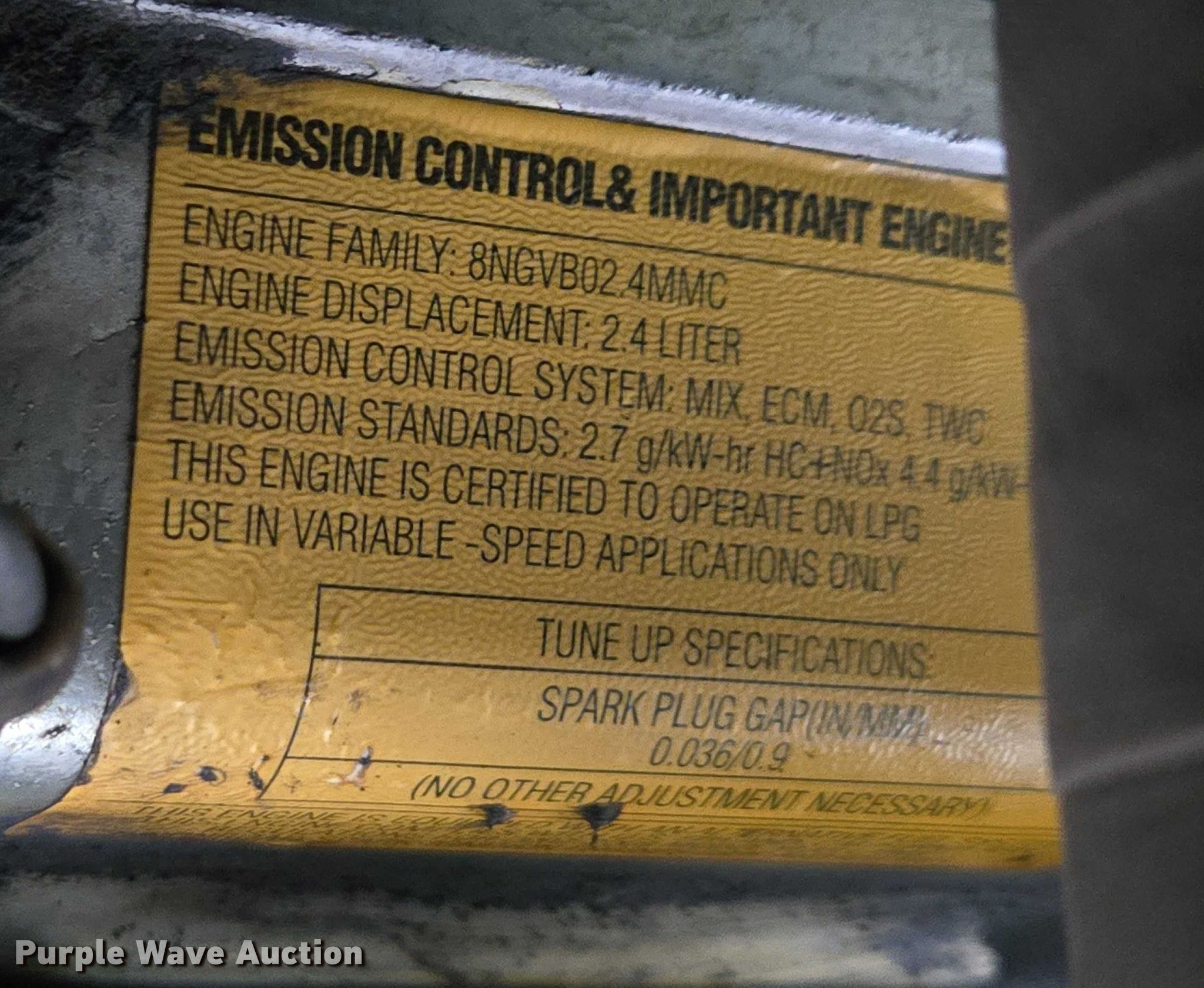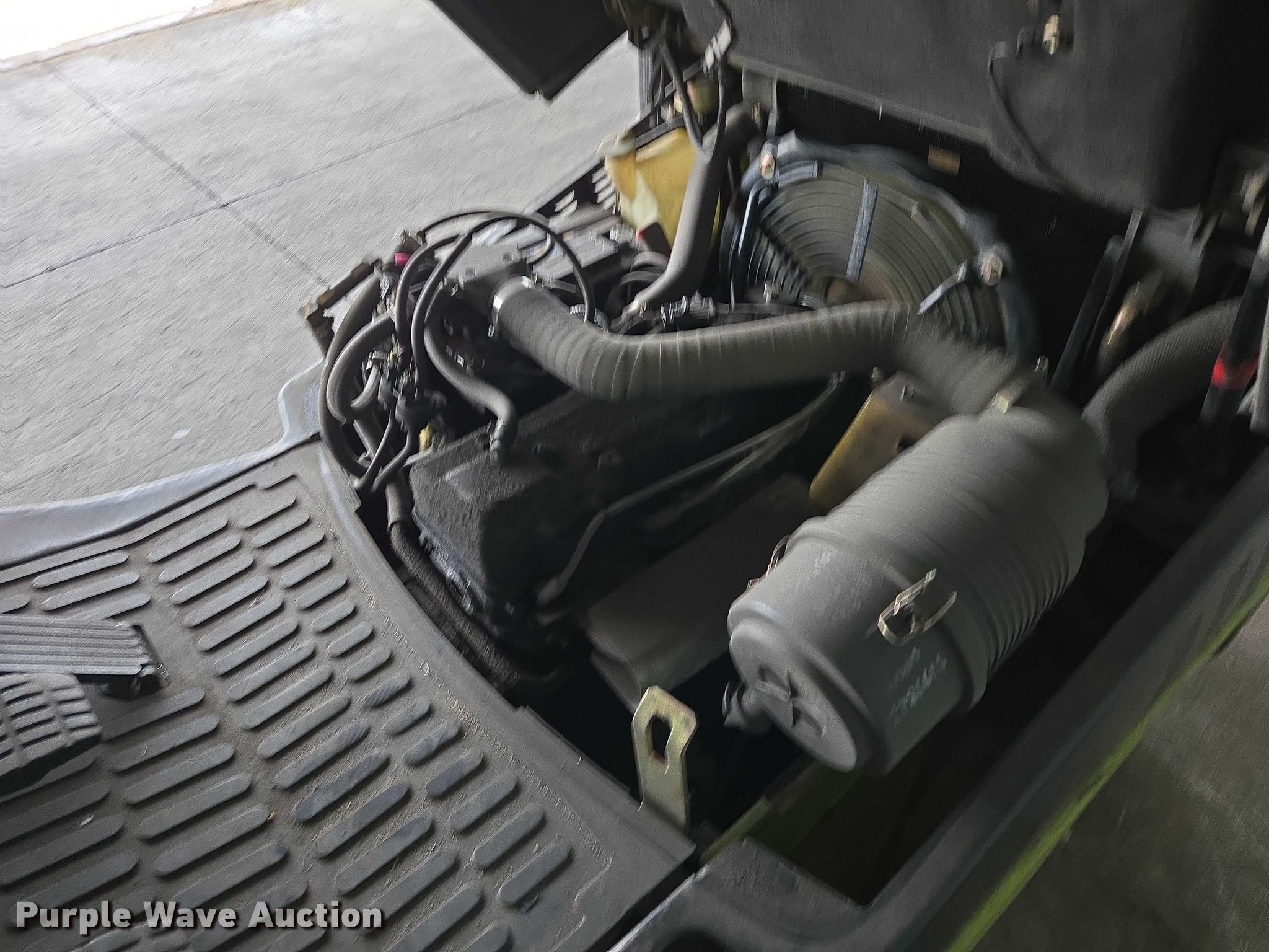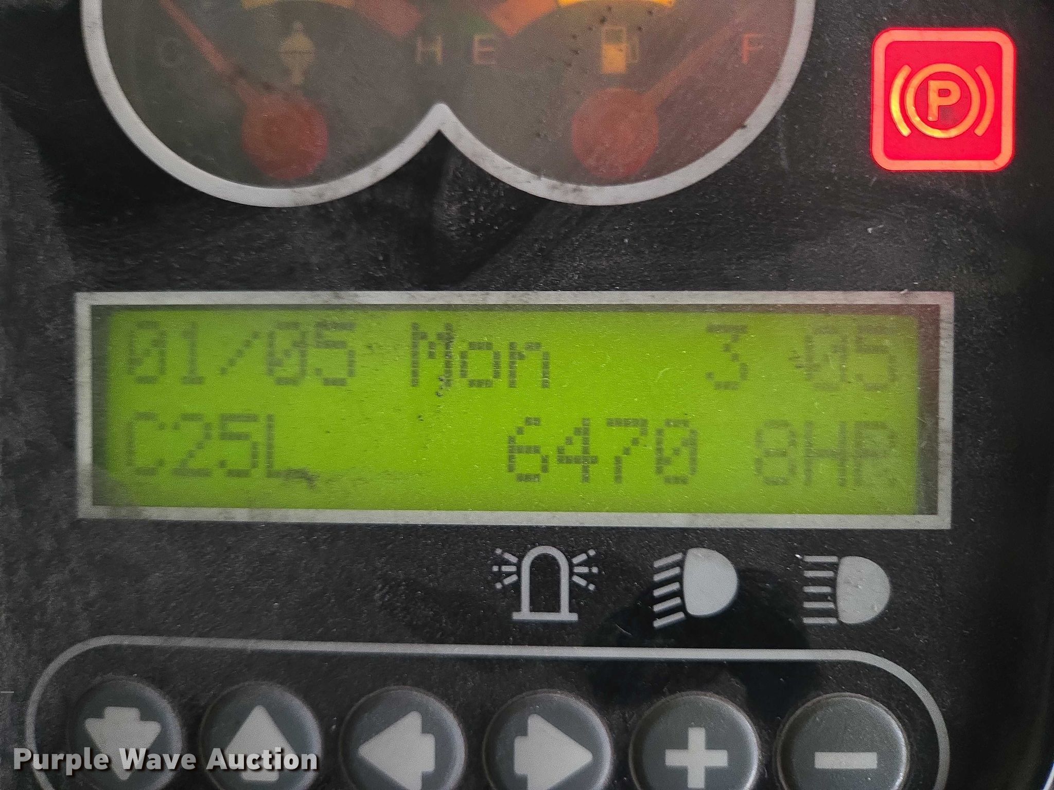 Clark C25C forklift. Hours: 6,471 on meter, Serial: C232L-0568-9664KF. Engine Displacement: 2.4L, Cylinders: 4, Fuel type: LPG LP bottle: Not included. Transmission Powershift. Operators station OROPS. Features Maximum lift capacity: 4,500 lbs, Maximum lift height: 189", Collapsed mast height: 83", Mast stages: 3, Side shift, Mast tilt, Fork length: 42". Tires Front: 21x7x15, Rear: 16x5x10.5, Solid. Rosen's Inc. Fairmont, MN 56031