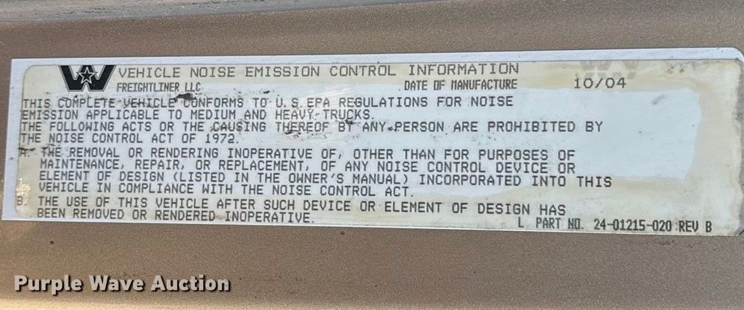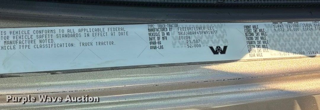 Take a look at this used 2005 Western Star 4900 semi truck being sold on January 22nd, 2026 in the Thursday January 22 Truck and Trailer Auction made by Western Star. Take a look at all of the item information below or take a look at similar auctions for Trucks.