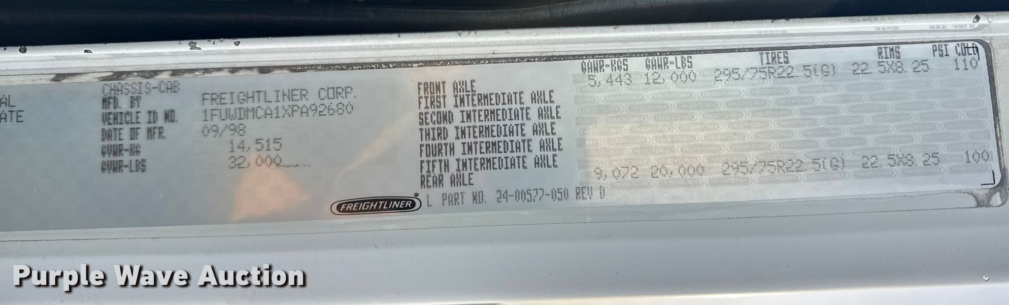 Purple Wave is selling a used Truck Tractor in Oklahoma. This item is a 1999 Freightliner semi truck with the following: Miles: 748,885 on odometer, VIN: 1FUWDMCA1XPA92680